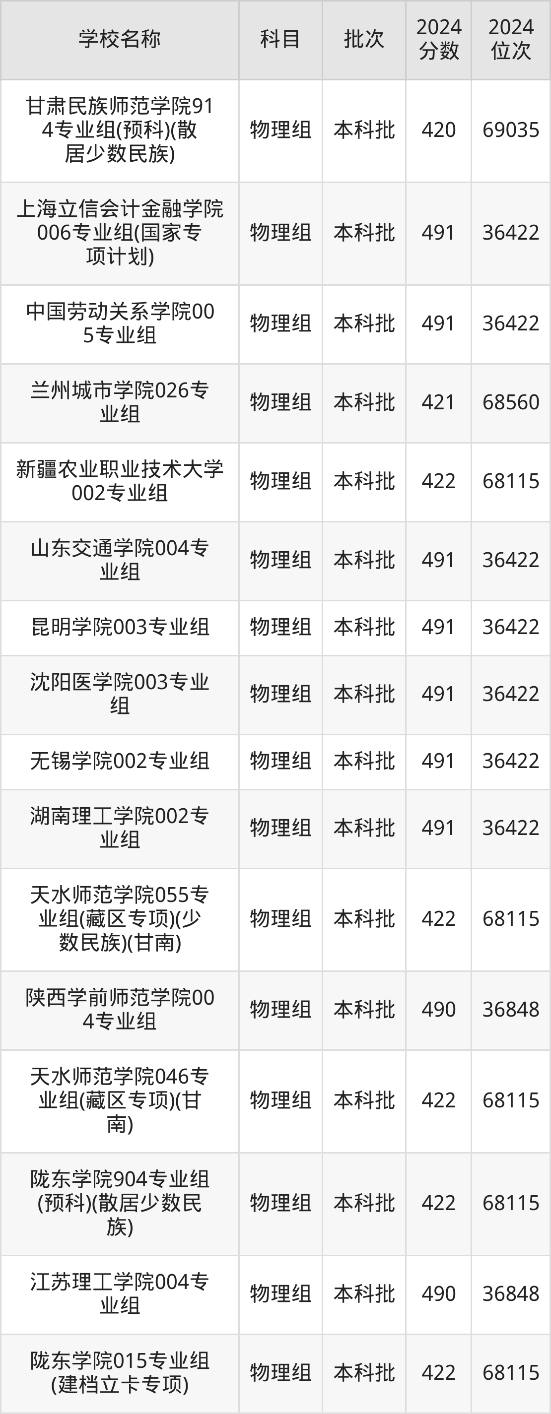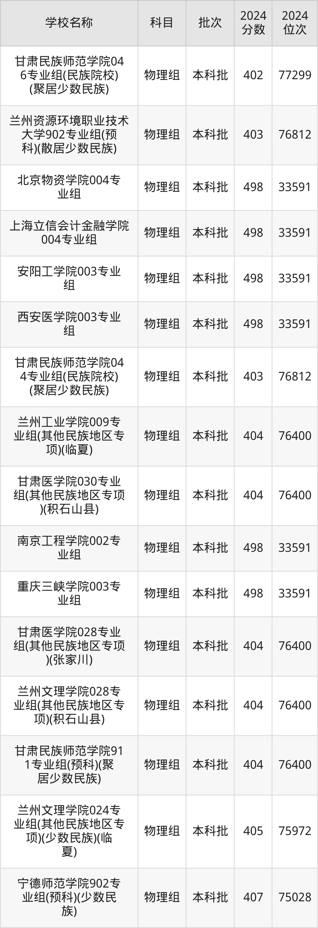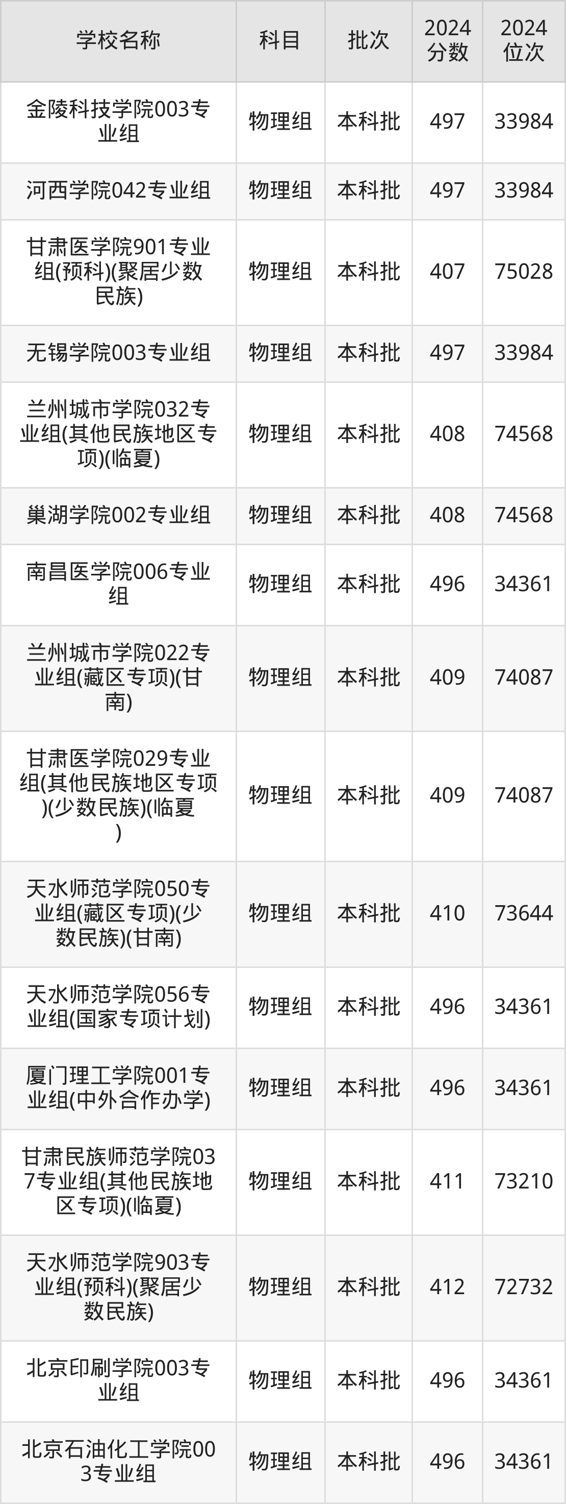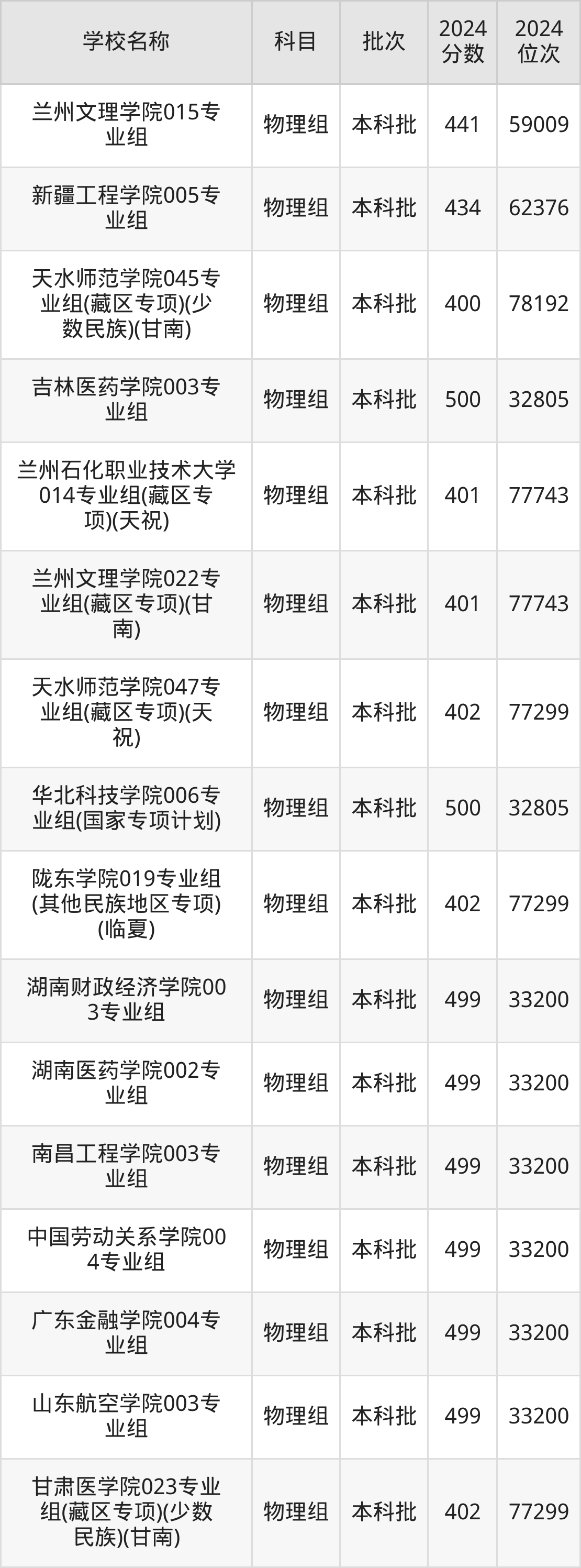 甘肃高考物理组共有270所二本公办大学在400到500分之间录取,包含湖南财政经济学院、中国民用航空飞行学院、吉林医药学院、华北科技学院、湖南医药学院、南昌工程学院、中国劳动关系学院、广东金融学院、山东航空学院、北京物资学院。