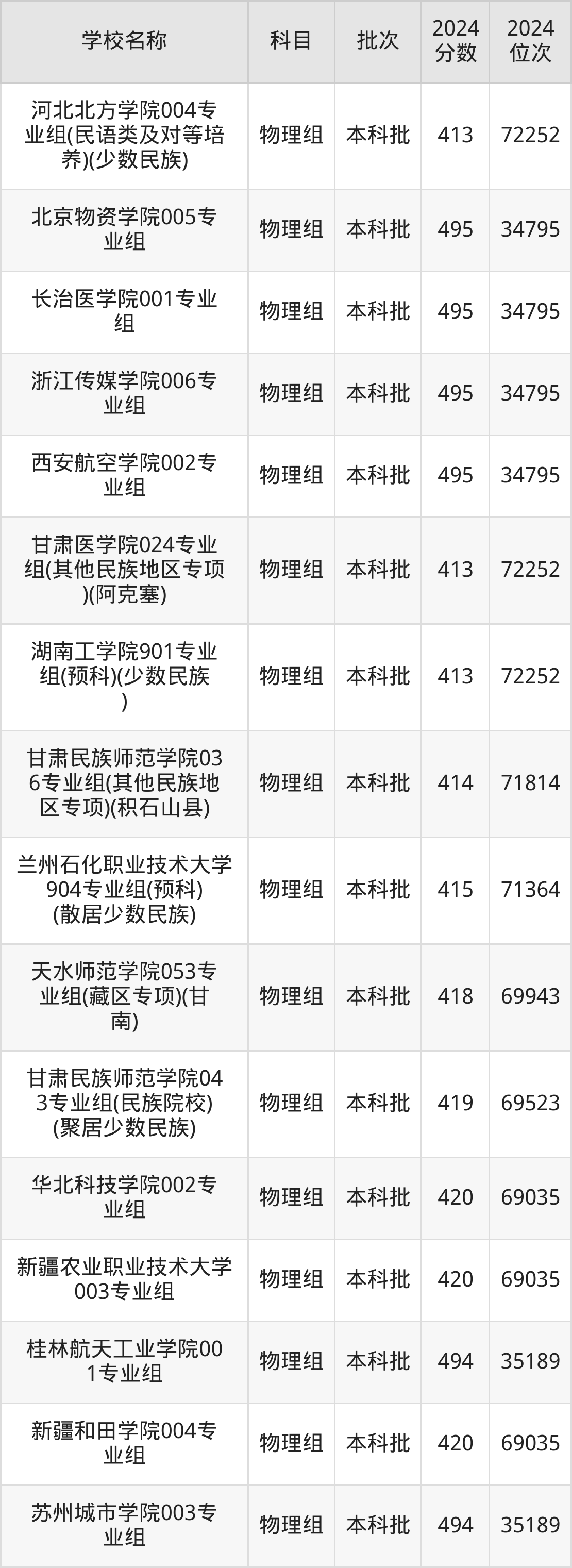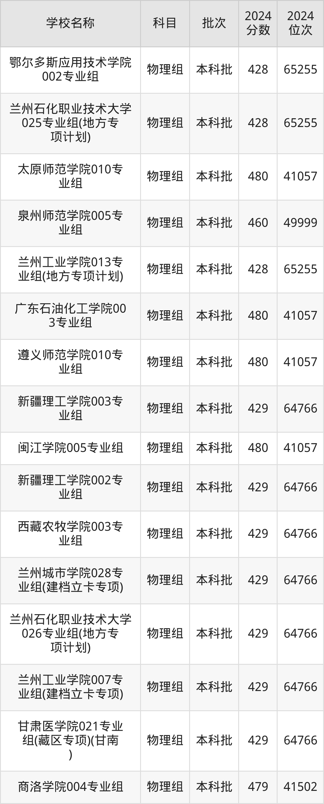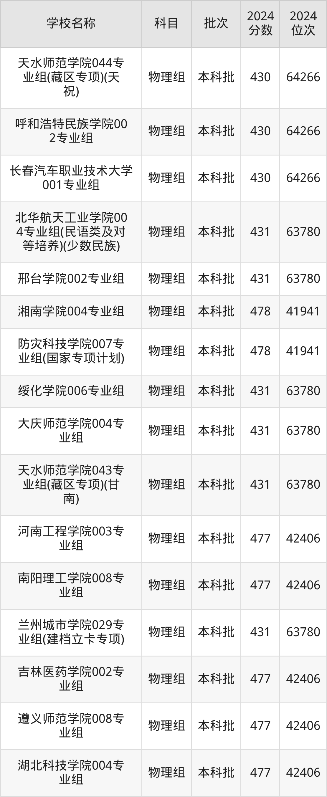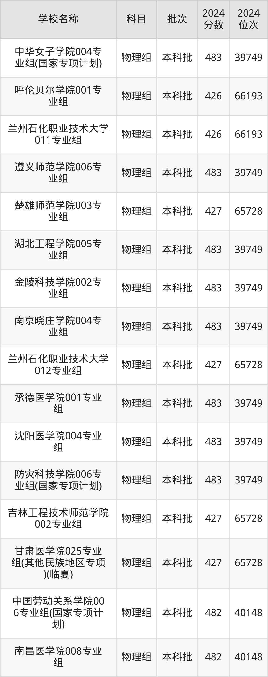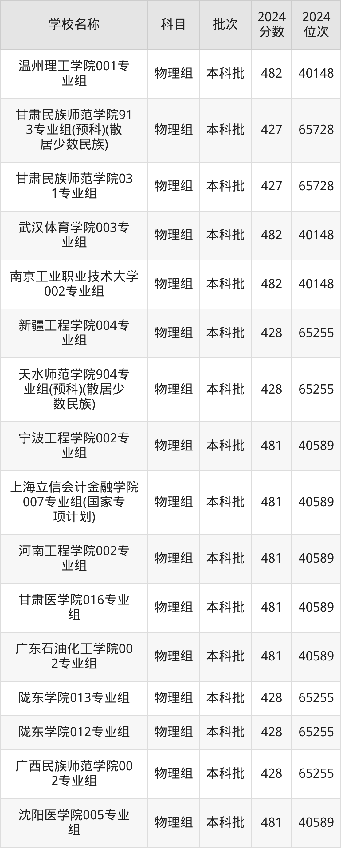 甘肃高考物理组共有270所二本公办大学在400到500分之间录取,包含湖南财政经济学院、中国民用航空飞行学院、吉林医药学院、华北科技学院、湖南医药学院、南昌工程学院、中国劳动关系学院、广东金融学院、山东航空学院、北京物资学院。