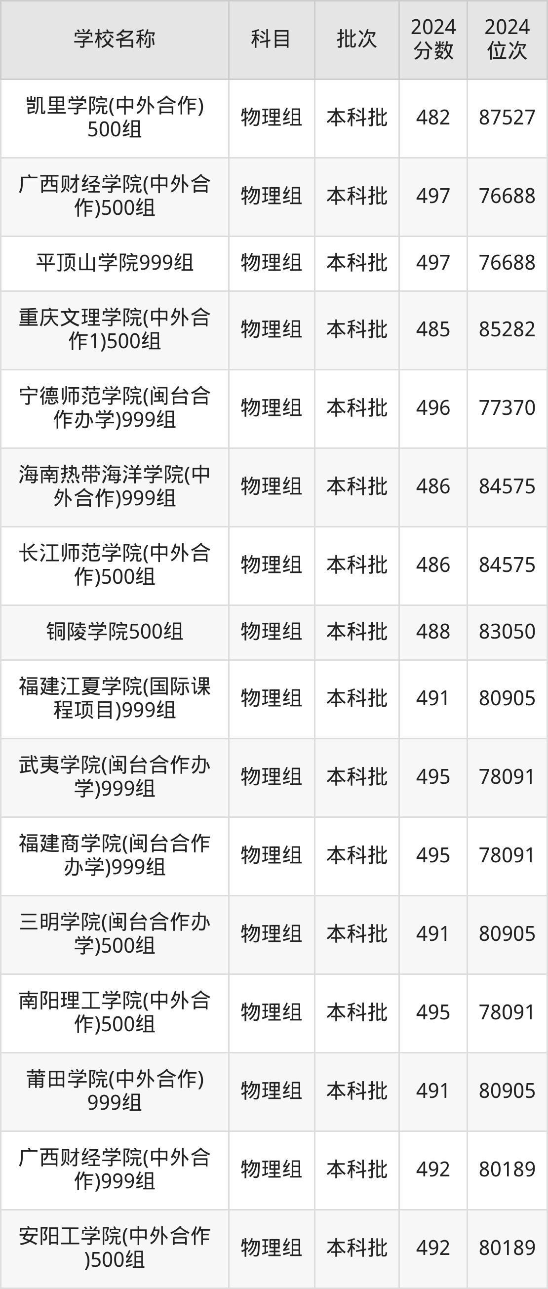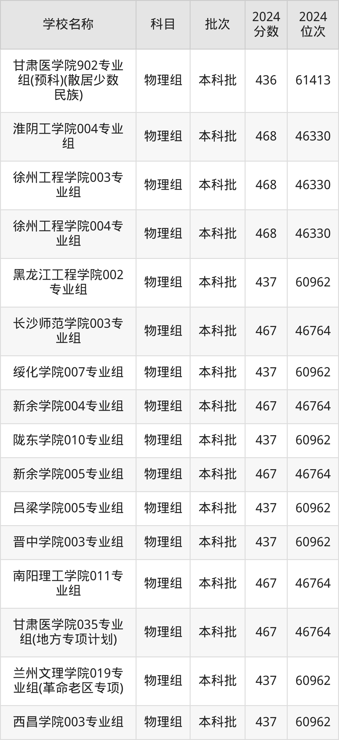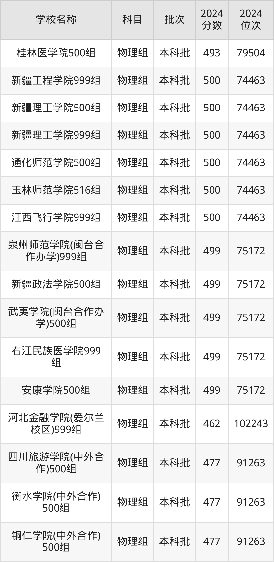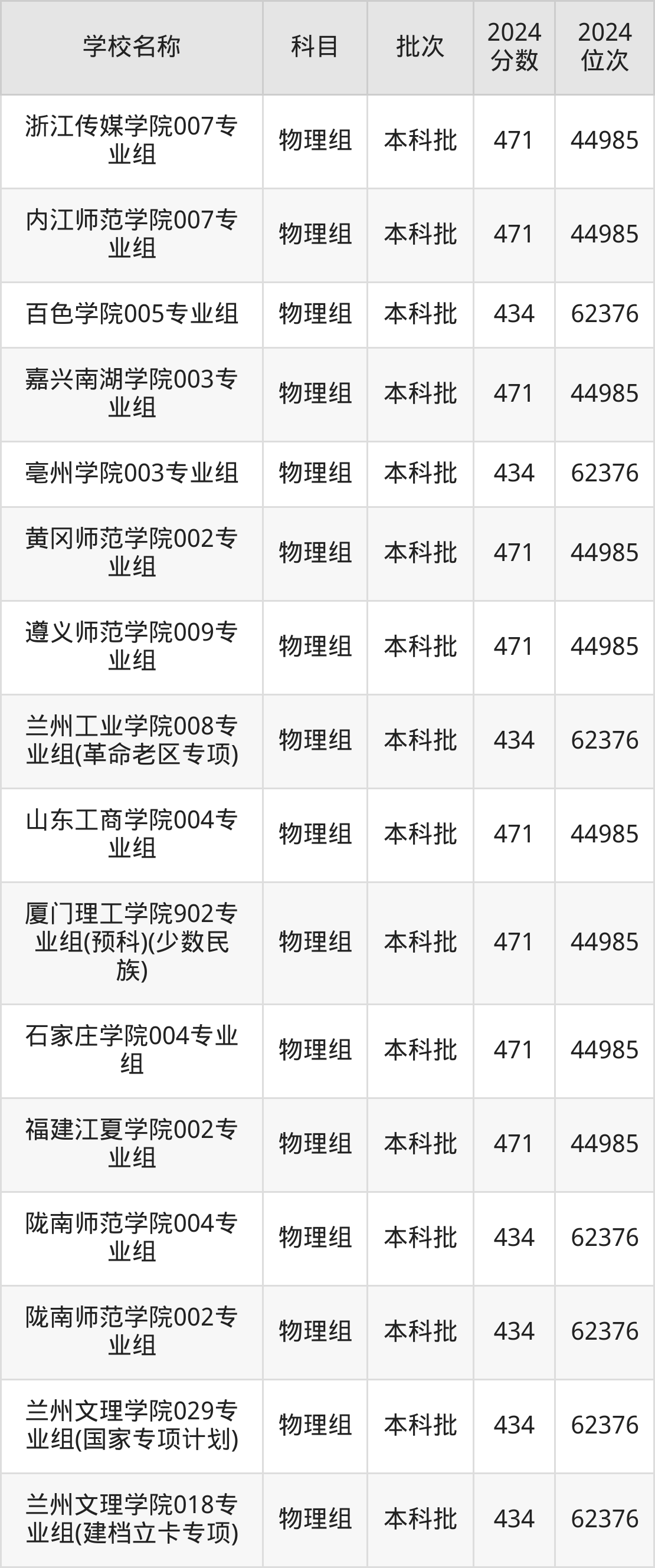 甘肃高考物理组共有270所二本公办大学在400到500分之间录取,包含湖南财政经济学院、中国民用航空飞行学院、吉林医药学院、华北科技学院、湖南医药学院、南昌工程学院、中国劳动关系学院、广东金融学院、山东航空学院、北京物资学院。