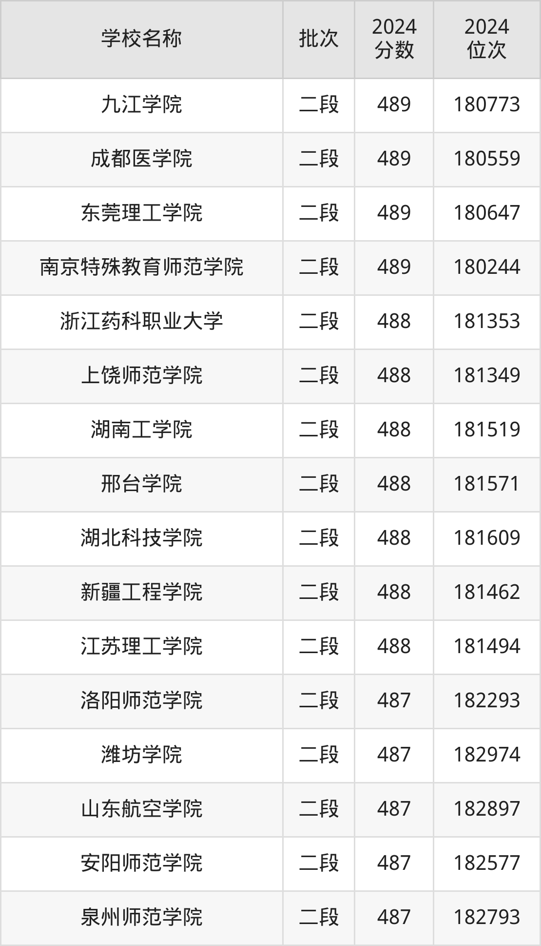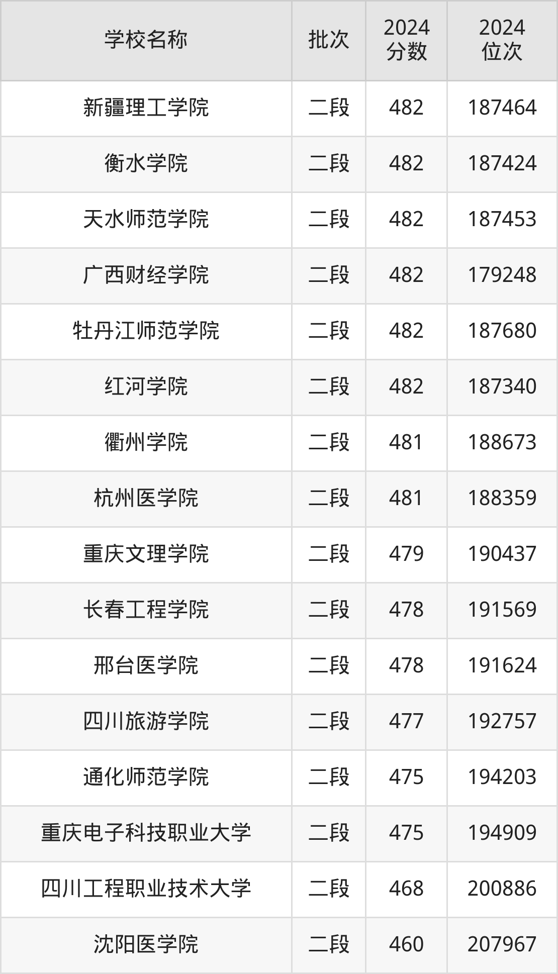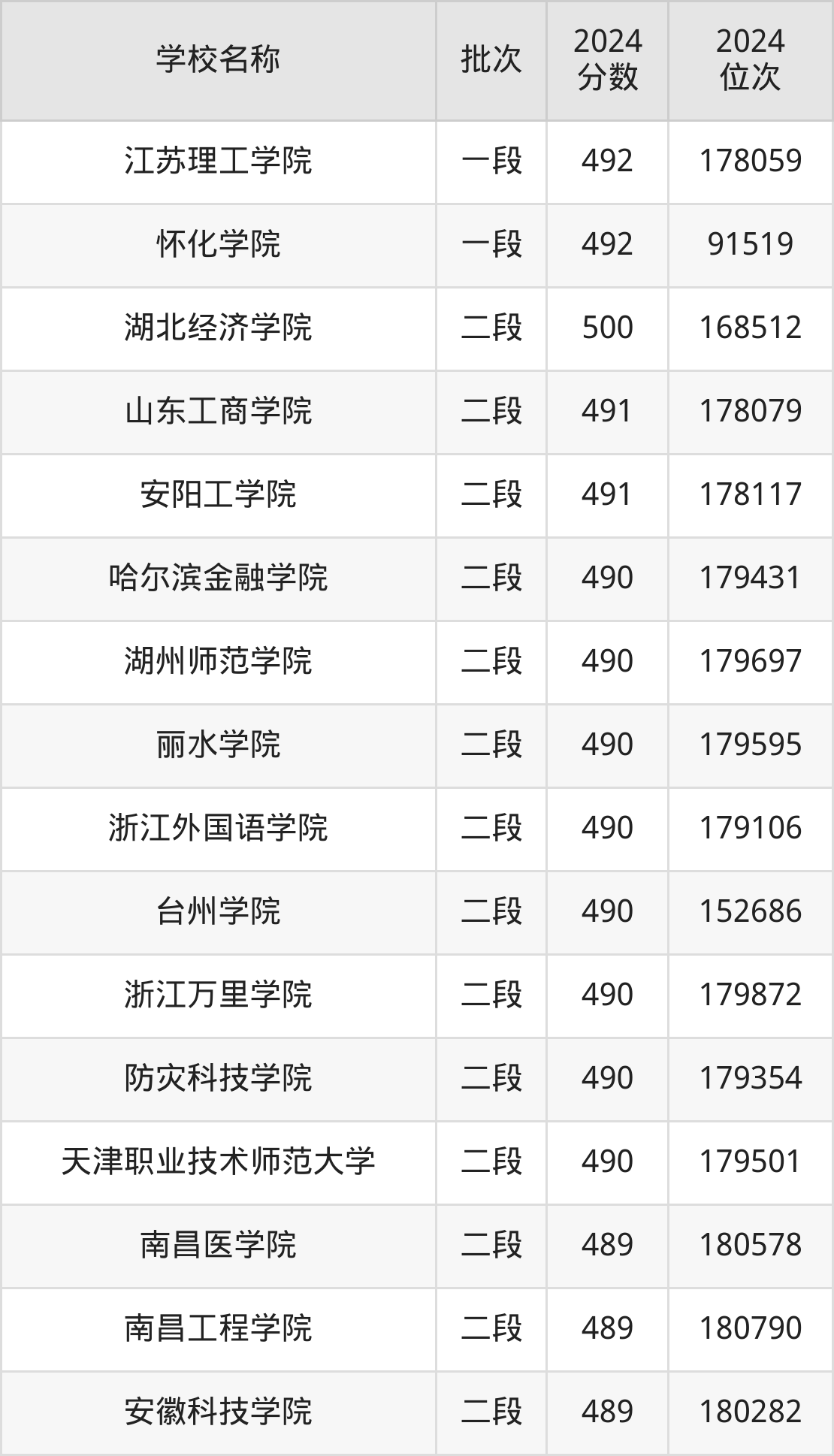 浙江高考共有125所二本公办大学在400到500分之间录取,包含南阳理工学院、郑州航空工业管理学院、湖北经济学院、陇东学院、河北环境工程学院、蚌埠学院、新疆和田学院、黑龙江工程学院、华北科技学院、昌吉学院。