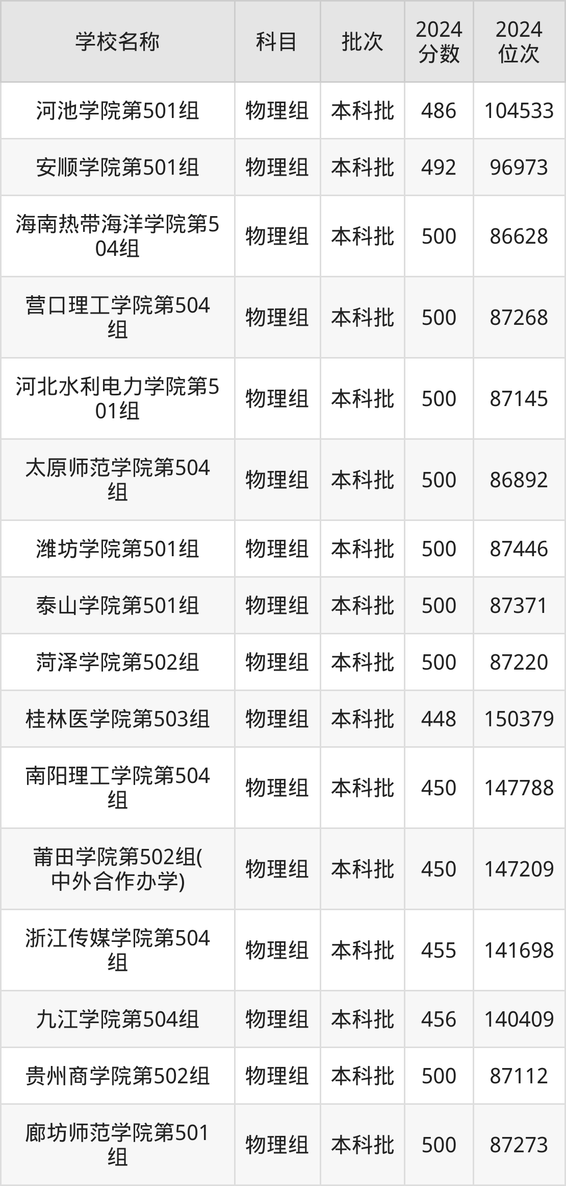 江西高考物理组共有192所二本公办大学在400到500分之间录取,包含吉林医药学院、南昌医学院、海南热带海洋学院、营口理工学院、河北水利电力学院、太原师范学院、潍坊学院、泰山学院、菏泽学院、贵州商学院。