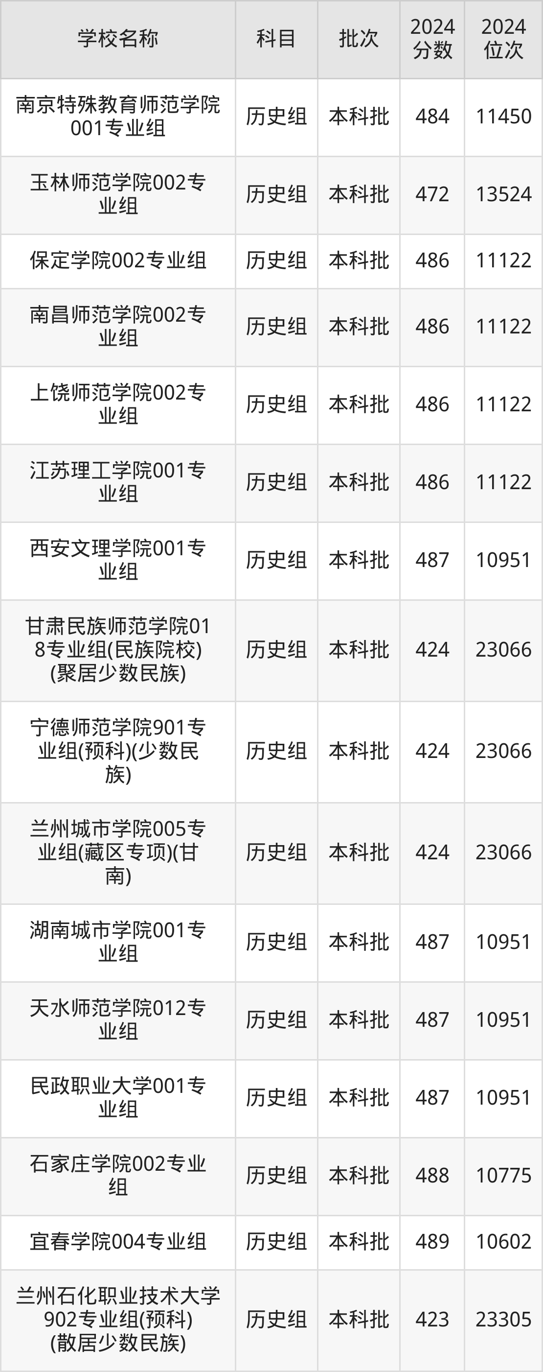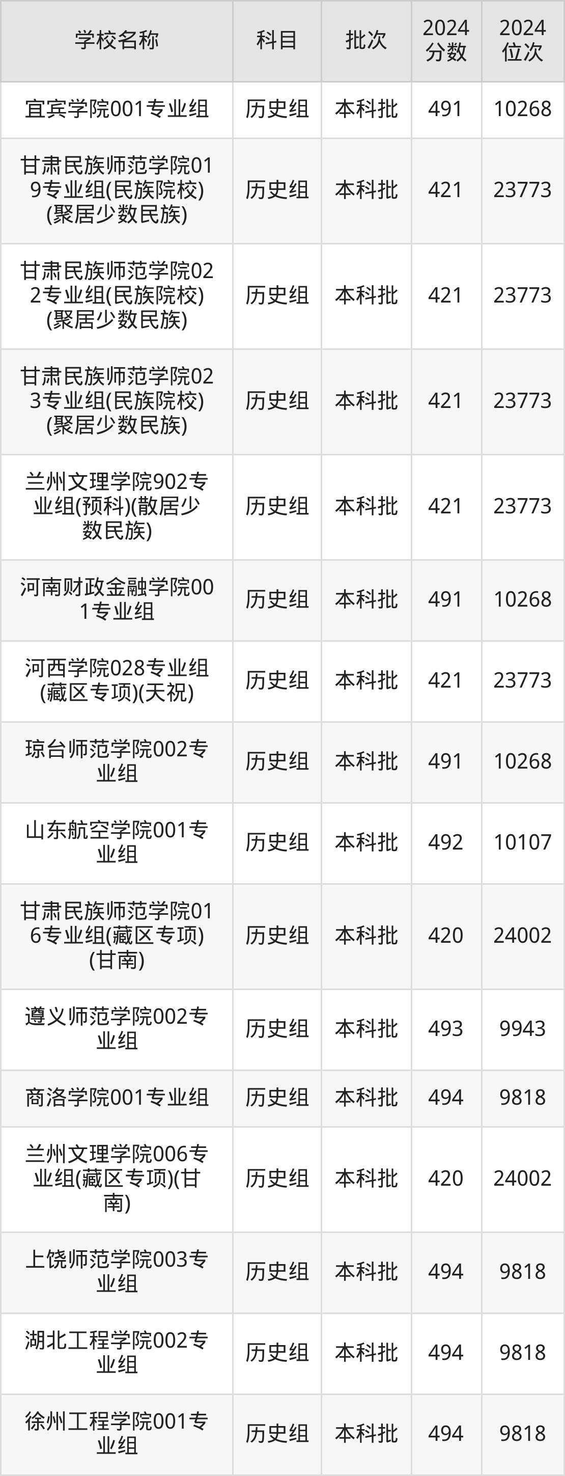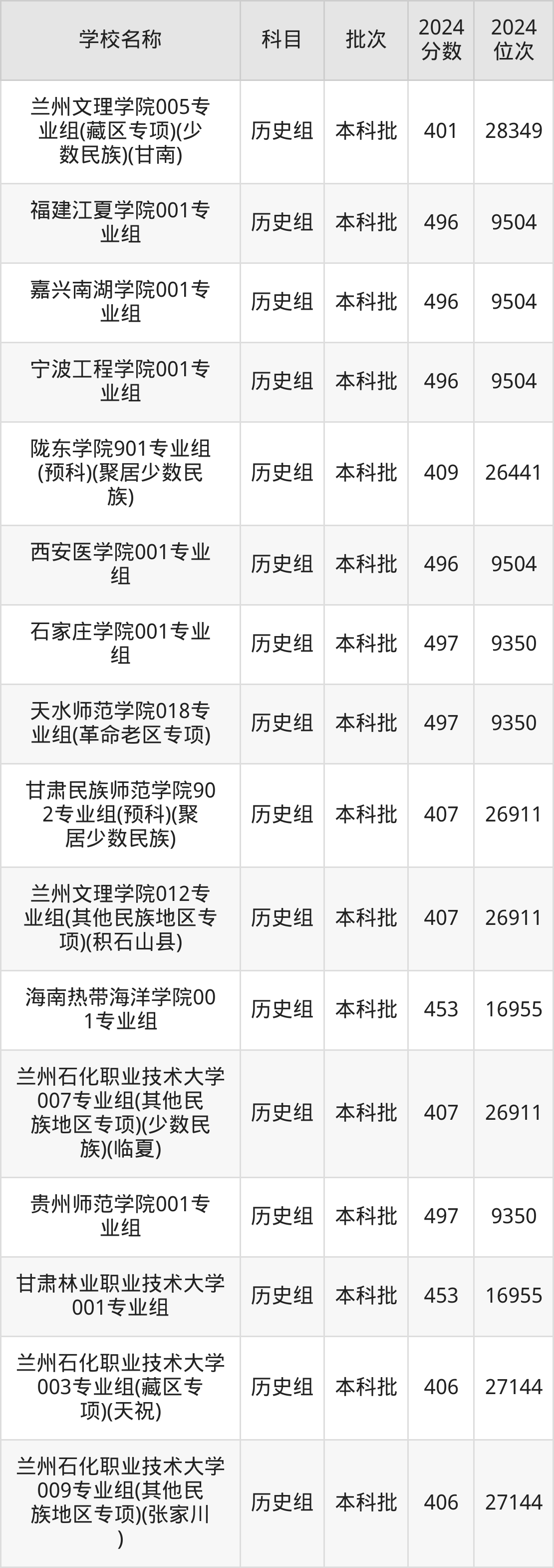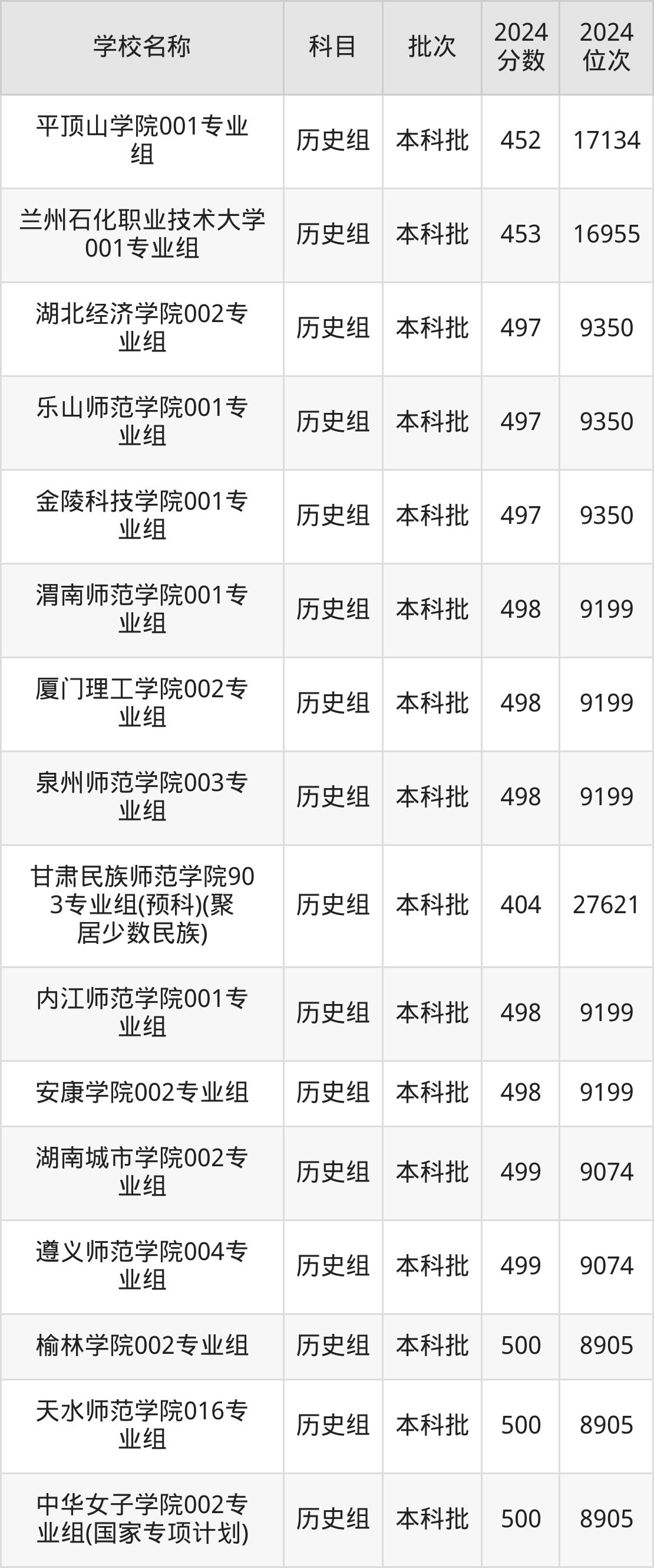 甘肃高考历史组共有200所二本公办大学在400到500分之间录取,包含陕西学前师范学院、宁德师范学院、中华女子学院、天水师范学院、榆林学院、遵义师范学院、湖南城市学院、安康学院、内江师范学院、泉州师范学院。