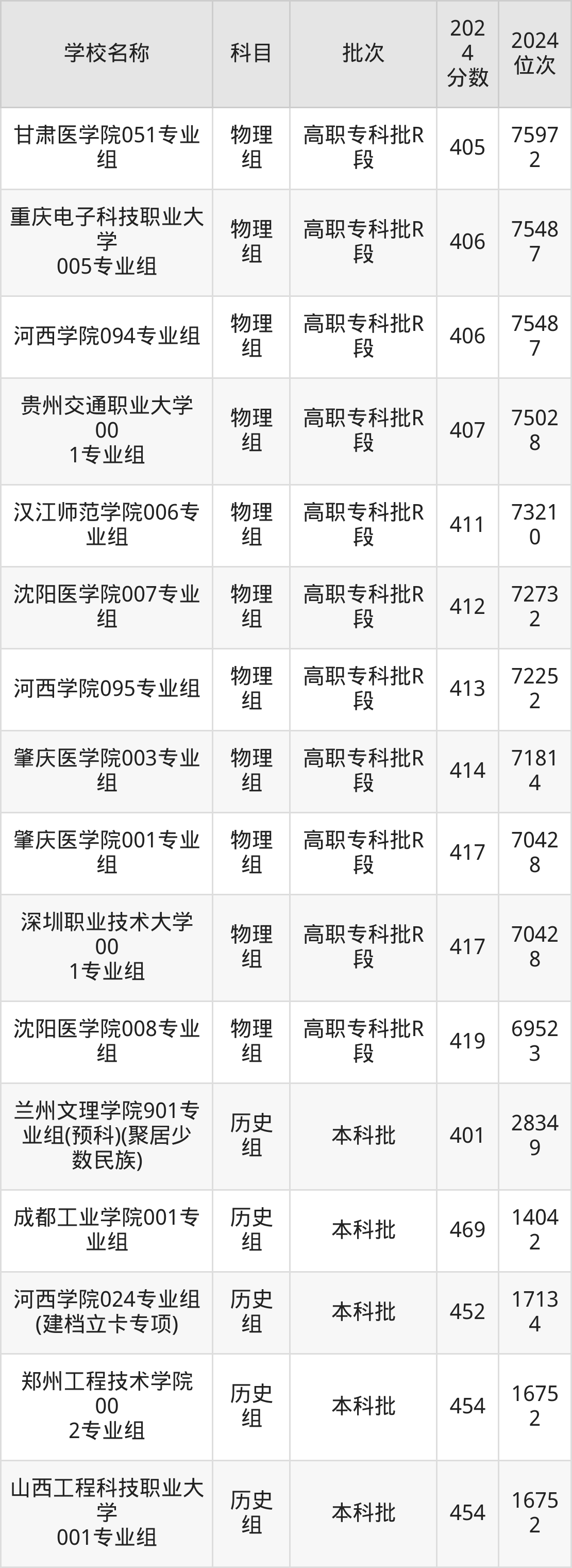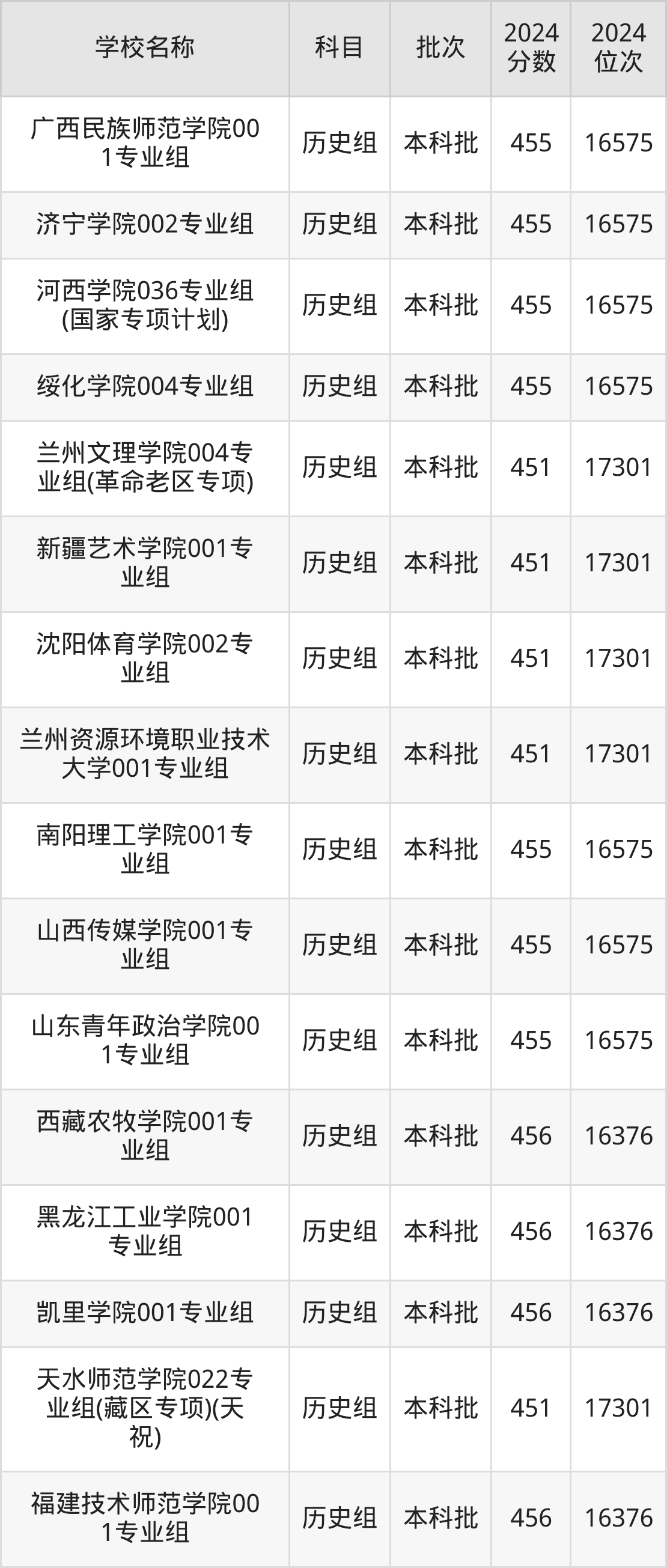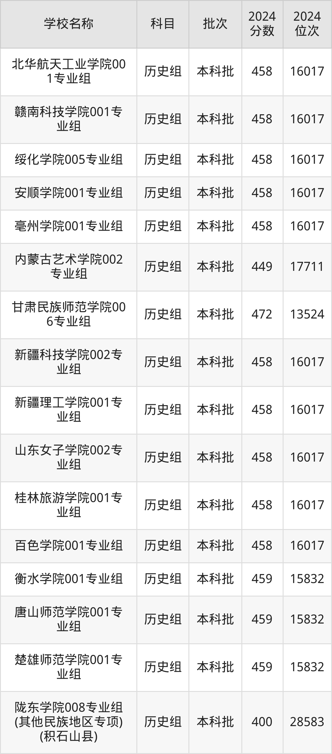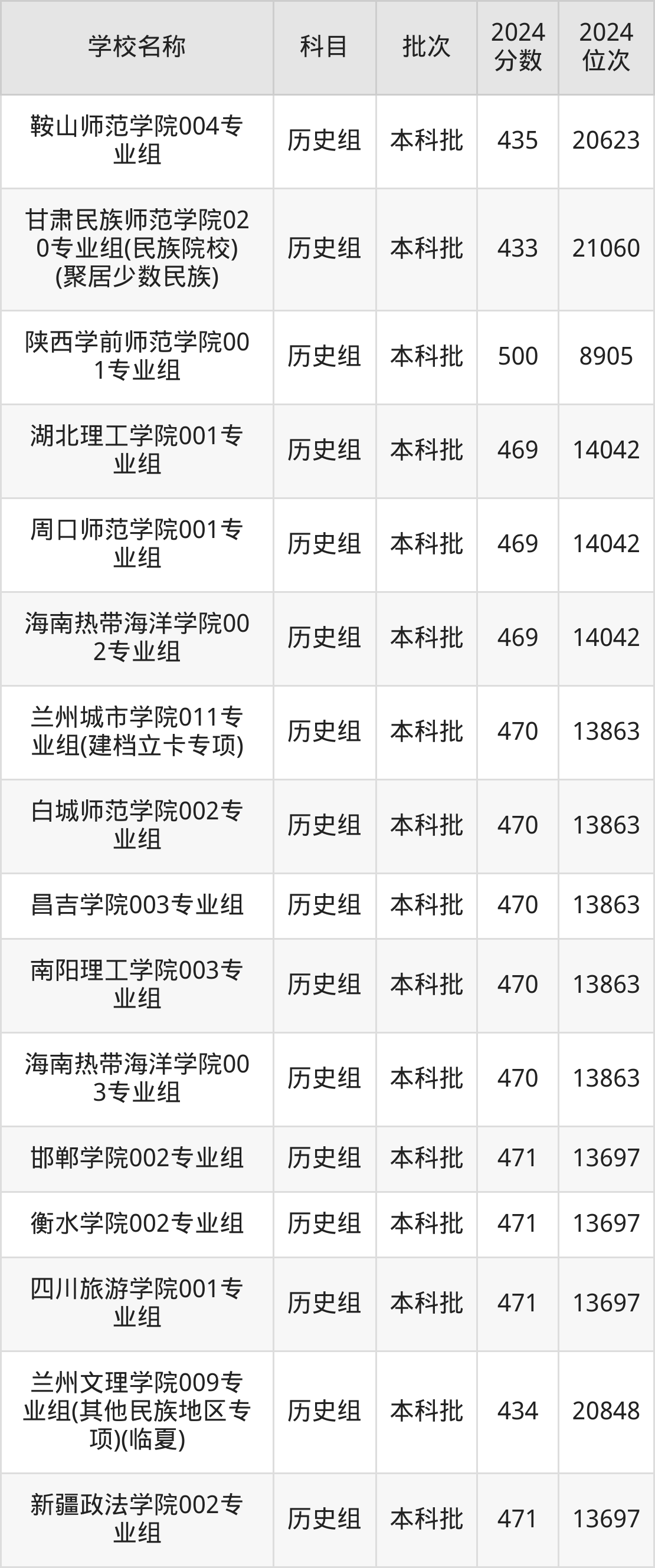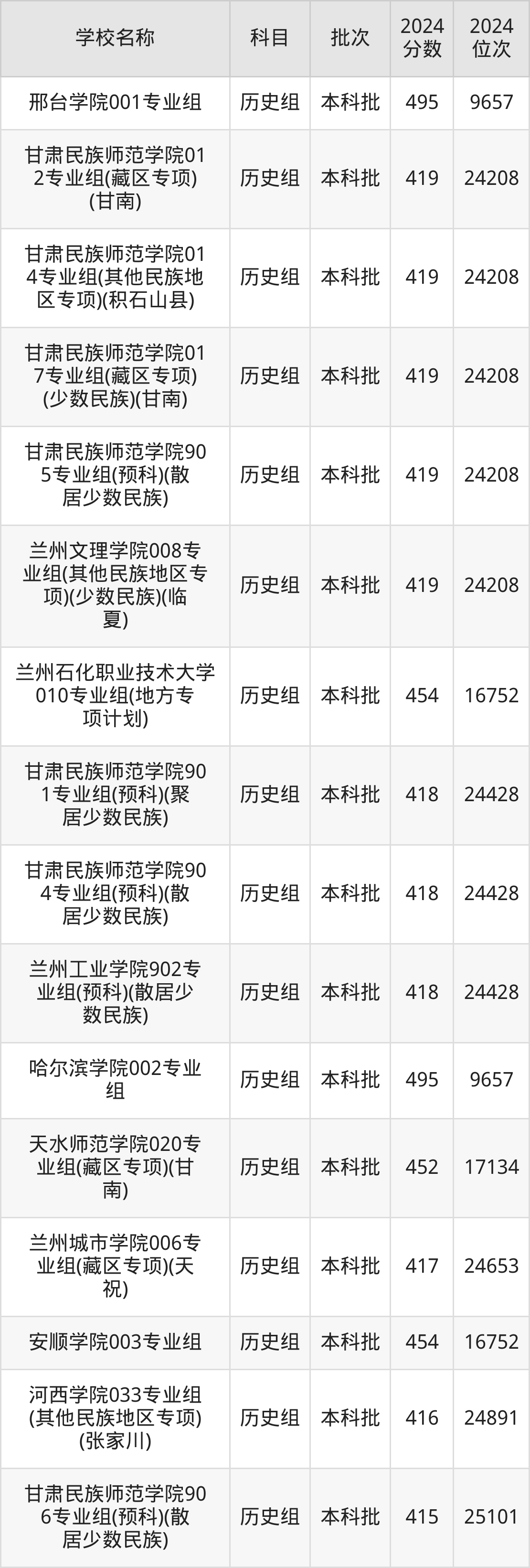 甘肃高考历史组共有200所二本公办大学在400到500分之间录取,包含陕西学前师范学院、宁德师范学院、中华女子学院、天水师范学院、榆林学院、遵义师范学院、湖南城市学院、安康学院、内江师范学院、泉州师范学院。