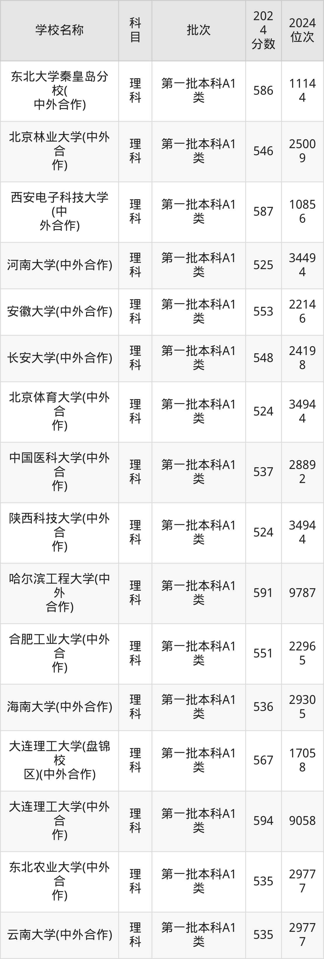 内蒙古高考理科共有232所重点大学在500到600分之间录取,包含湖南大学、北京电子科技学院、同济大学、中山大学、南昌大学(中外合作)、西安交通大学、北京师范大学、华东师范大学、华北电力大学(保定)、中国农业大学。