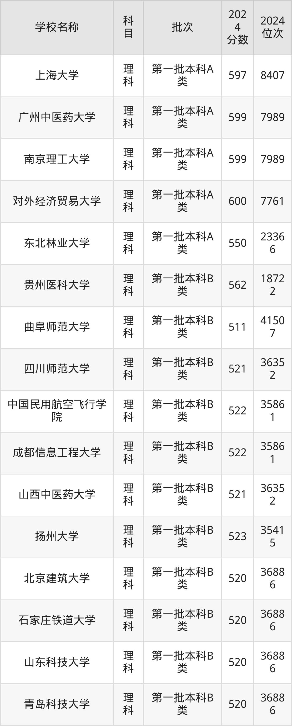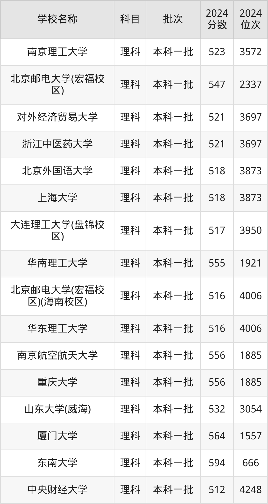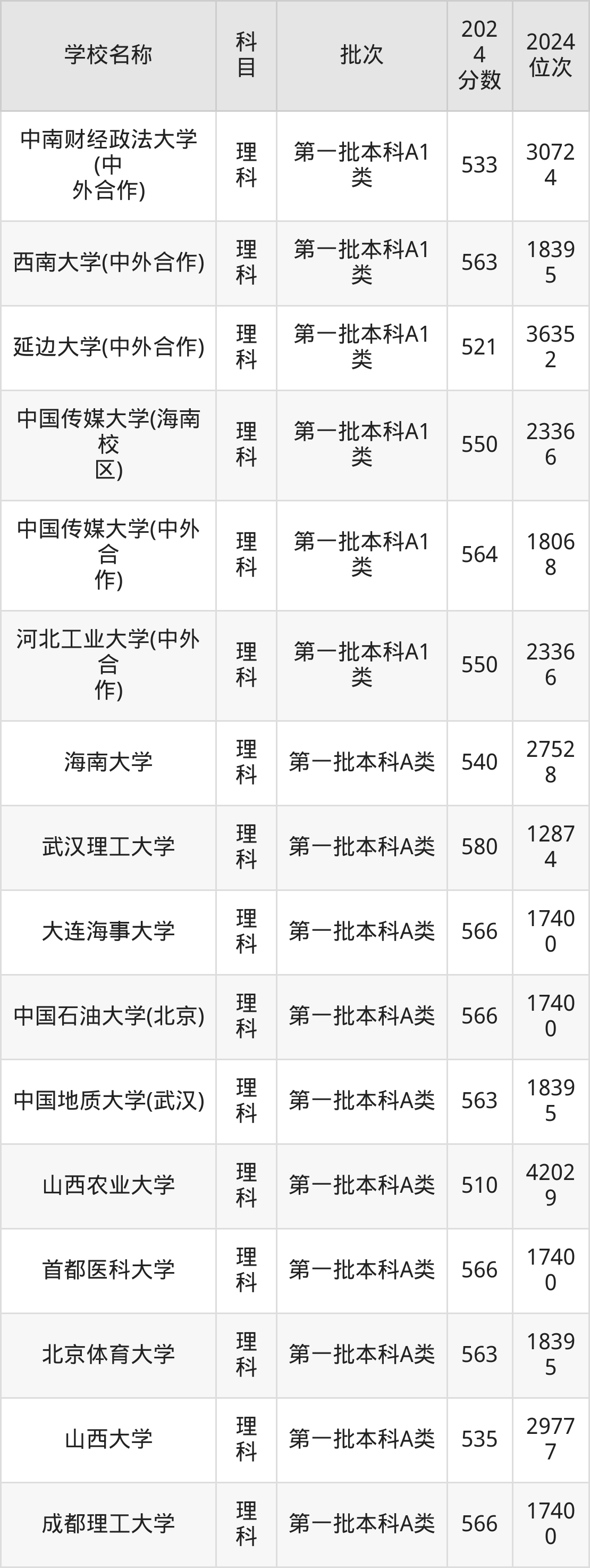 山西高考理科共有282所重点大学在500到600分之间录取,包含深圳大学、对外经济贸易大学、南京理工大学、广州中医药大学、上海大学、北京化工大学、大连理工大学(中外合作)、江南大学、北京协和医学院、北京外国语大学。