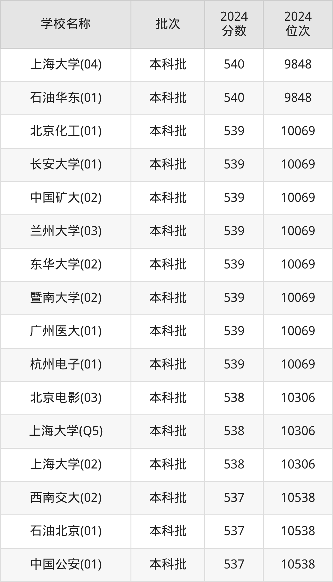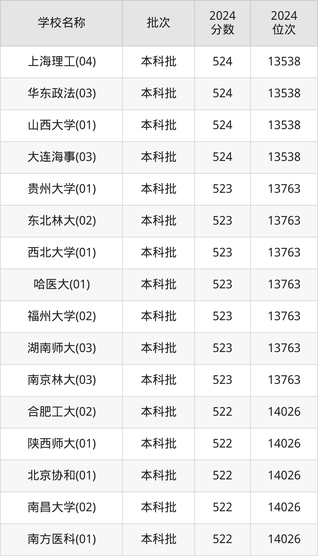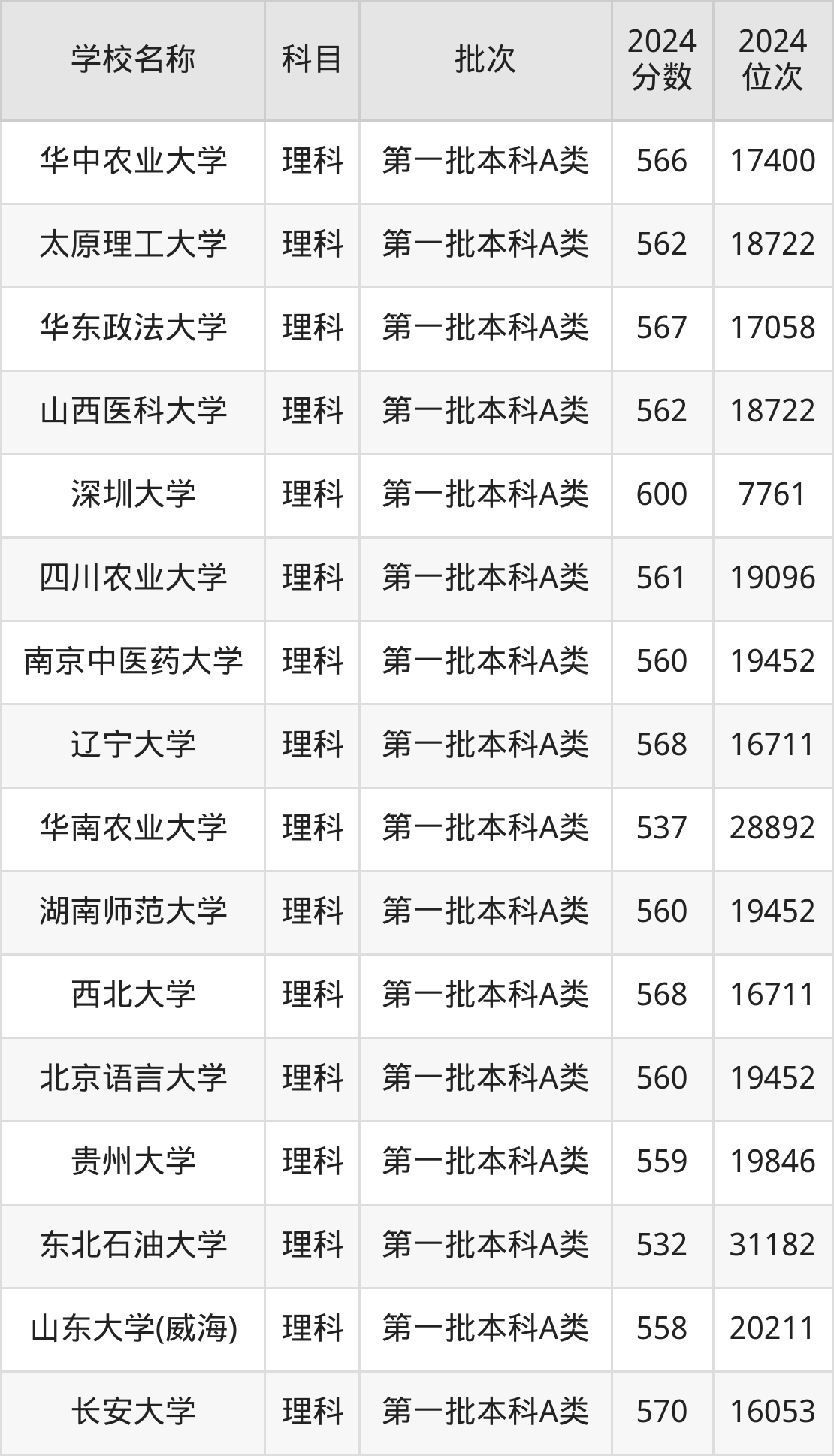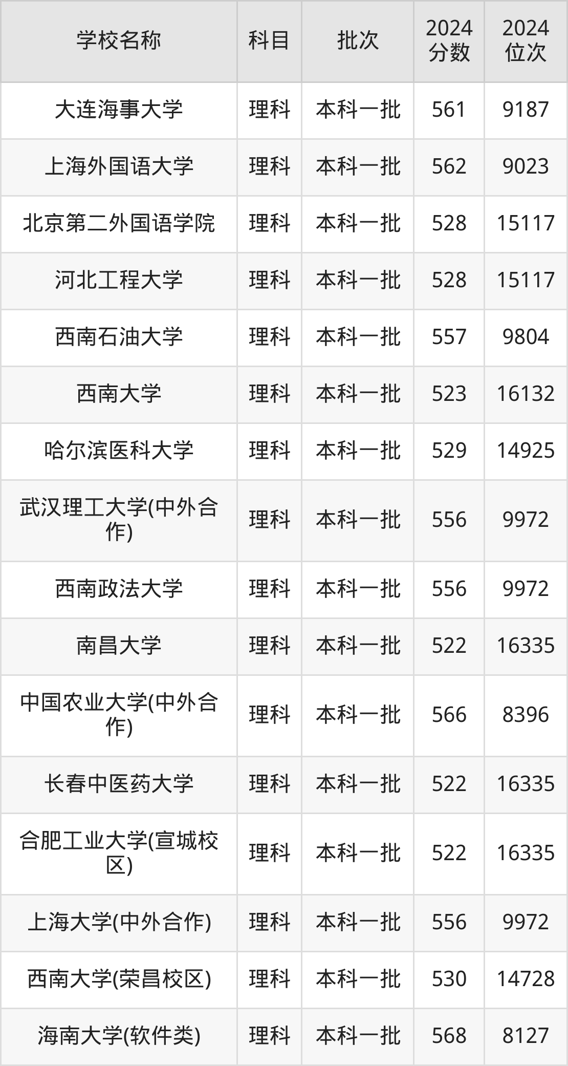 山西高考理科共有282所重点大学在500到600分之间录取,包含深圳大学、对外经济贸易大学、南京理工大学、广州中医药大学、上海大学、北京化工大学、大连理工大学(中外合作)、江南大学、北京协和医学院、北京外国语大学。