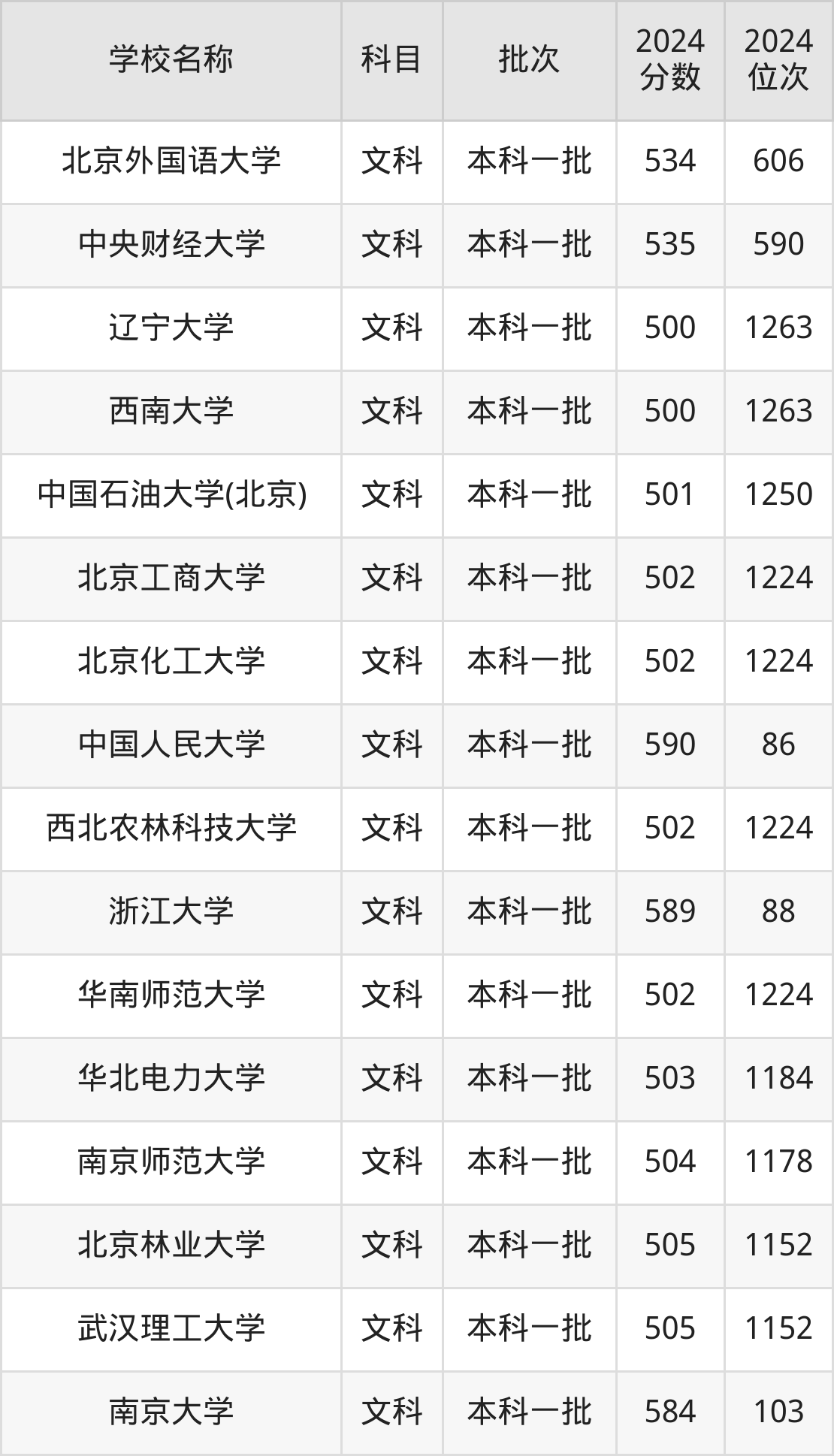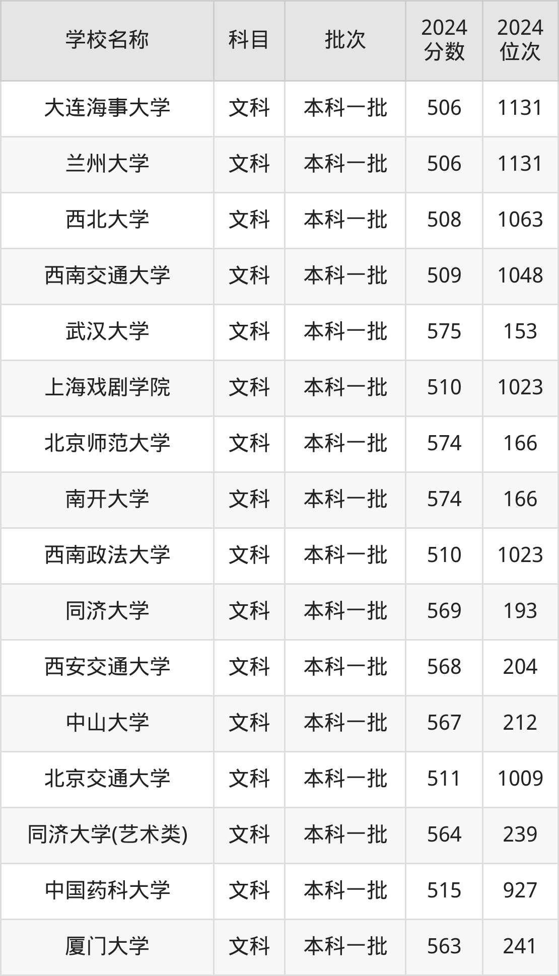 新疆高考文科共有61所重点大学在500到600分之间录取,包含中国人民大学、浙江大学、南京大学、武汉大学、北京师范大学、南开大学、同济大学、西安交通大学、中山大学、同济大学(艺术类)。