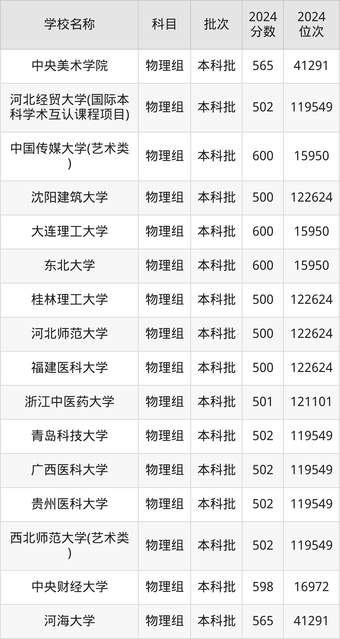 河北高考物理组共有337所重点大学在500到600分之间录取,包含空军军医大学、中国传媒大学(艺术类)、大连理工大学、东北大学、中央财经大学、深圳大学、西南政法大学、兰州大学、湖南师范大学(艺术类)、吉林大学。