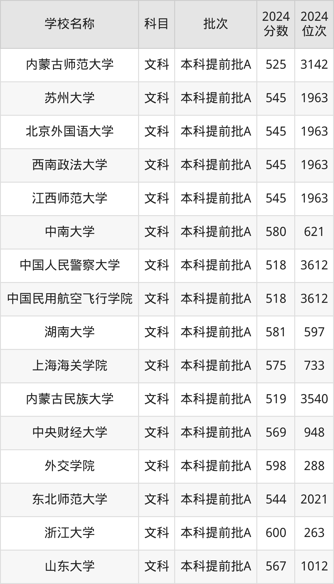 内蒙古高考文科共有179所重点大学在500到600分之间录取,包含浙江大学、同济大学、清华大学、外交学院、厦门大学、中山大学、北京理工大学、复旦大学、中国人民大学、北京电子科技学院。