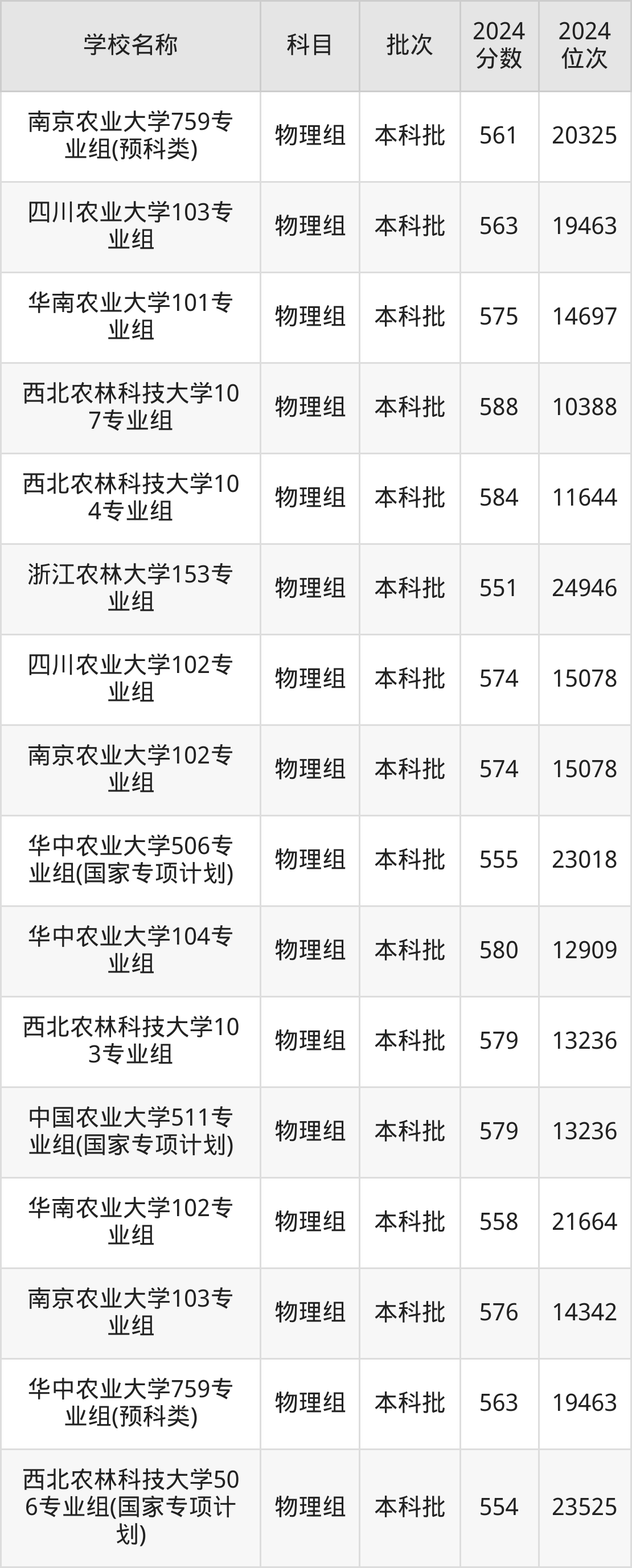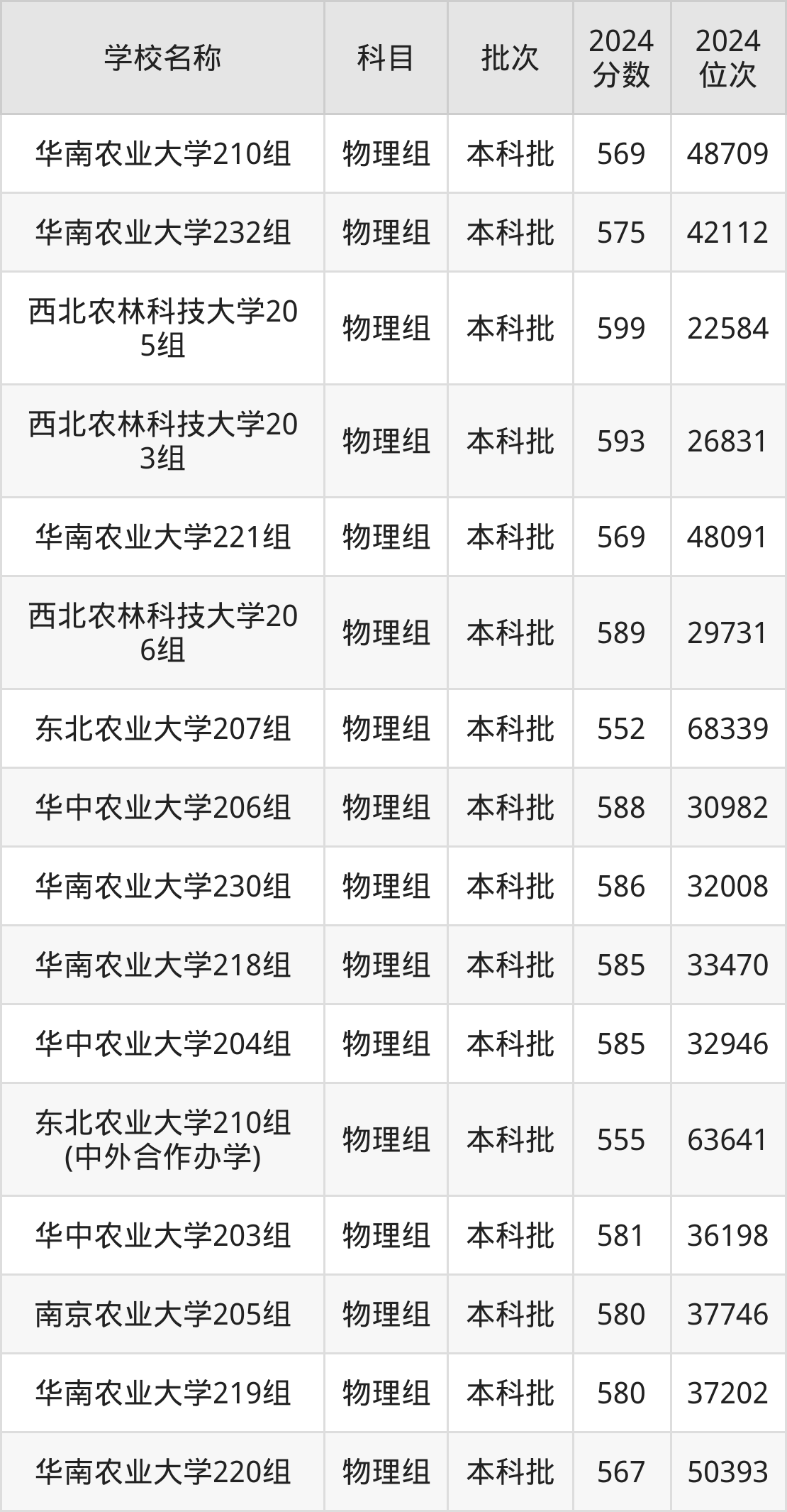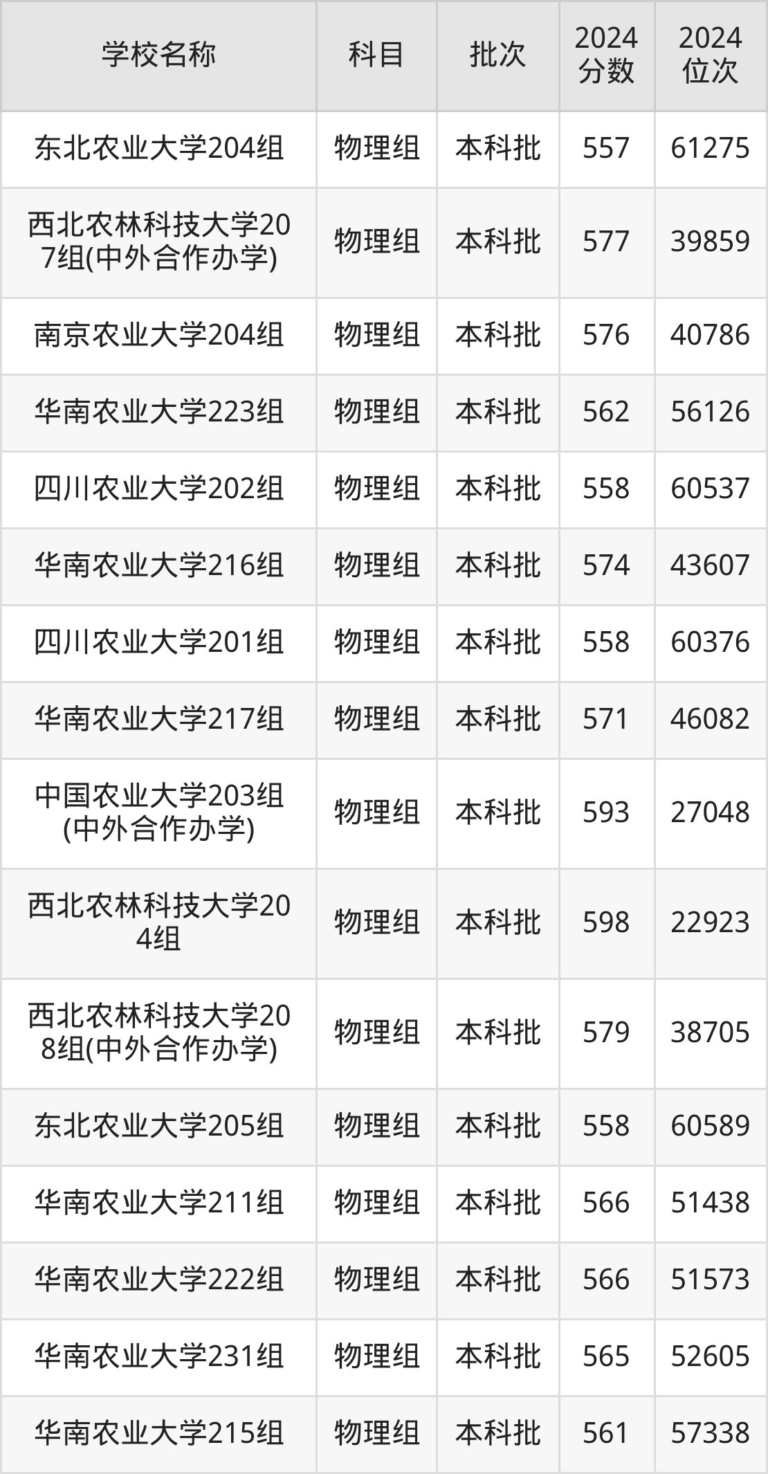 广东高考物理组共有7所农业大学在550到600分之间录取,包含西北农林科技大学、中国农业大学、华中农业大学、华南农业大学、南京农业大学、东北农业大学、四川农业大学。