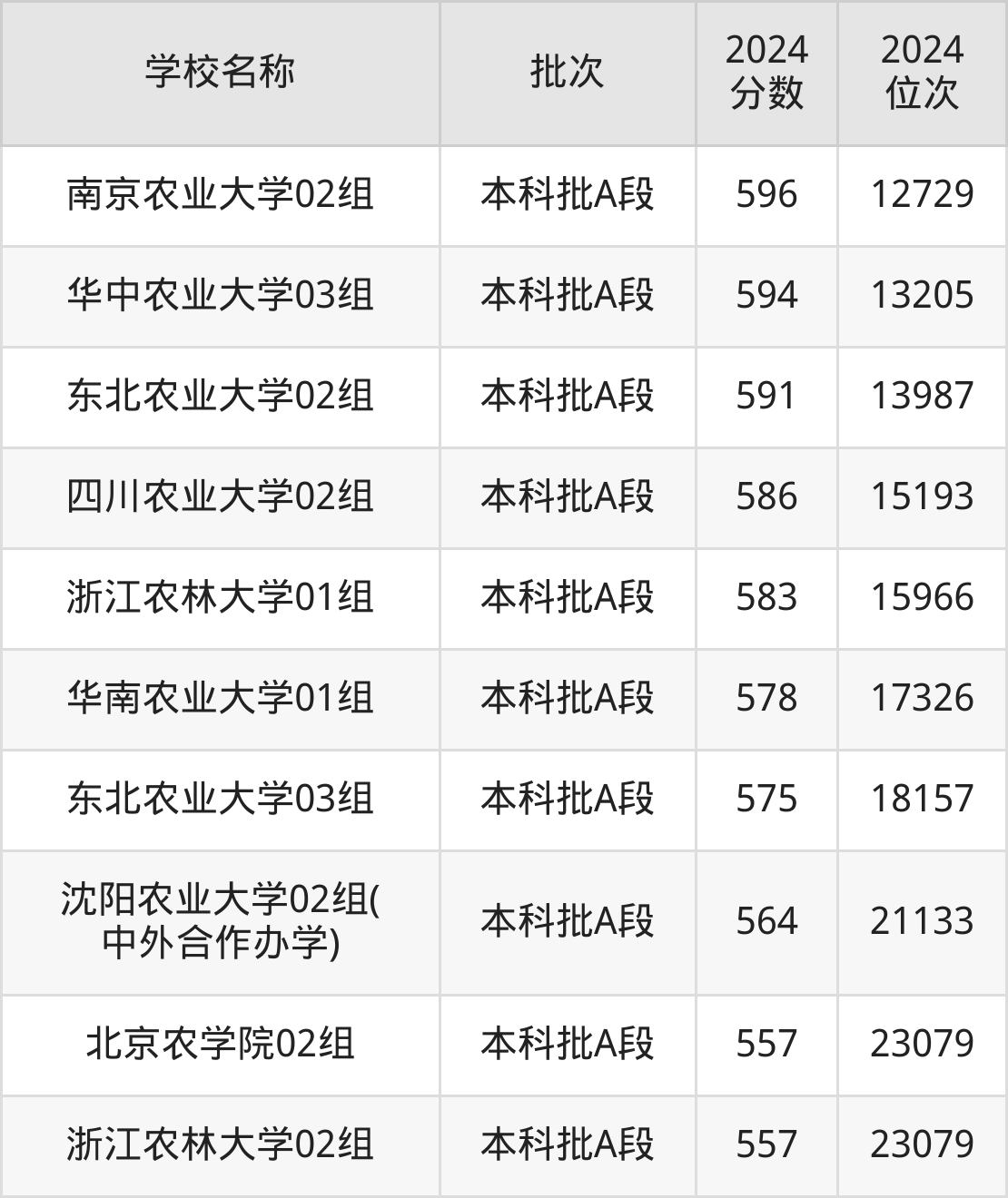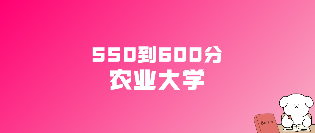 550到600分的农业大学有西北农林科技大学、中国农业大学、华中农业大学、南京农业大学、华南农业大学、东北农业大学、四川农业大学、安徽农业大学、浙江农林大学、沈阳农业大学等。