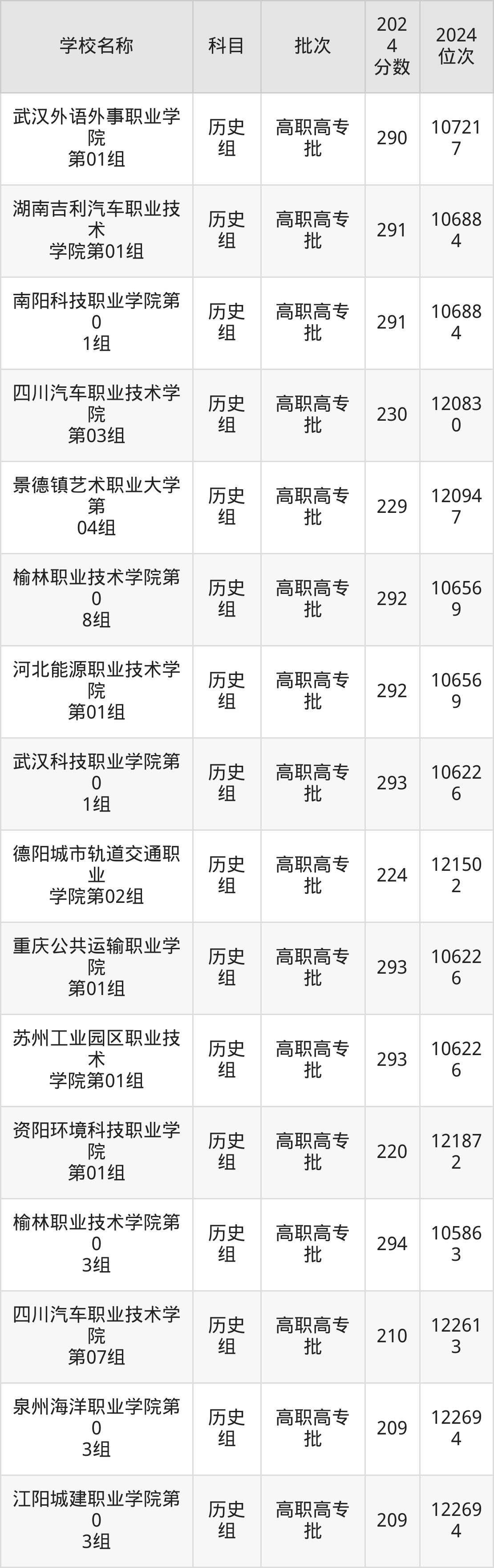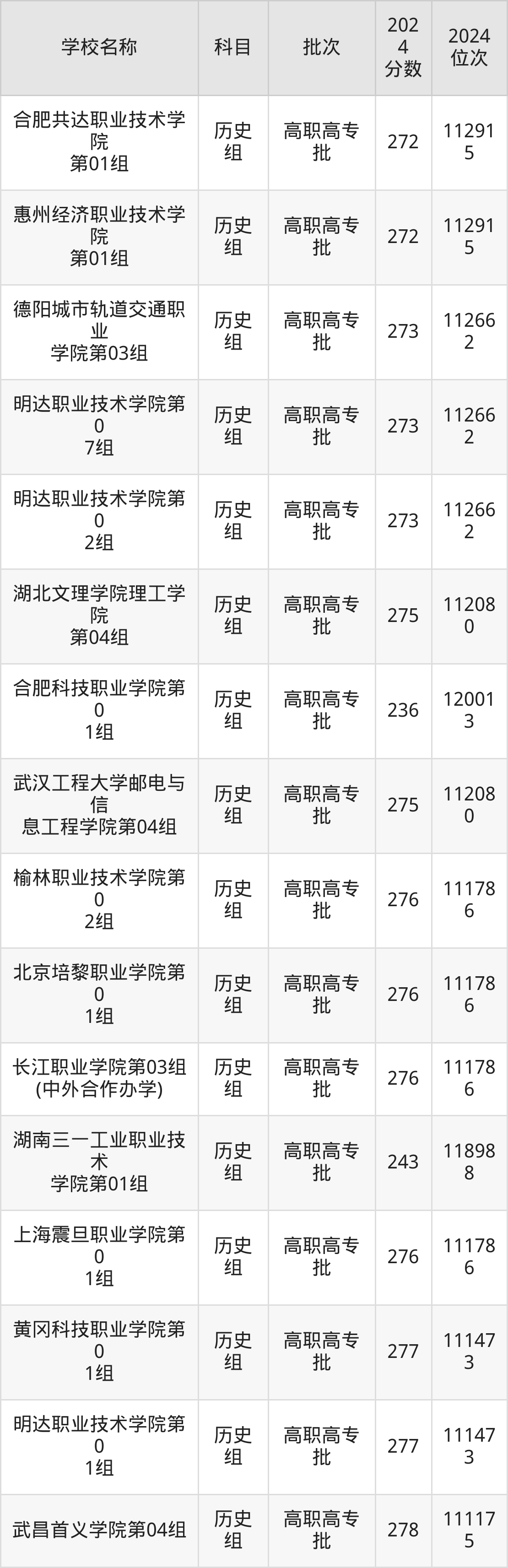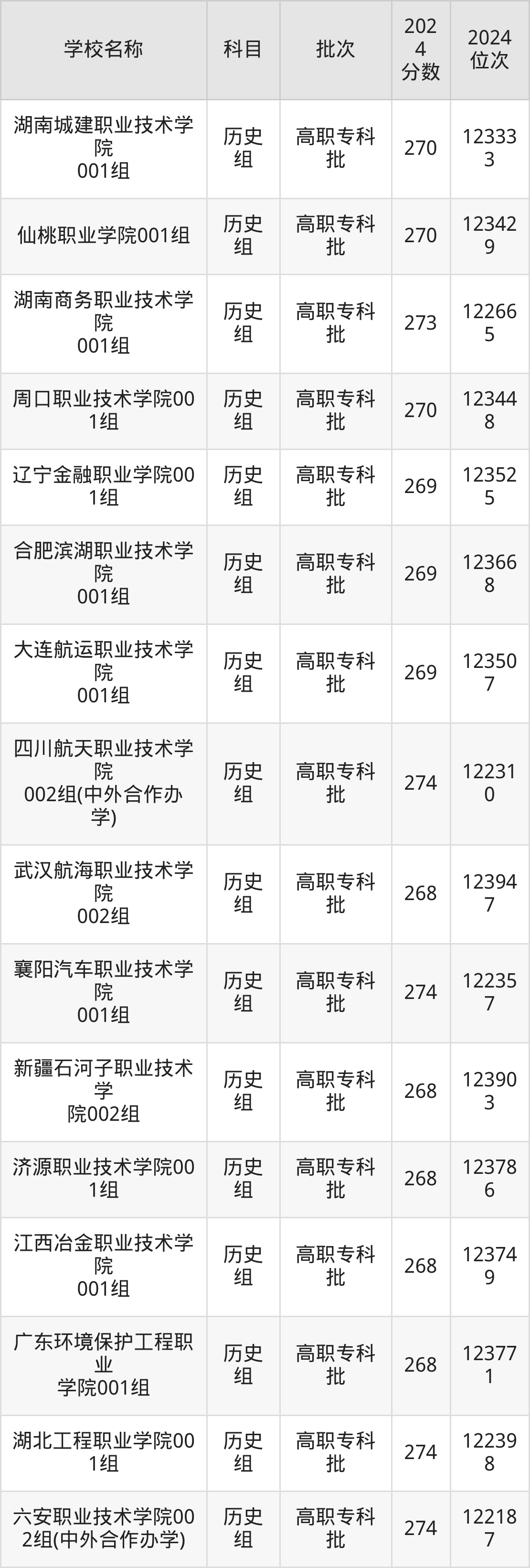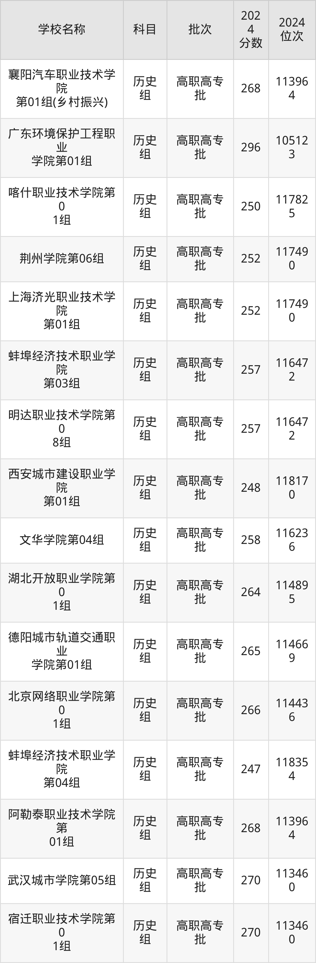 湖北高考历史组共有116所理科大学在200到300分之间录取,包含广西建设职业技术学院、广西机电职业技术学院、湖北职业技术学院、榆林职业技术学院、武汉交通职业学院、广东环境保护工程职业学院、东营职业学院、吉林工业职业技术学院、武汉铁路桥梁职业学院、辽宁机电职业技术学院。