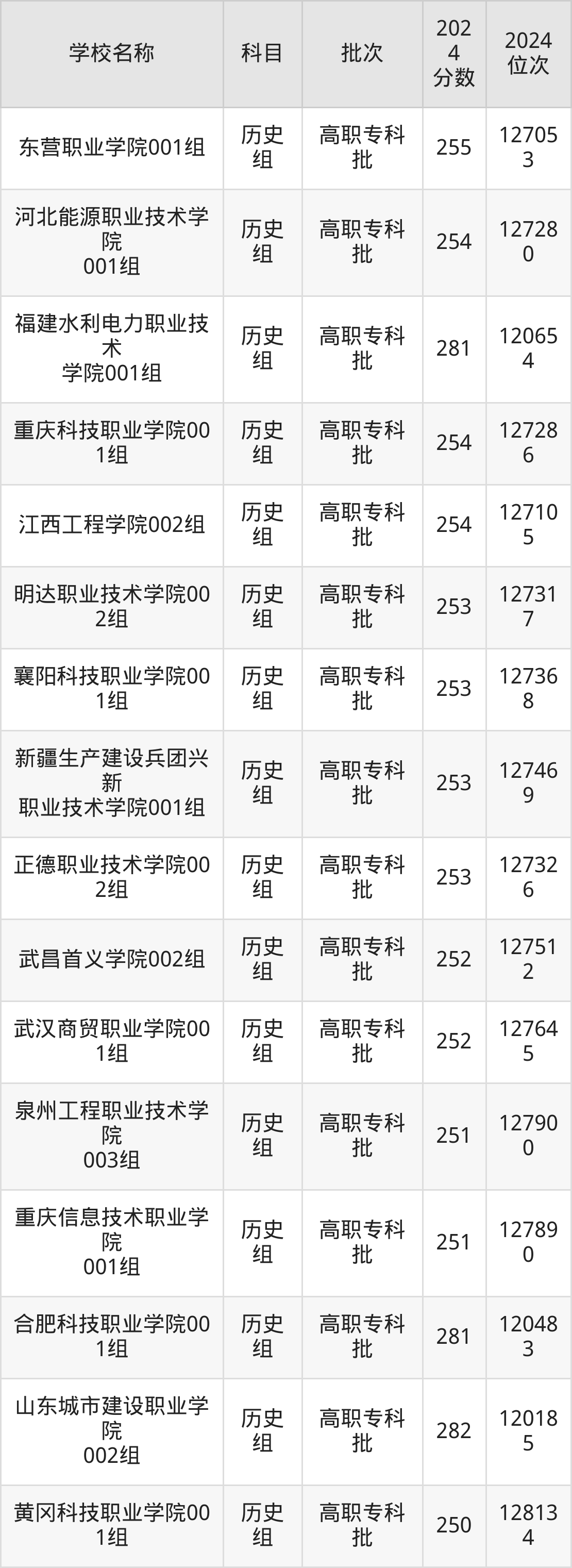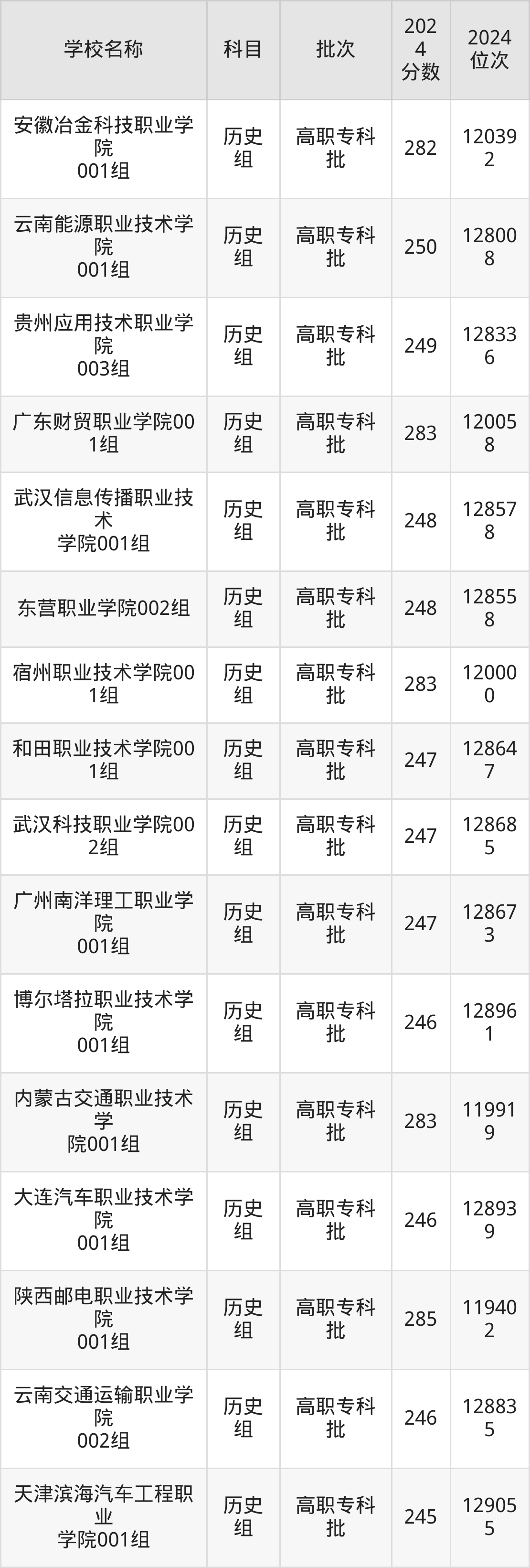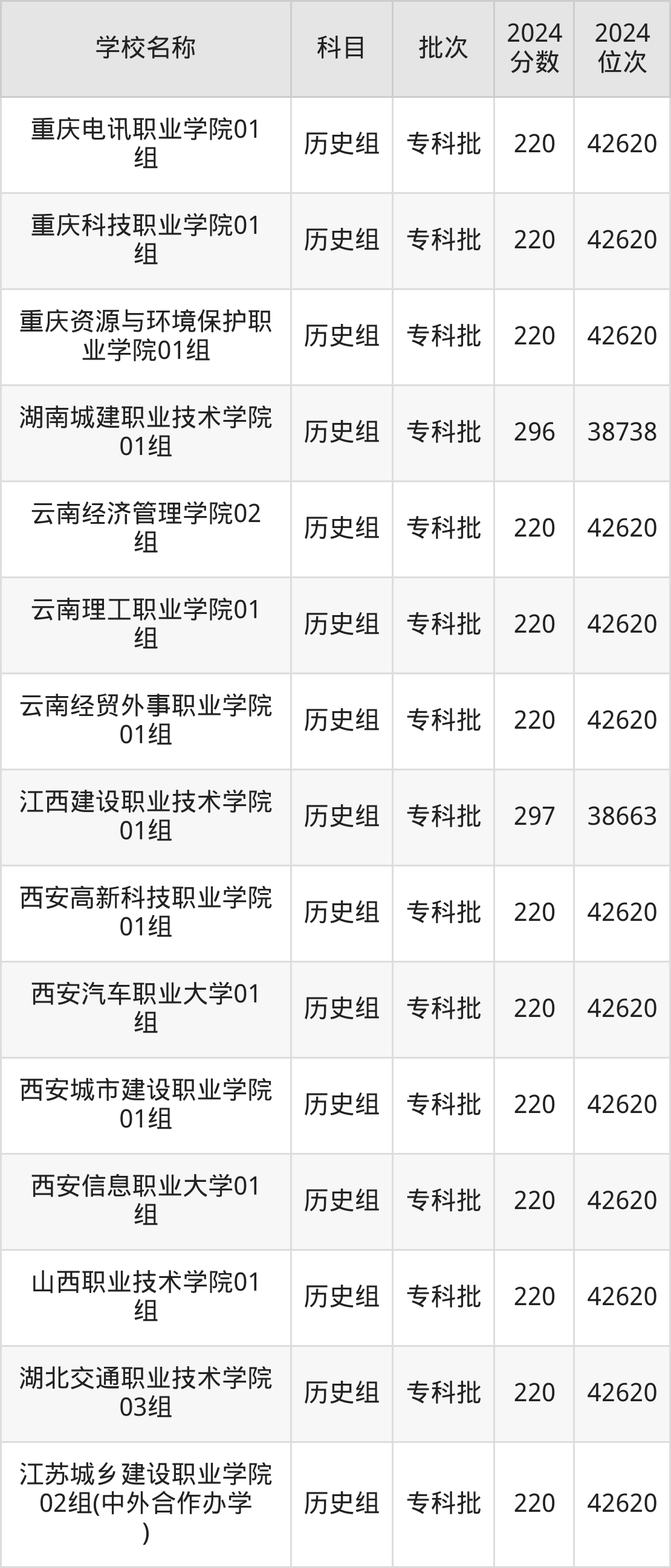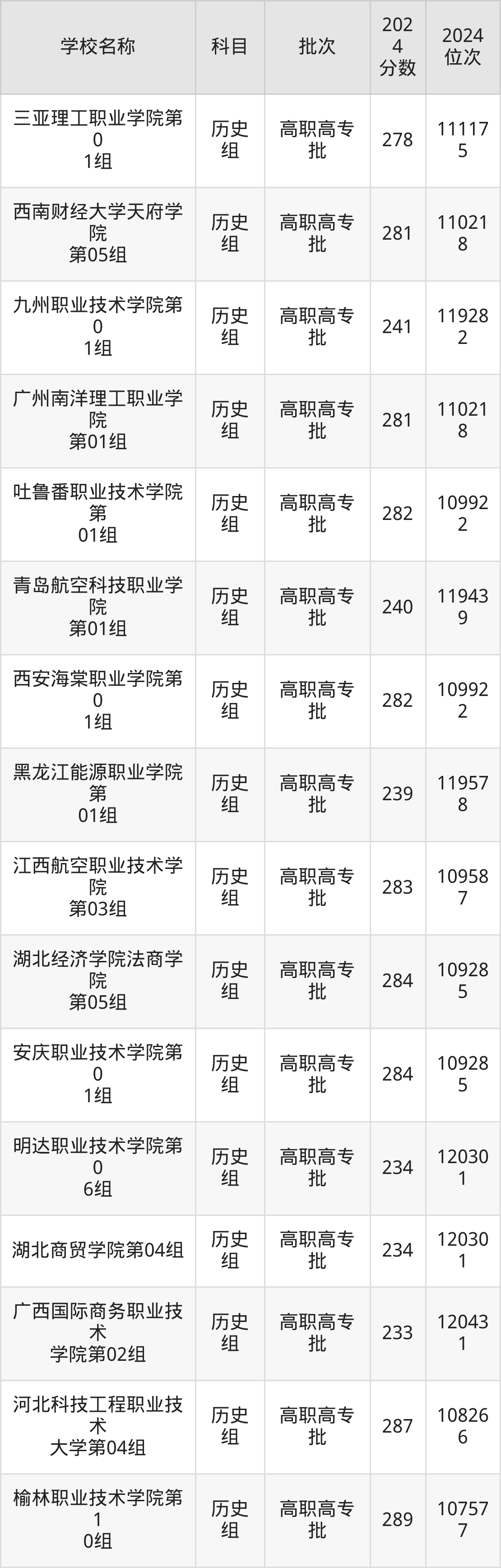 湖北高考历史组共有116所理科大学在200到300分之间录取,包含广西建设职业技术学院、广西机电职业技术学院、湖北职业技术学院、榆林职业技术学院、武汉交通职业学院、广东环境保护工程职业学院、东营职业学院、吉林工业职业技术学院、武汉铁路桥梁职业学院、辽宁机电职业技术学院。