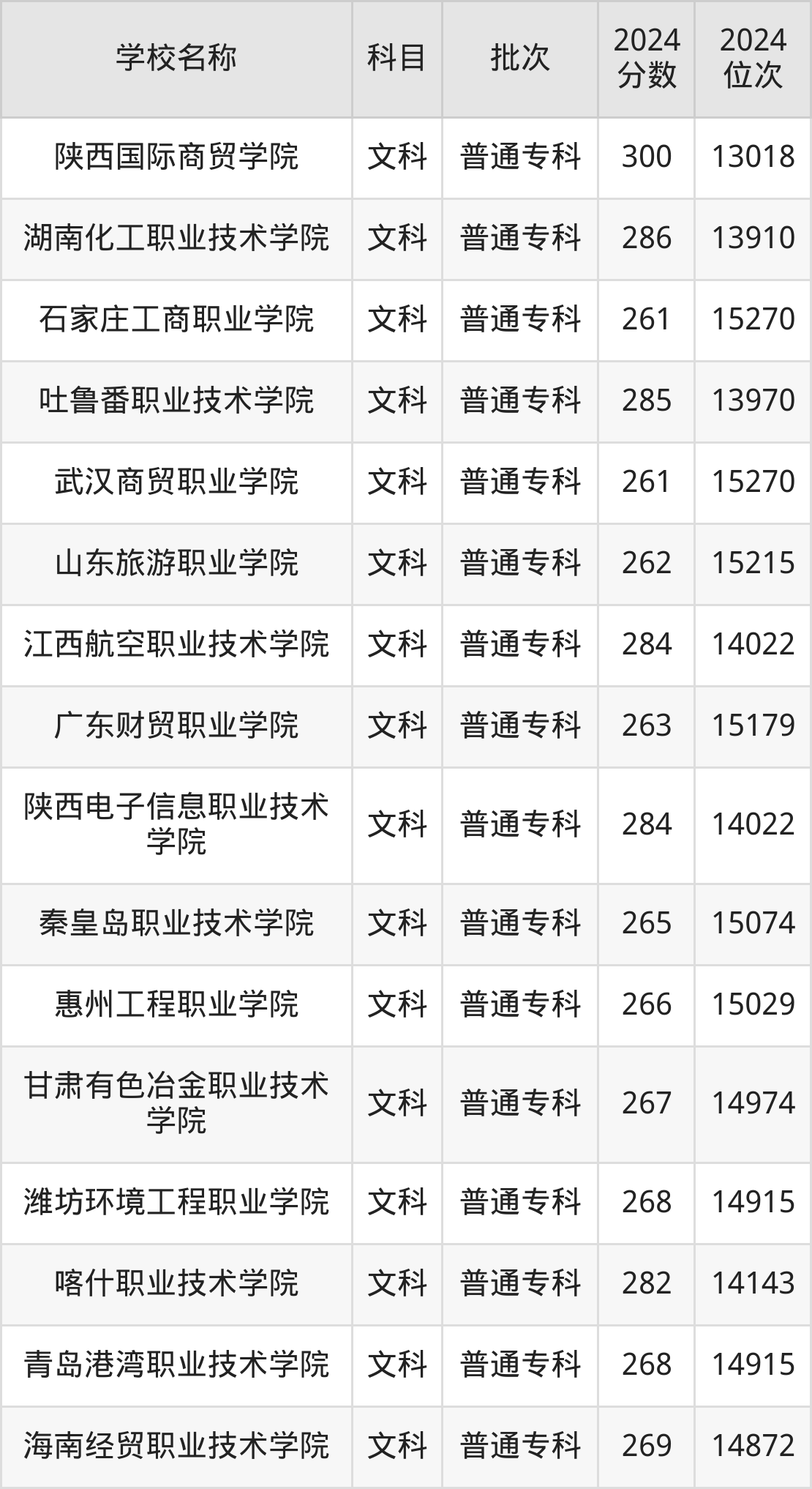 青海高考文科共有95所理科大学在200到300分之间录取,包含陕西国际商贸学院、江苏城乡建设职业学院、江西应用技术职业学院、江苏食品药品职业技术学院、荆州理工职业学院、广州城建职业学院、云南交通职业技术学院、武汉外语外事职业学院、福建船政交通职业学院、长江工程职业技术学院。