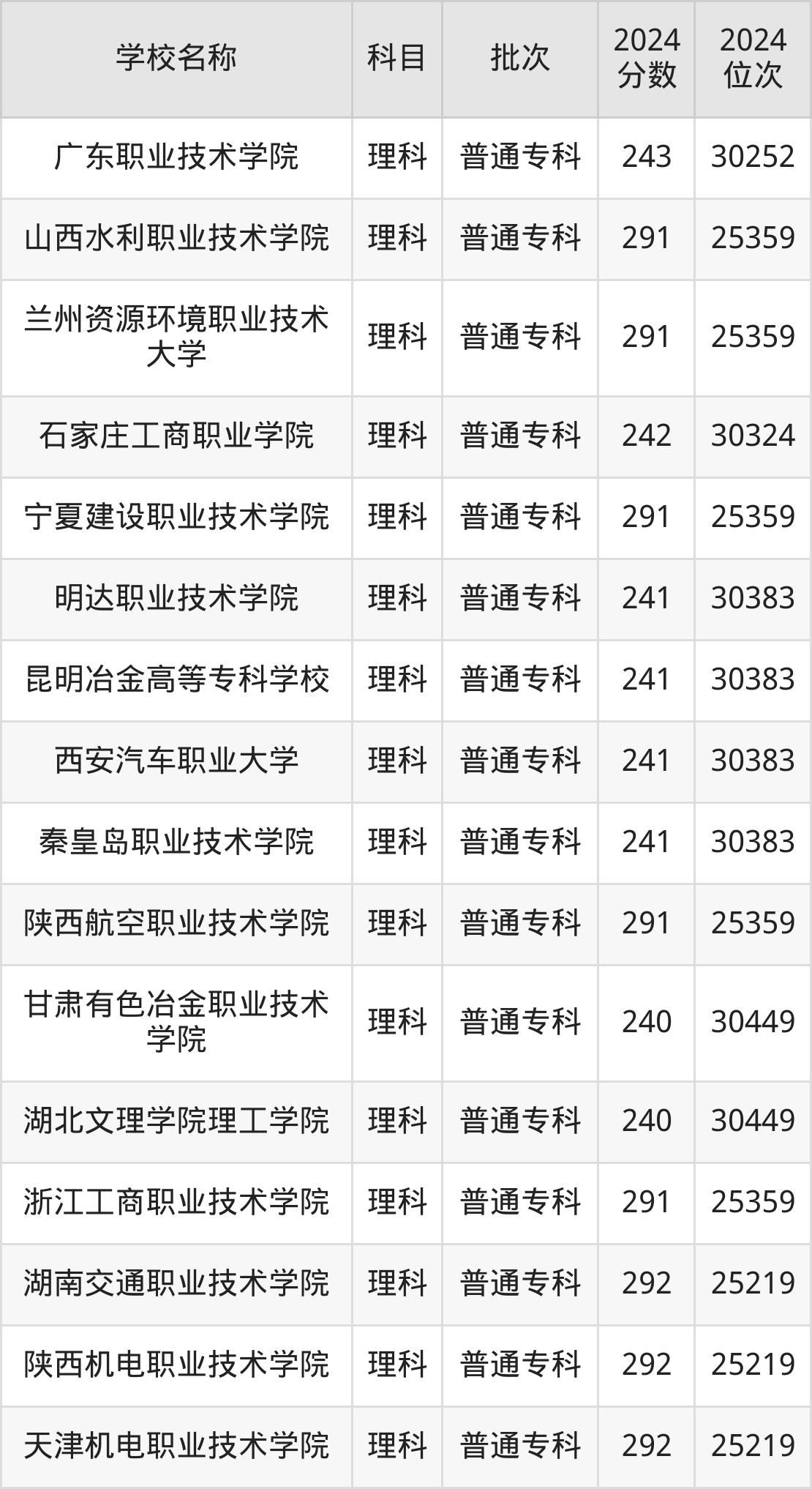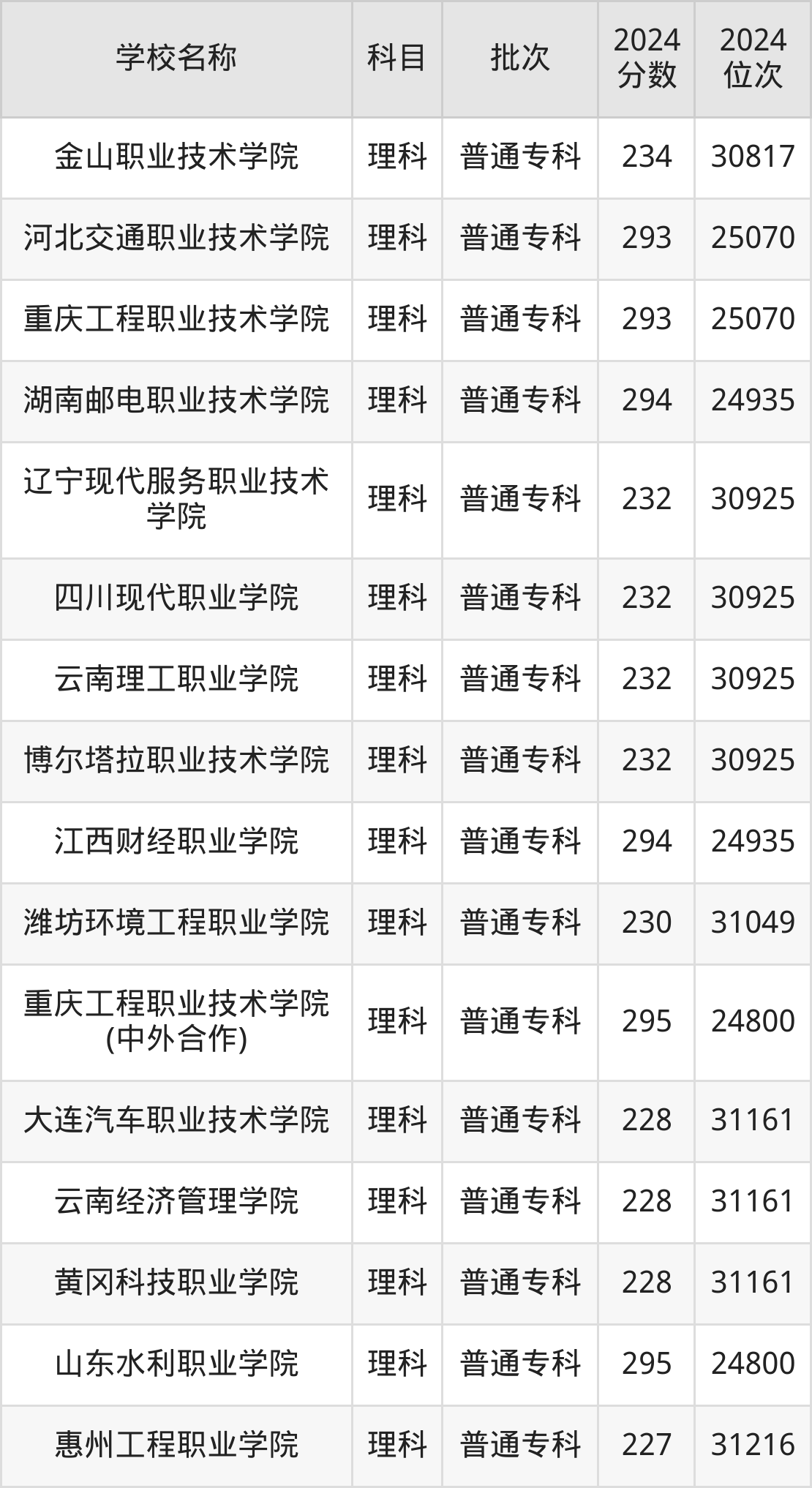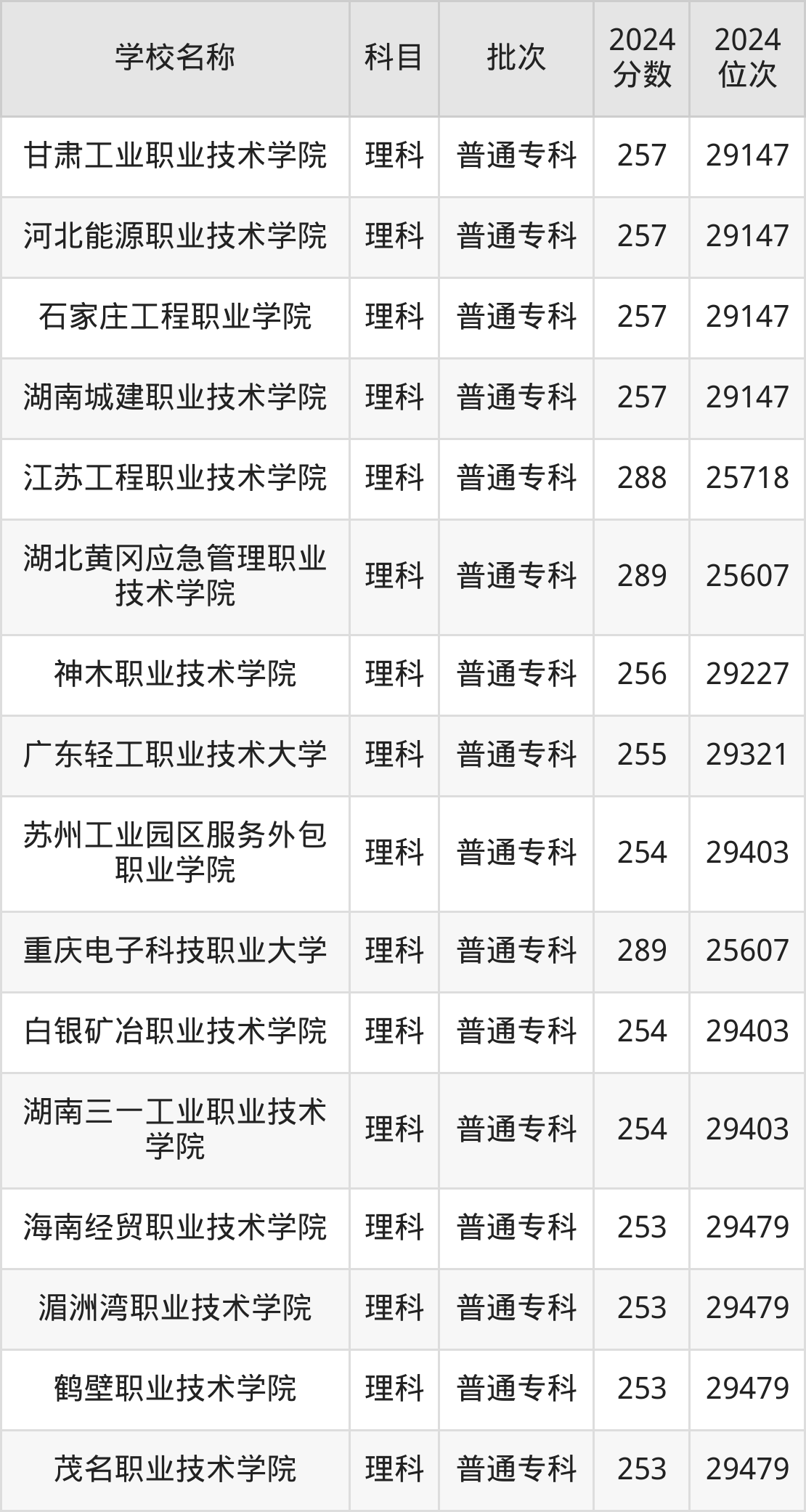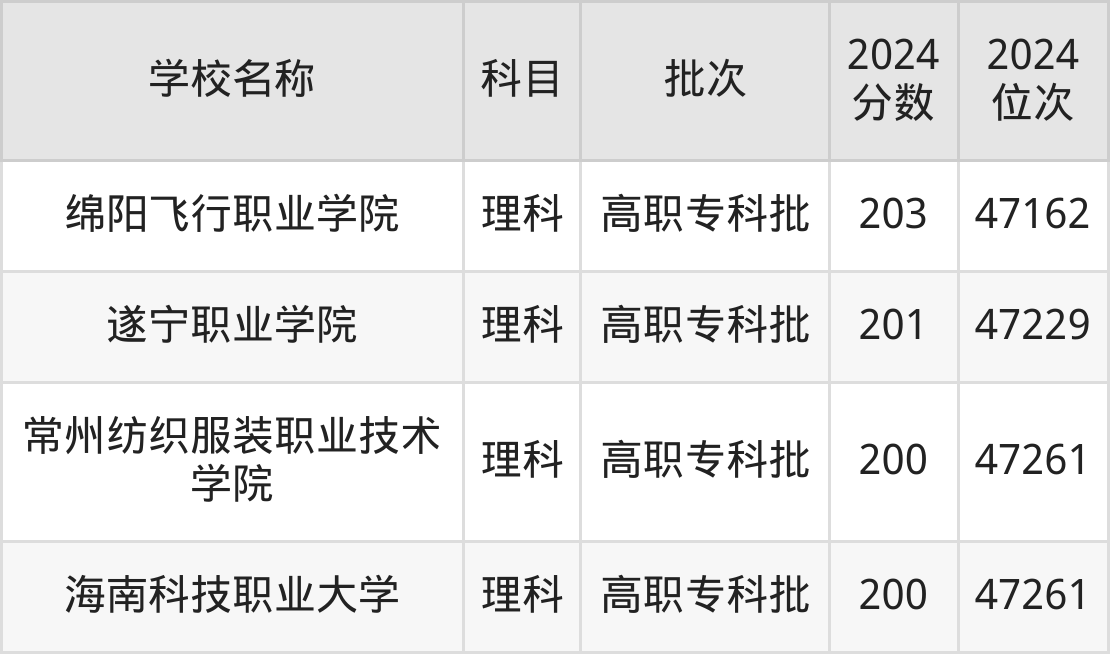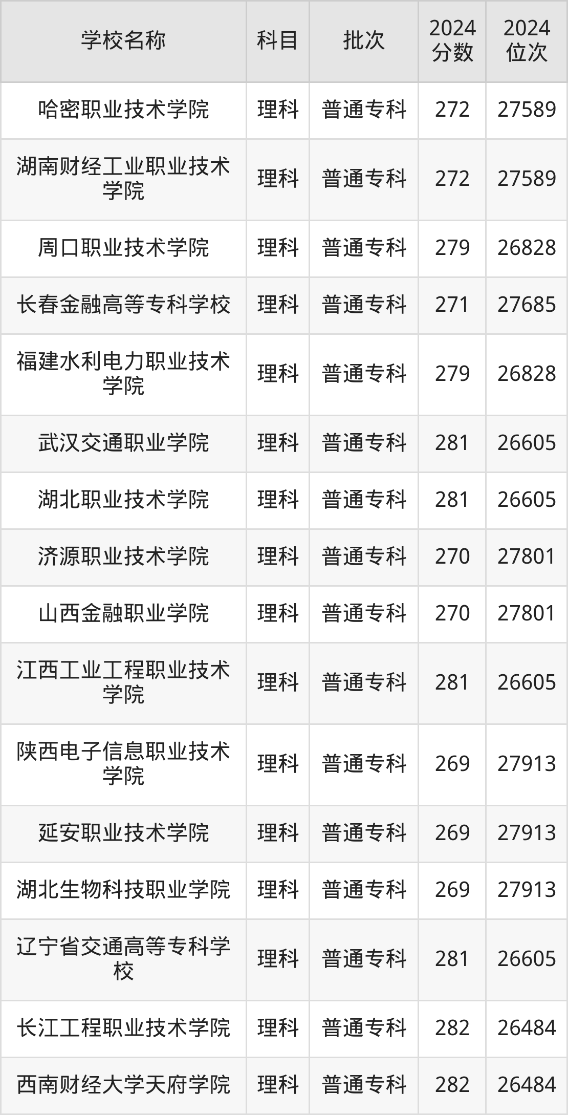 青海高考理科共有195所理科大学在200到300分之间录取,包含天津电子信息职业技术学院、四川交通职业技术学院、黑龙江交通职业技术学院、武汉铁路桥梁职业学院、安徽电气工程职业技术学院、北京工业职业技术学院、青海职业技术大学、广州民航职业技术学院(中外合作)、南京科技职业学院、连云港职业技术学院。