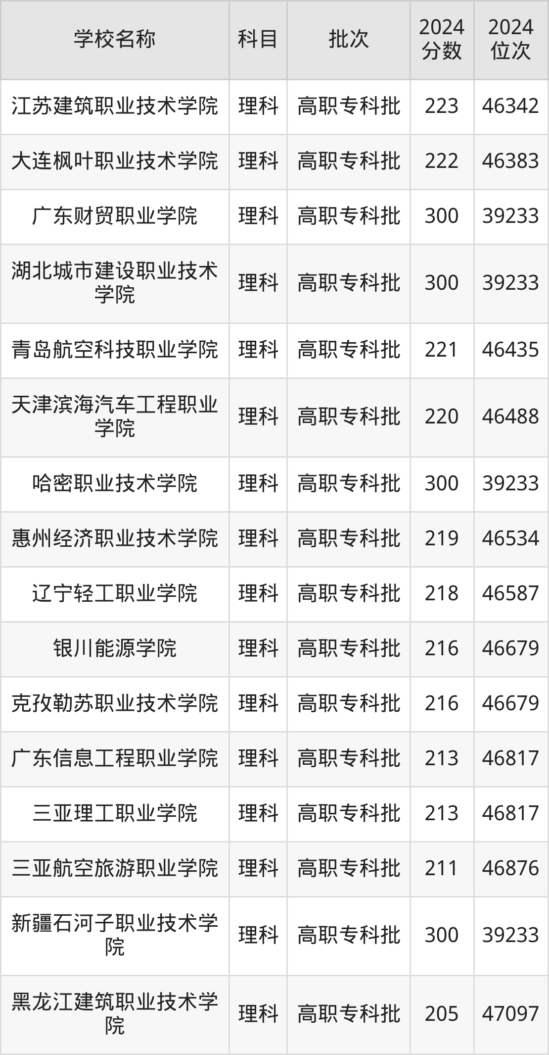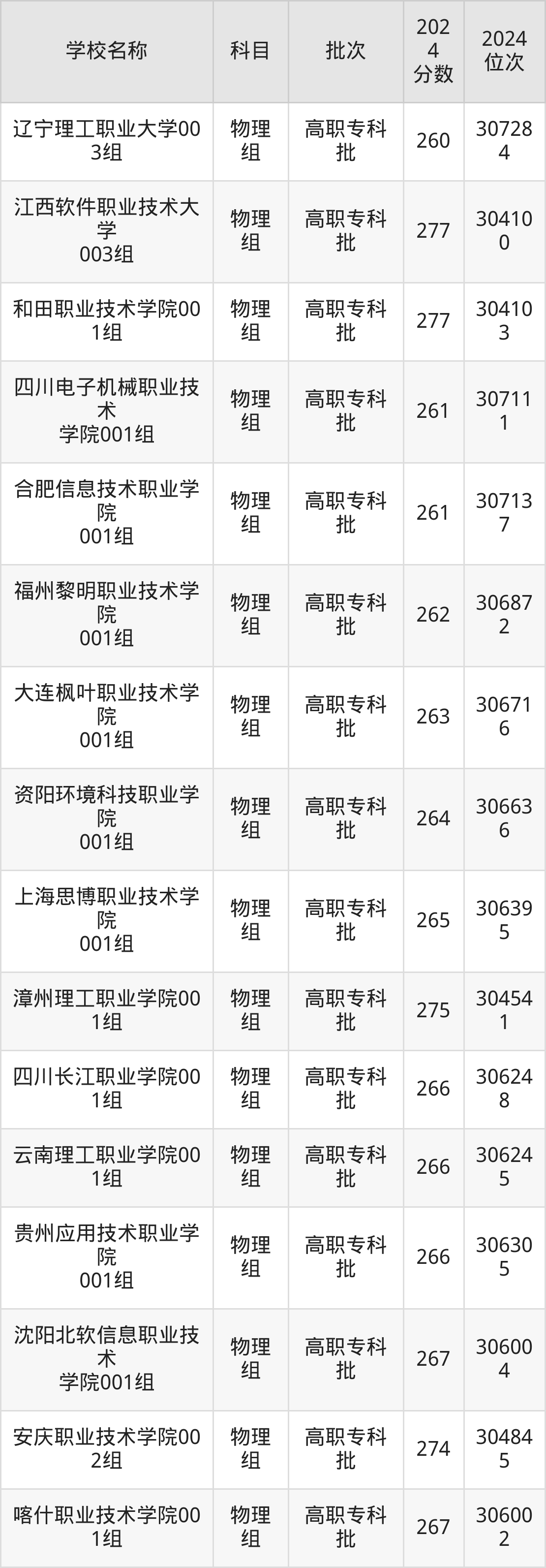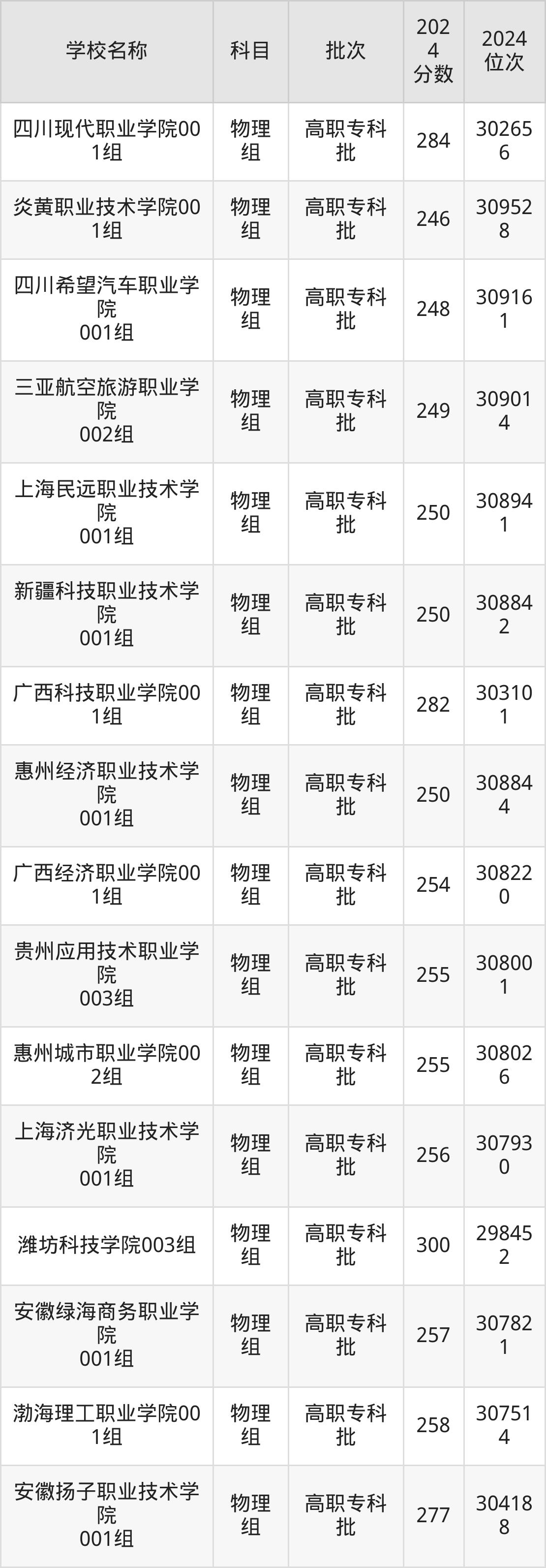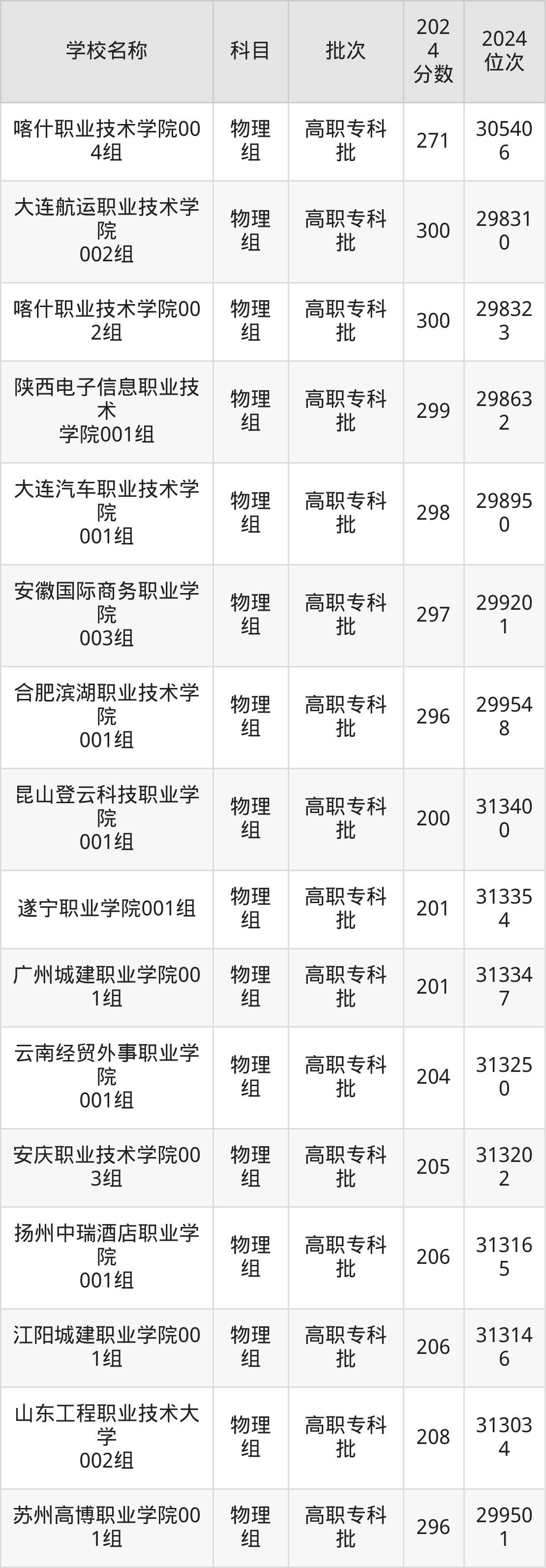 江苏高考物理组共有20所理科大学在200到300分之间录取,包含山东工程职业技术大学、资阳环境科技职业学院、九州职业技术学院、三亚理工职业学院、云南工商学院、昆山登云科技职业学院、硅湖职业技术学院、宿迁职业技术学院、渤海理工职业学院、炎黄职业技术学院。