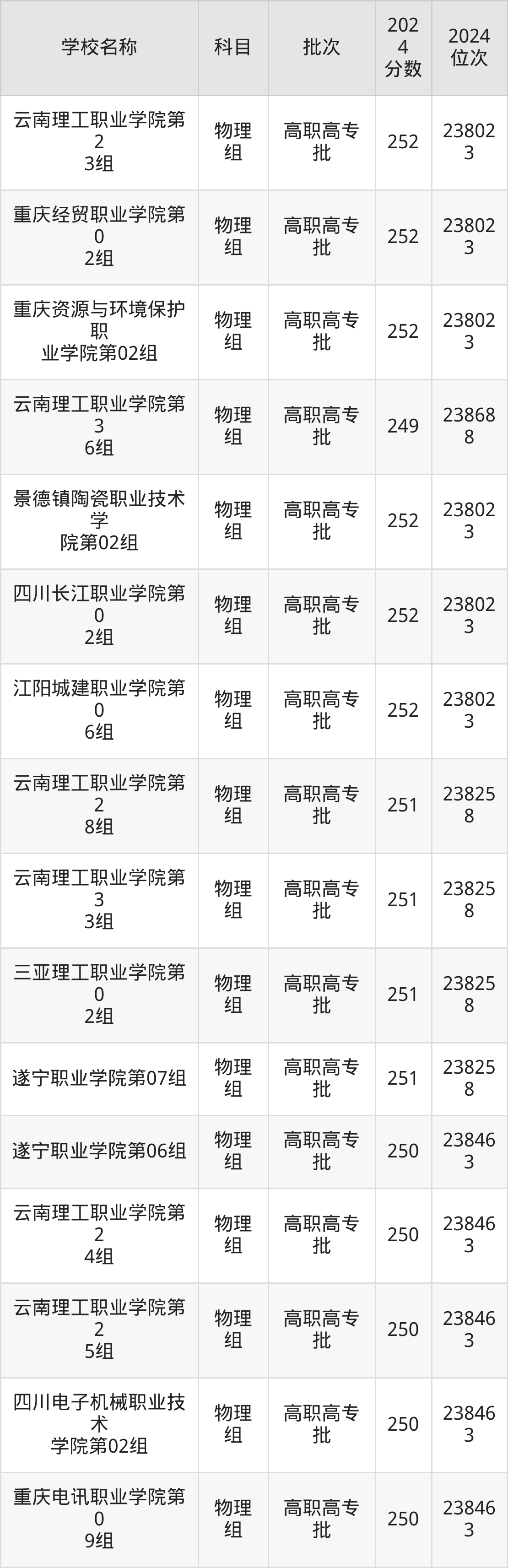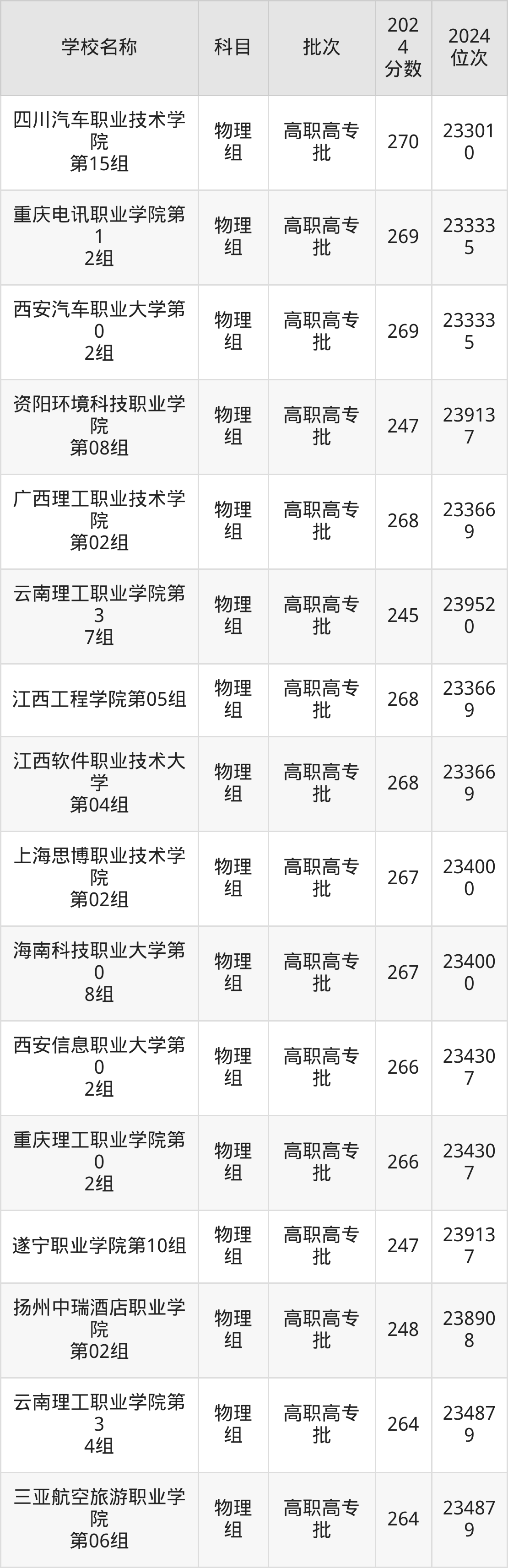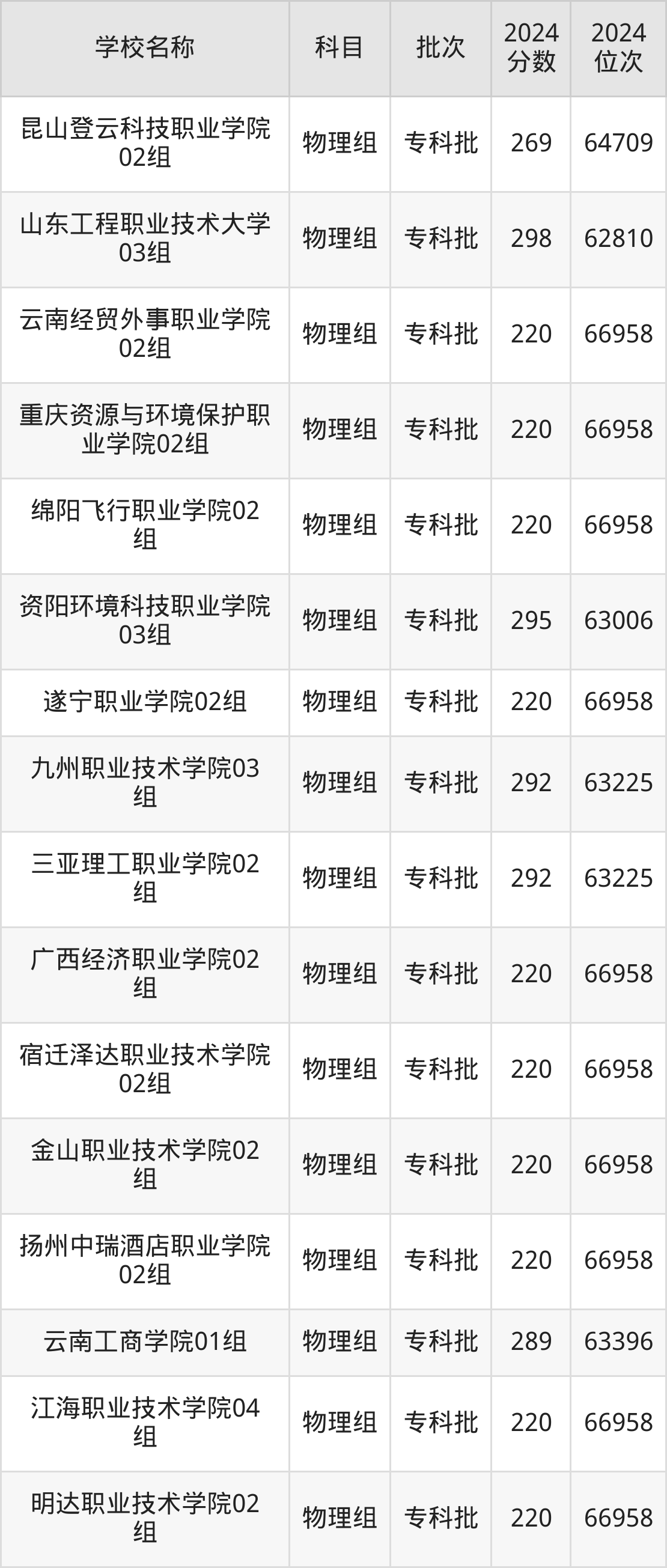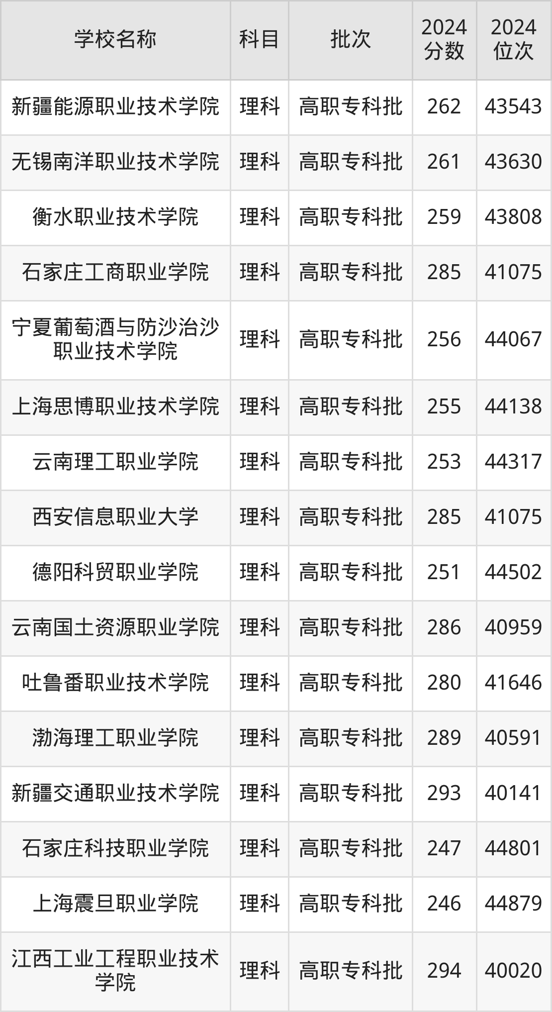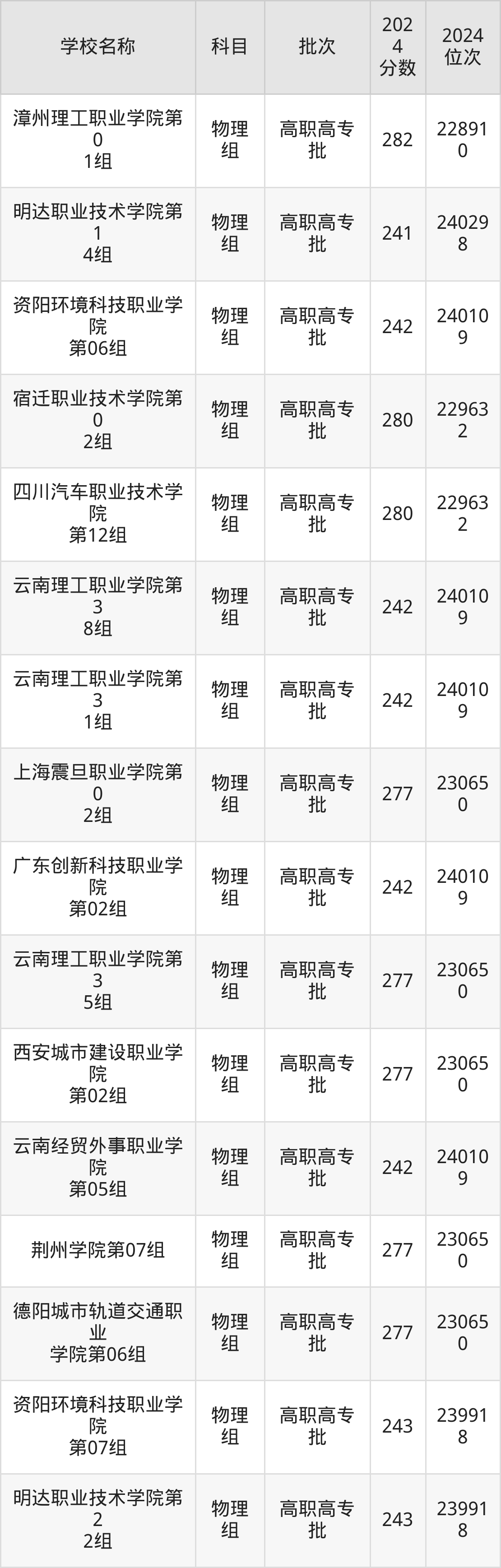 江苏高考物理组共有20所理科大学在200到300分之间录取,包含山东工程职业技术大学、资阳环境科技职业学院、九州职业技术学院、三亚理工职业学院、云南工商学院、昆山登云科技职业学院、硅湖职业技术学院、宿迁职业技术学院、渤海理工职业学院、炎黄职业技术学院。