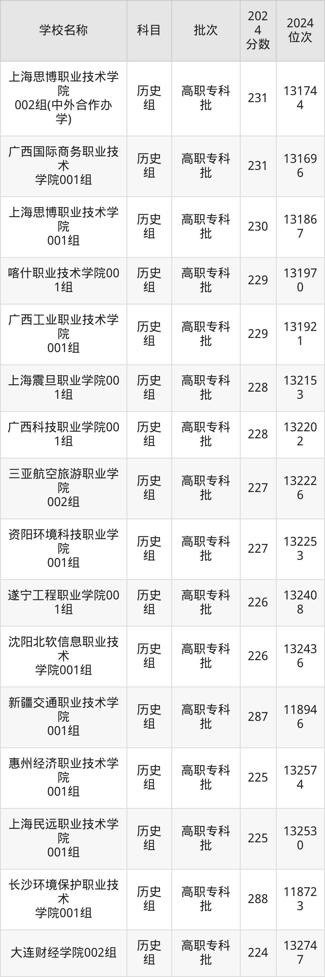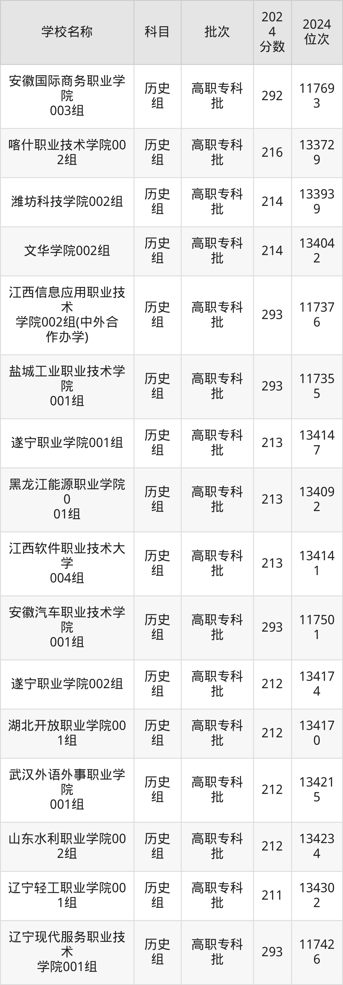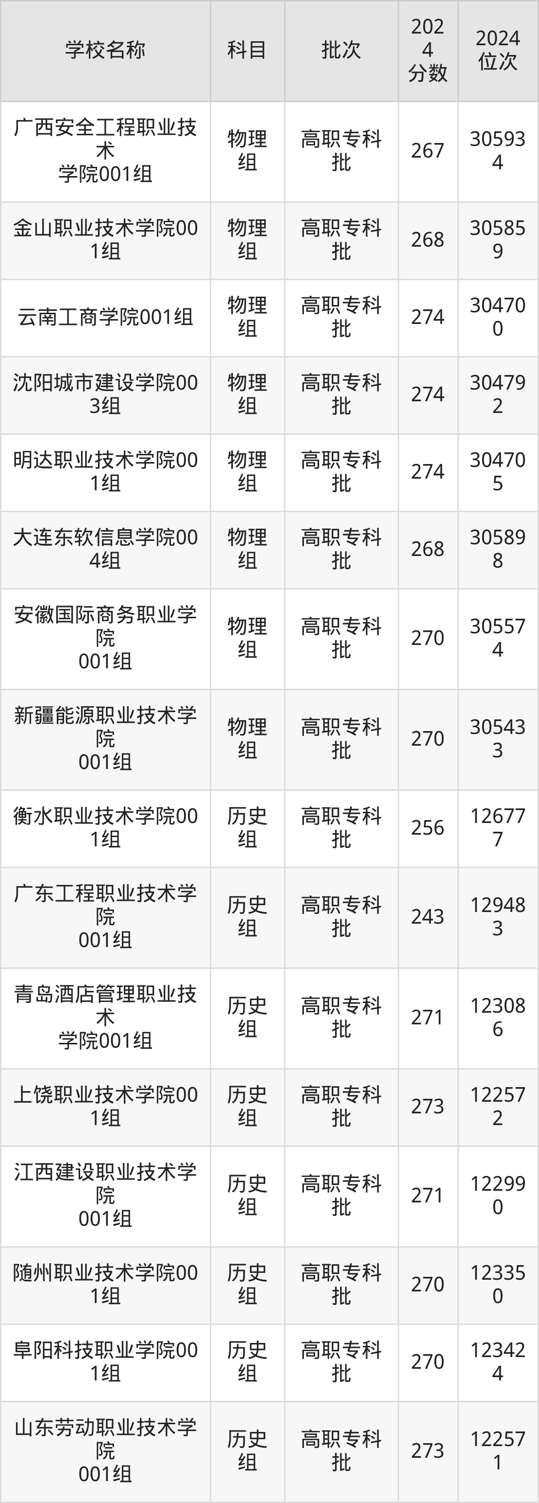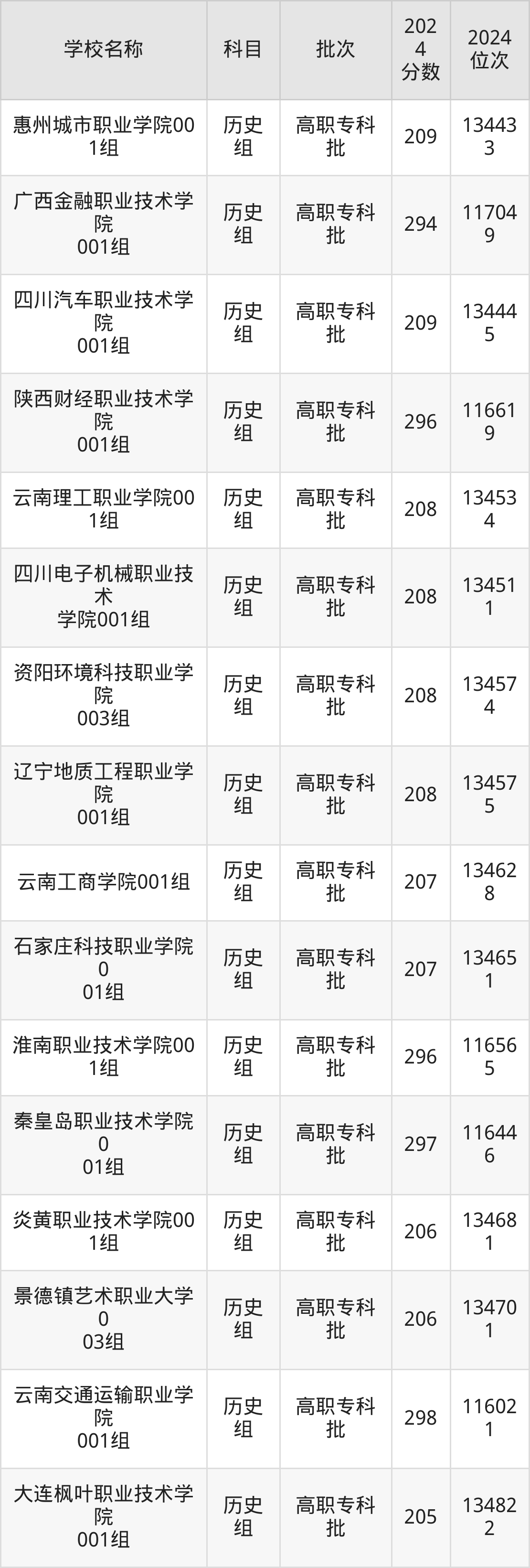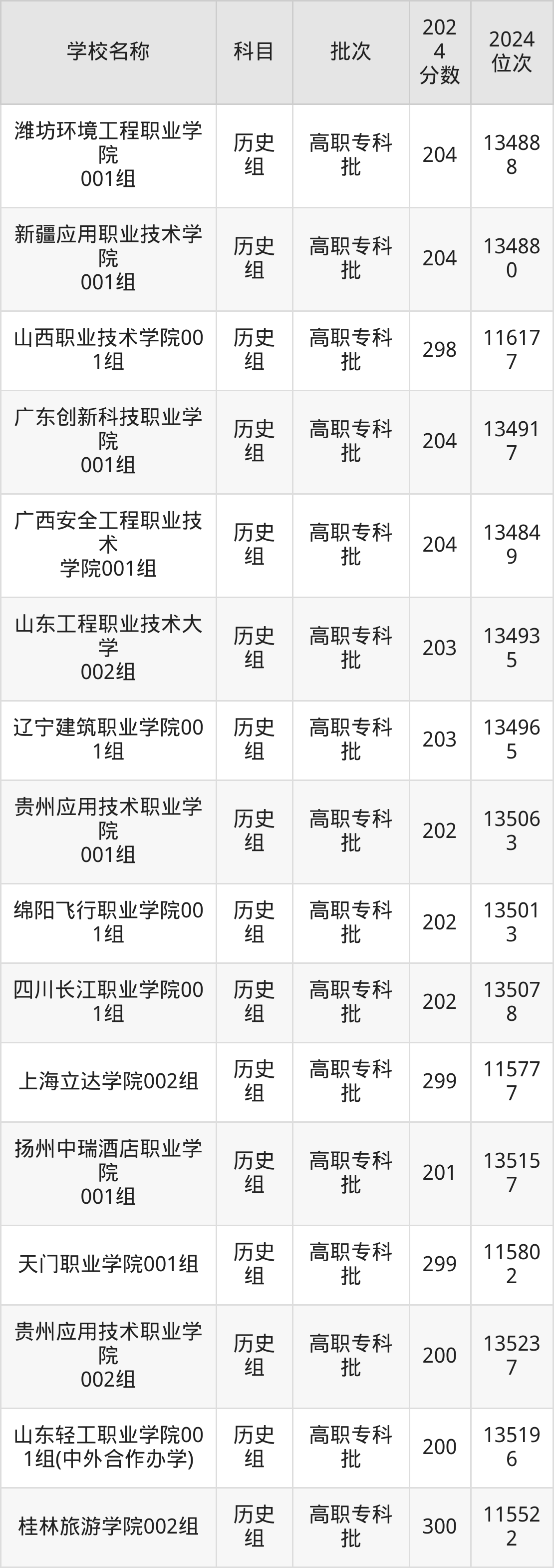 安徽高考历史组共有202所理科大学在200到300分之间录取,包含桂林旅游学院、天门职业学院、上海立达学院、山西职业技术学院、云南交通运输职业学院、秦皇岛职业技术学院、淮南职业技术学院、陕西财经职业技术学院、广西金融职业技术学院、辽宁现代服务职业技术学院。