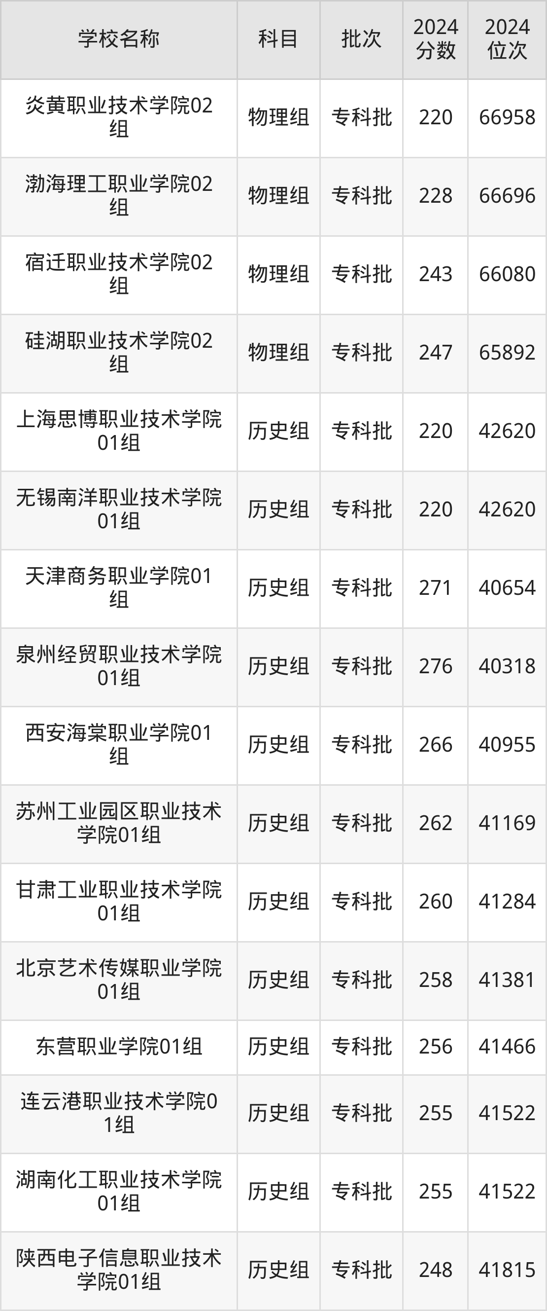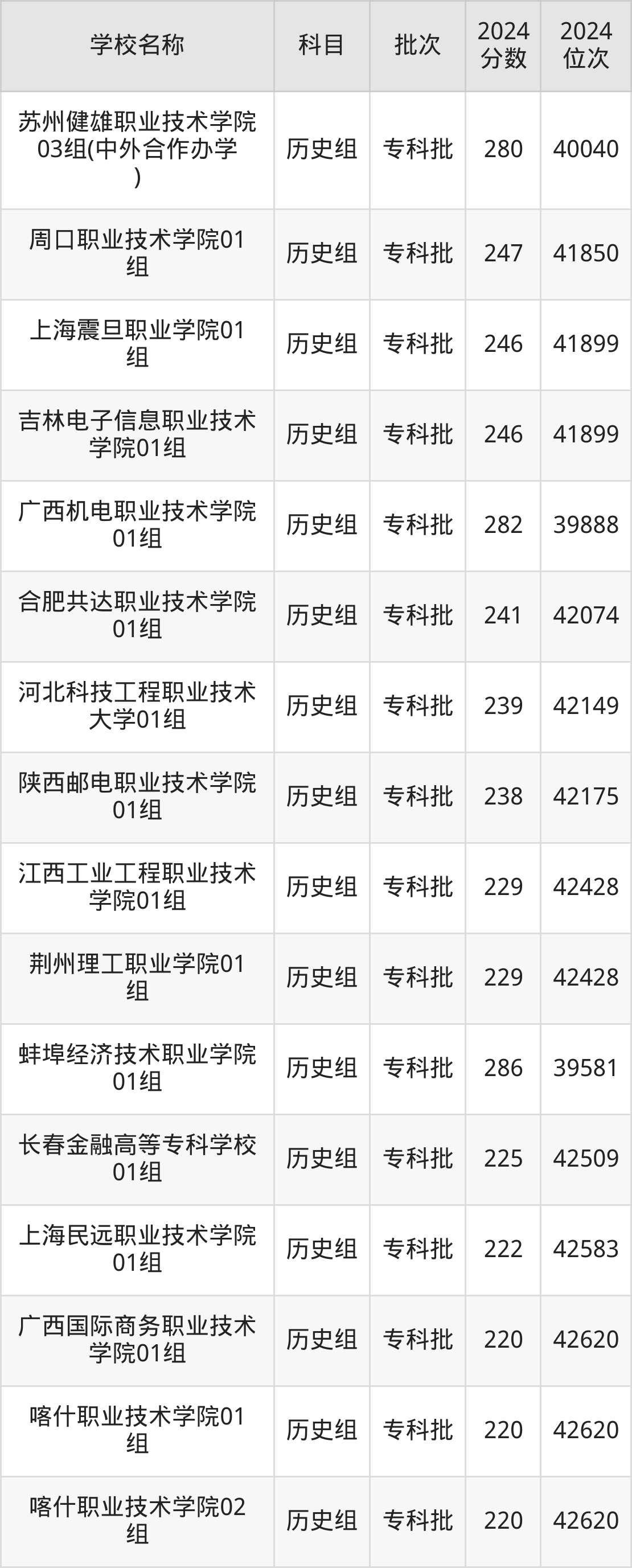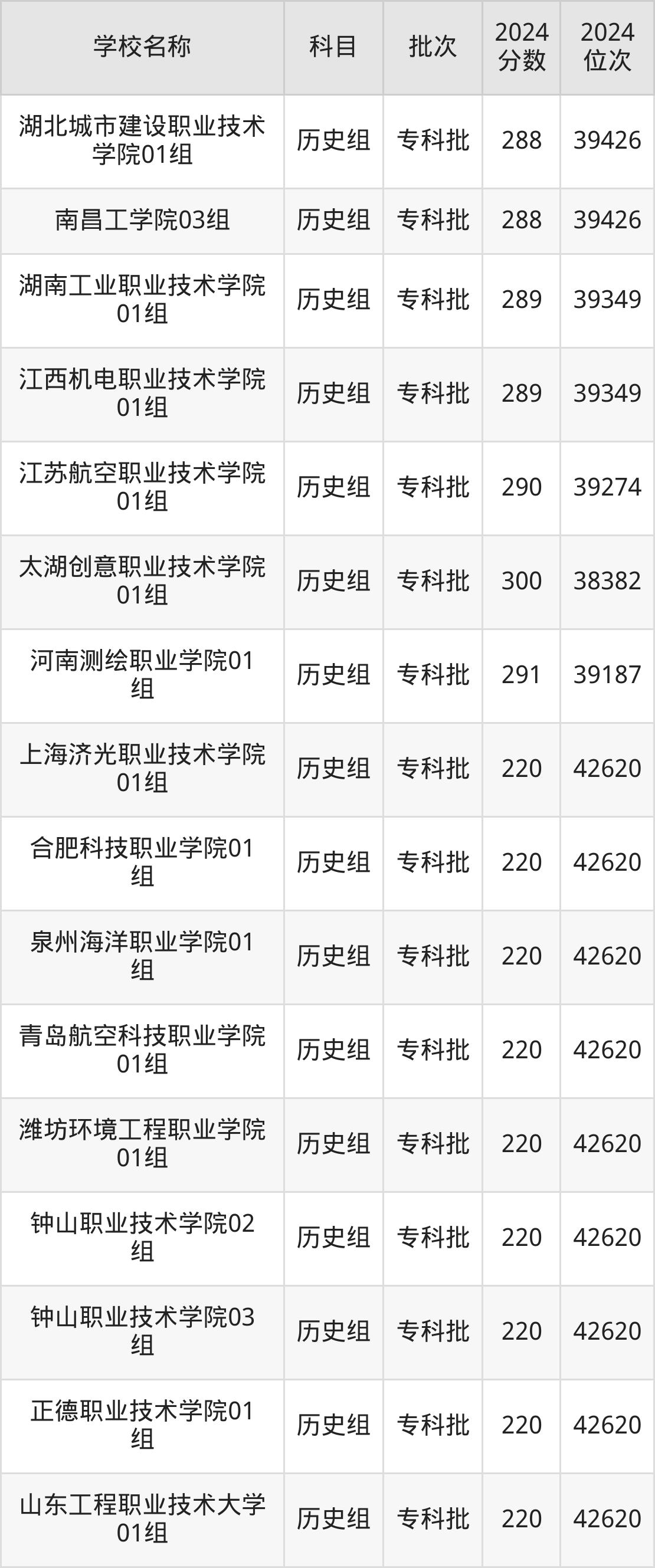 江苏高考历史组共有89所理科大学在200到300分之间录取,包含太湖创意职业技术学院、江西建设职业技术学院、湖南城建职业技术学院、陕西能源职业技术学院、河南工业贸易职业学院、山东胜利职业学院、河南测绘职业学院、江苏航空职业技术学院、江西机电职业技术学院、湖南工业职业技术学院。