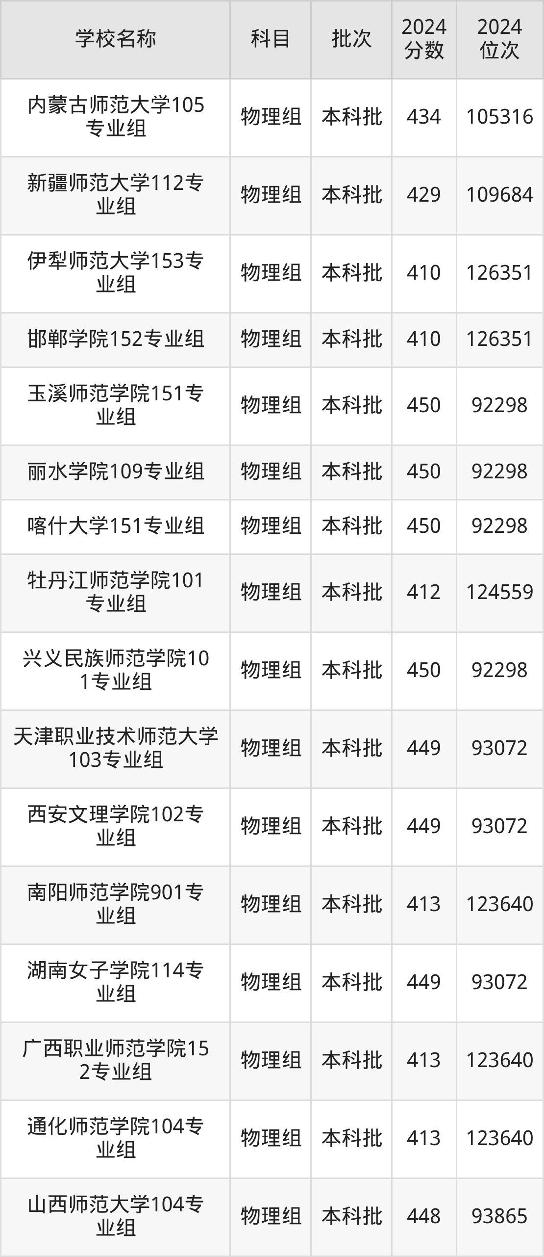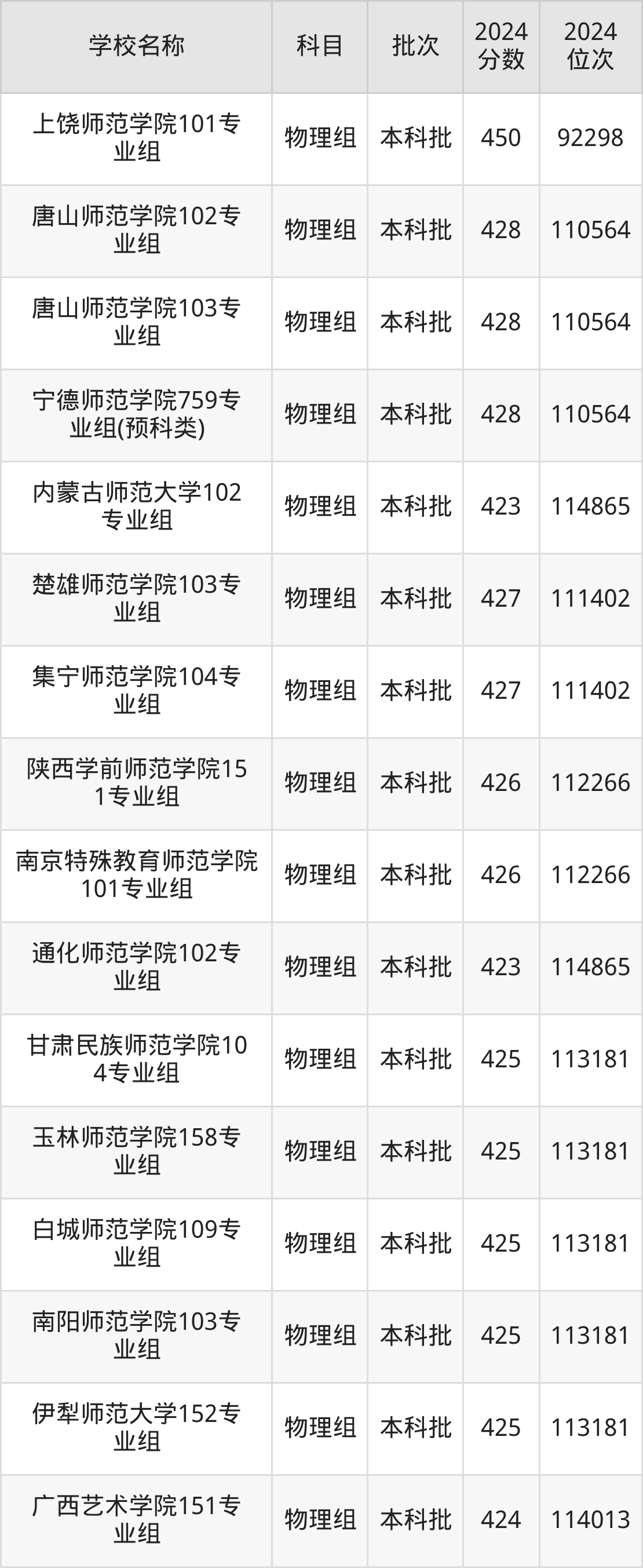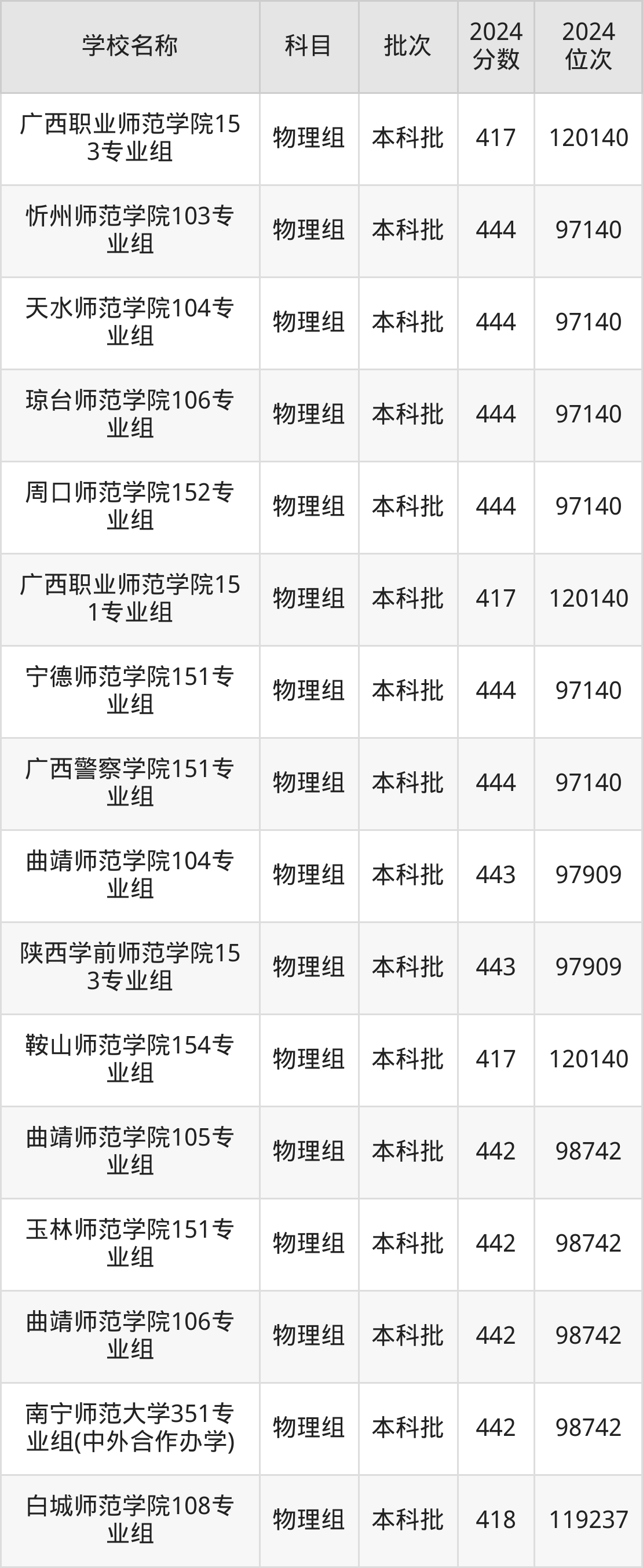 广西高考物理组共有69所文科大学在410到450分之间录取,包含上饶师范学院、玉溪师范学院、丽水学院、喀什大学、兴义民族师范学院、天津职业技术师范大学、西安文理学院、湖南女子学院、山西师范大学、淮南师范学院。