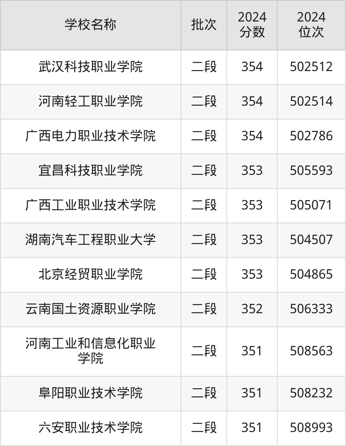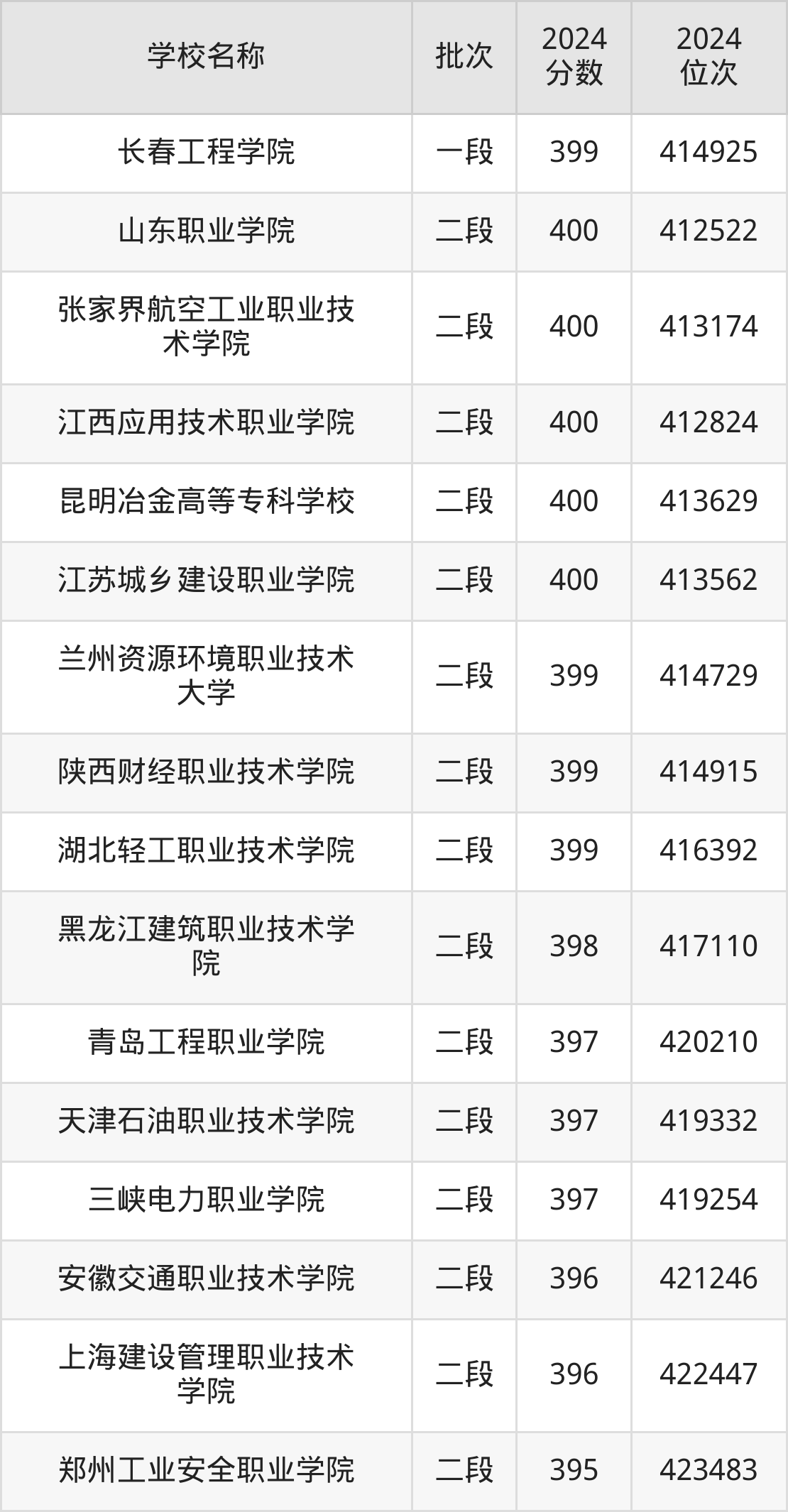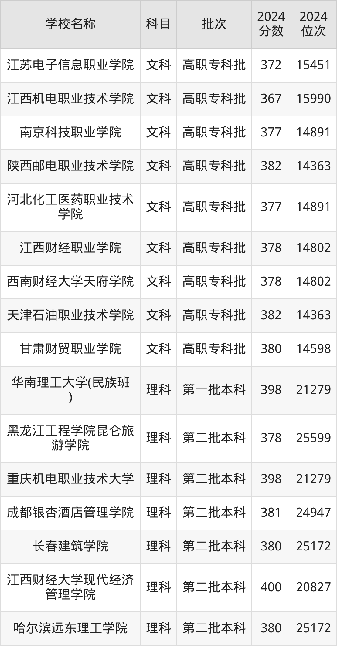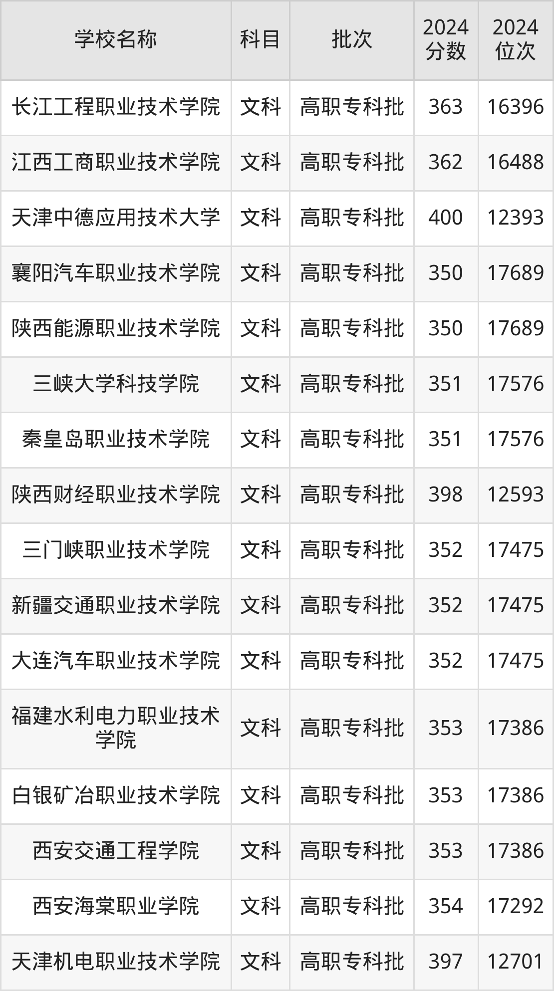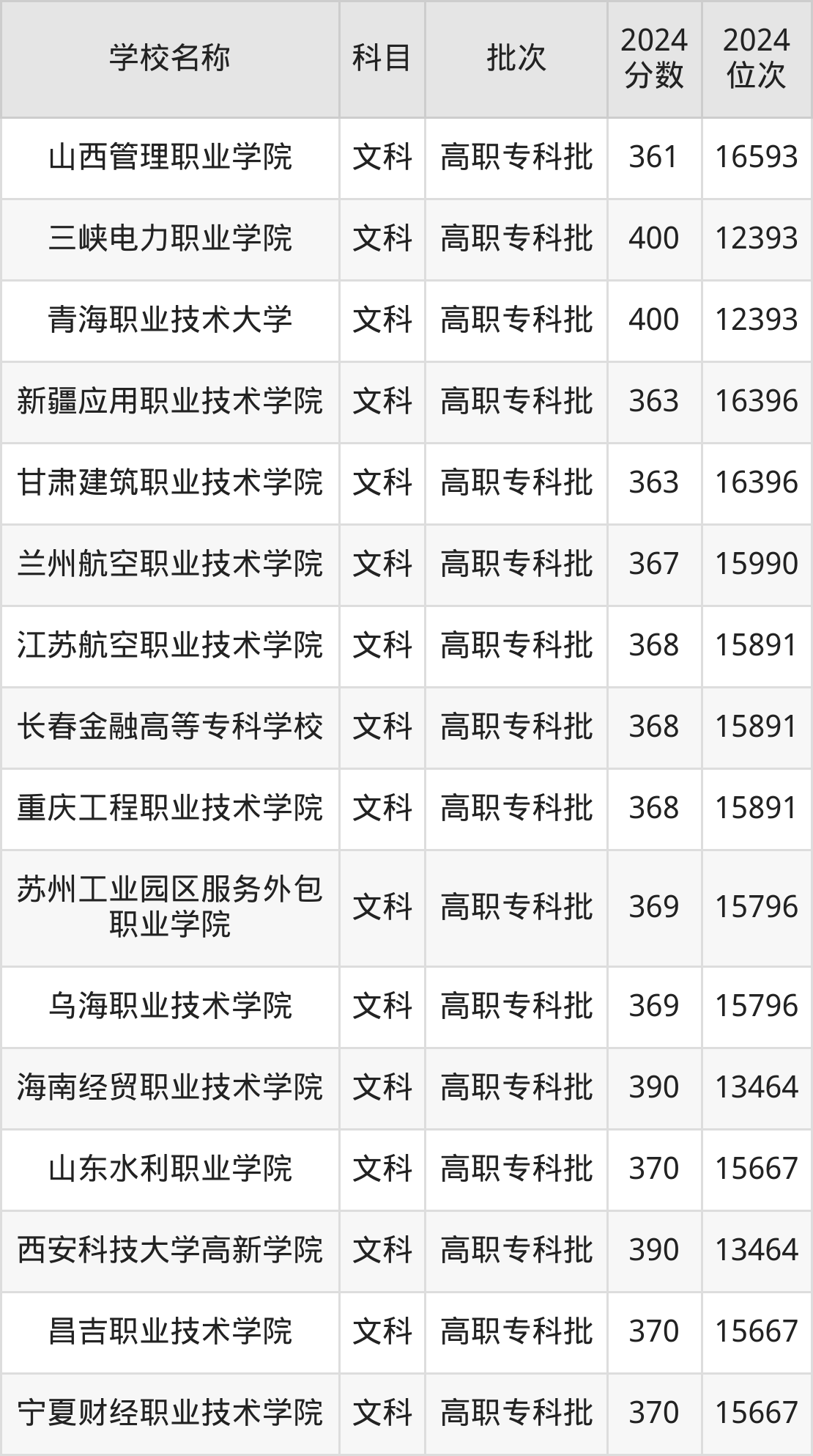 宁夏高考文科共有73所理科大学在350到400分之间录取,包含青海职业技术大学、三峡电力职业学院、天津中德应用技术大学、陕西财经职业技术学院、天津机电职业技术学院、江西应用技术职业学院、西安航空职业技术学院、兰州石化职业技术大学、湖北水利水电职业技术学院、重庆水利电力职业技术学院。