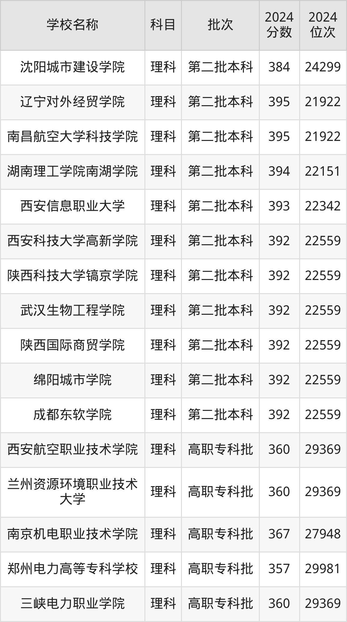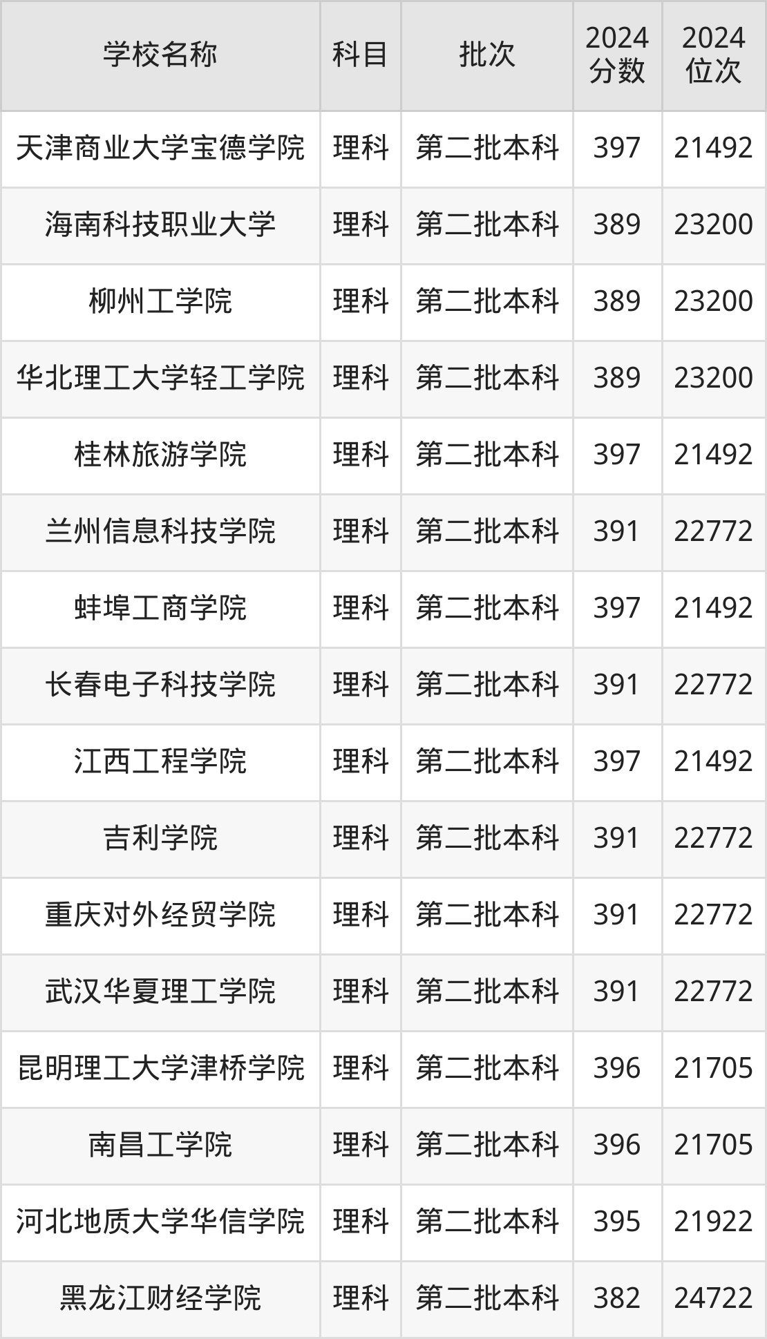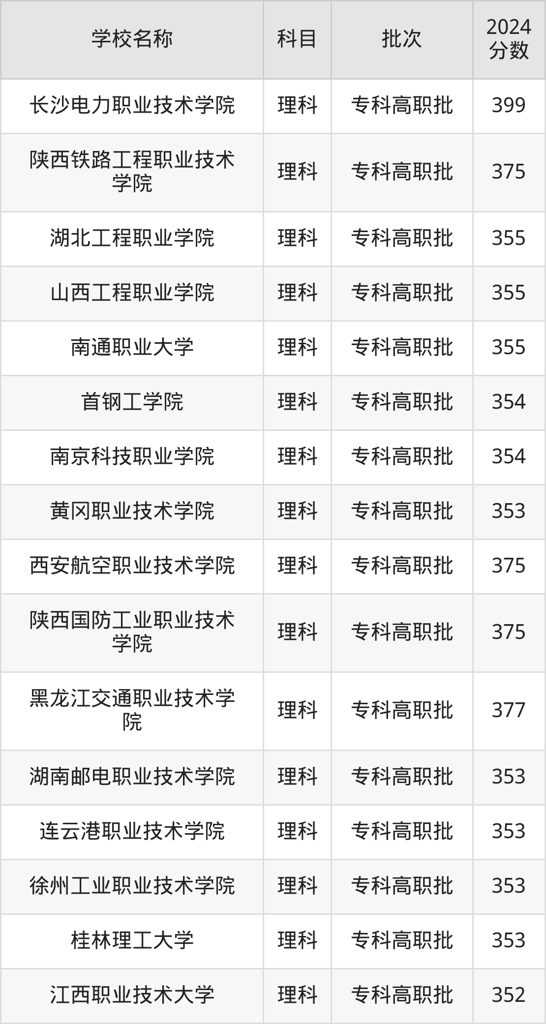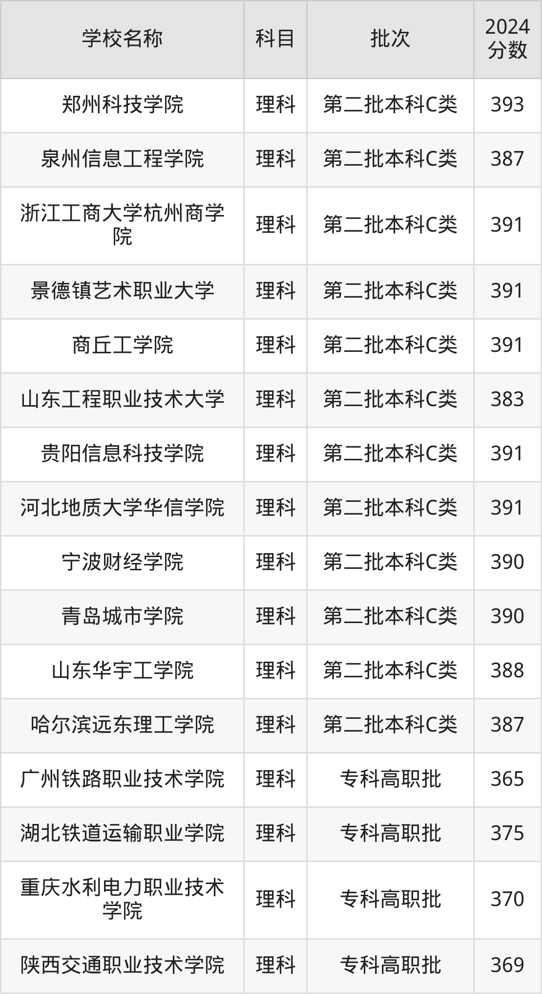一、350到400分的理科大学最低分一览表