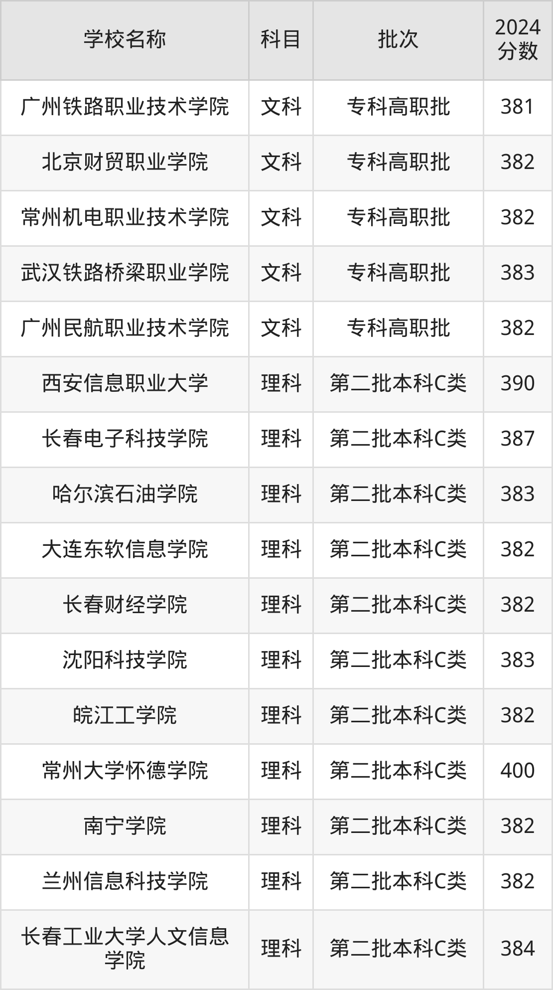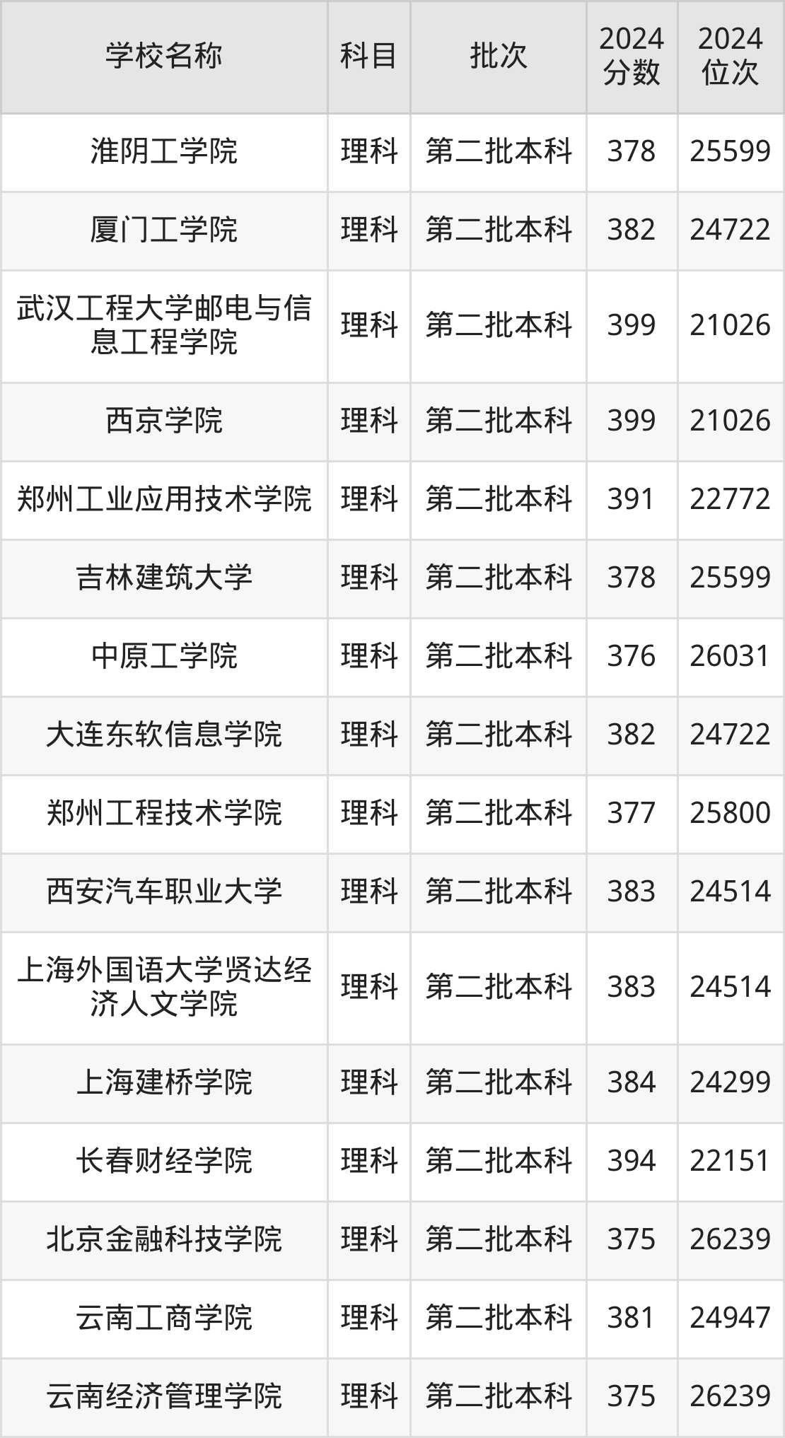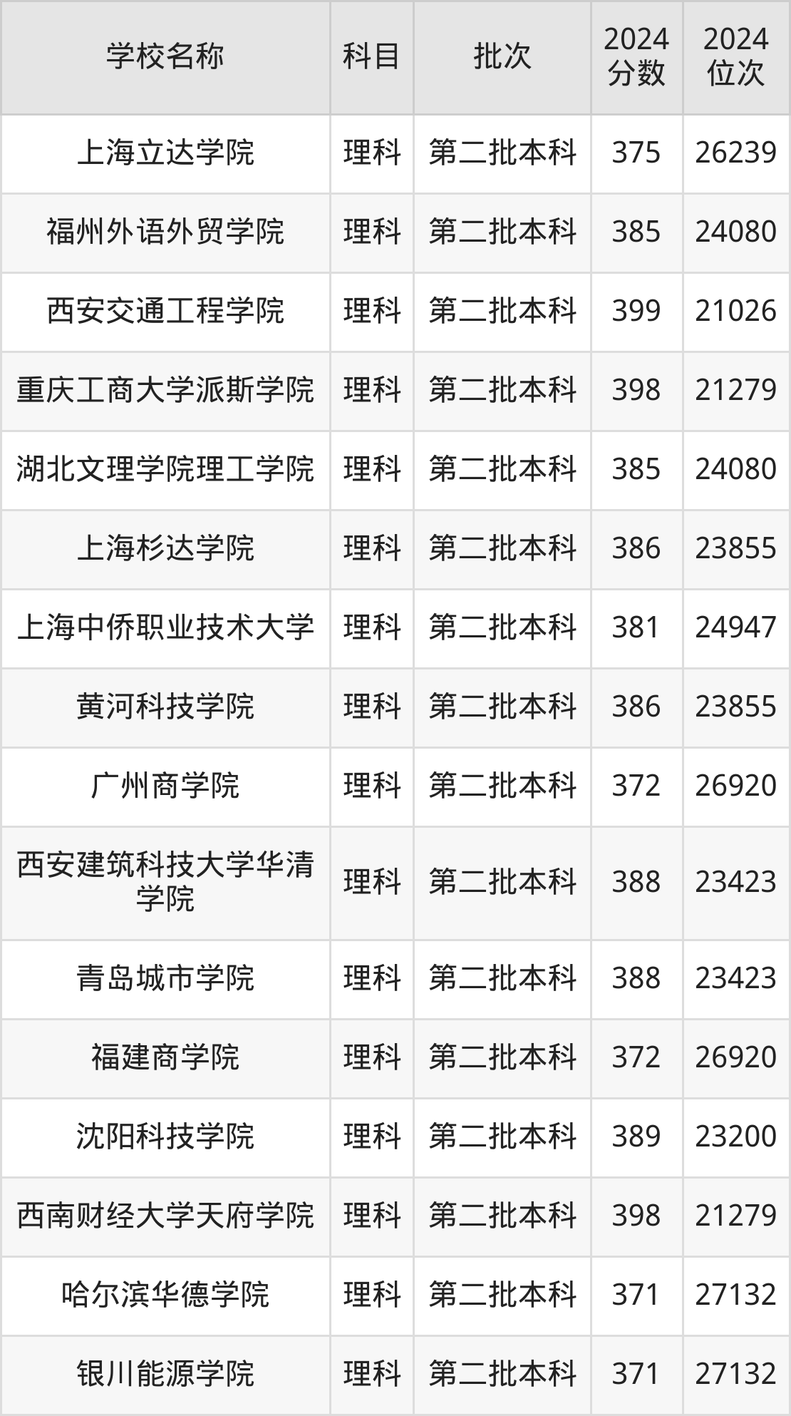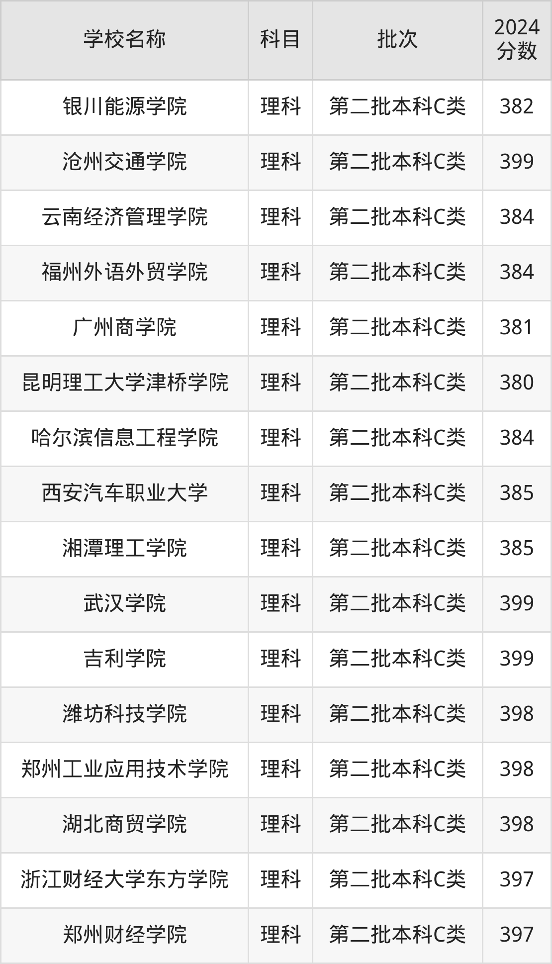 一、350到400分的理科大学最低分一览表