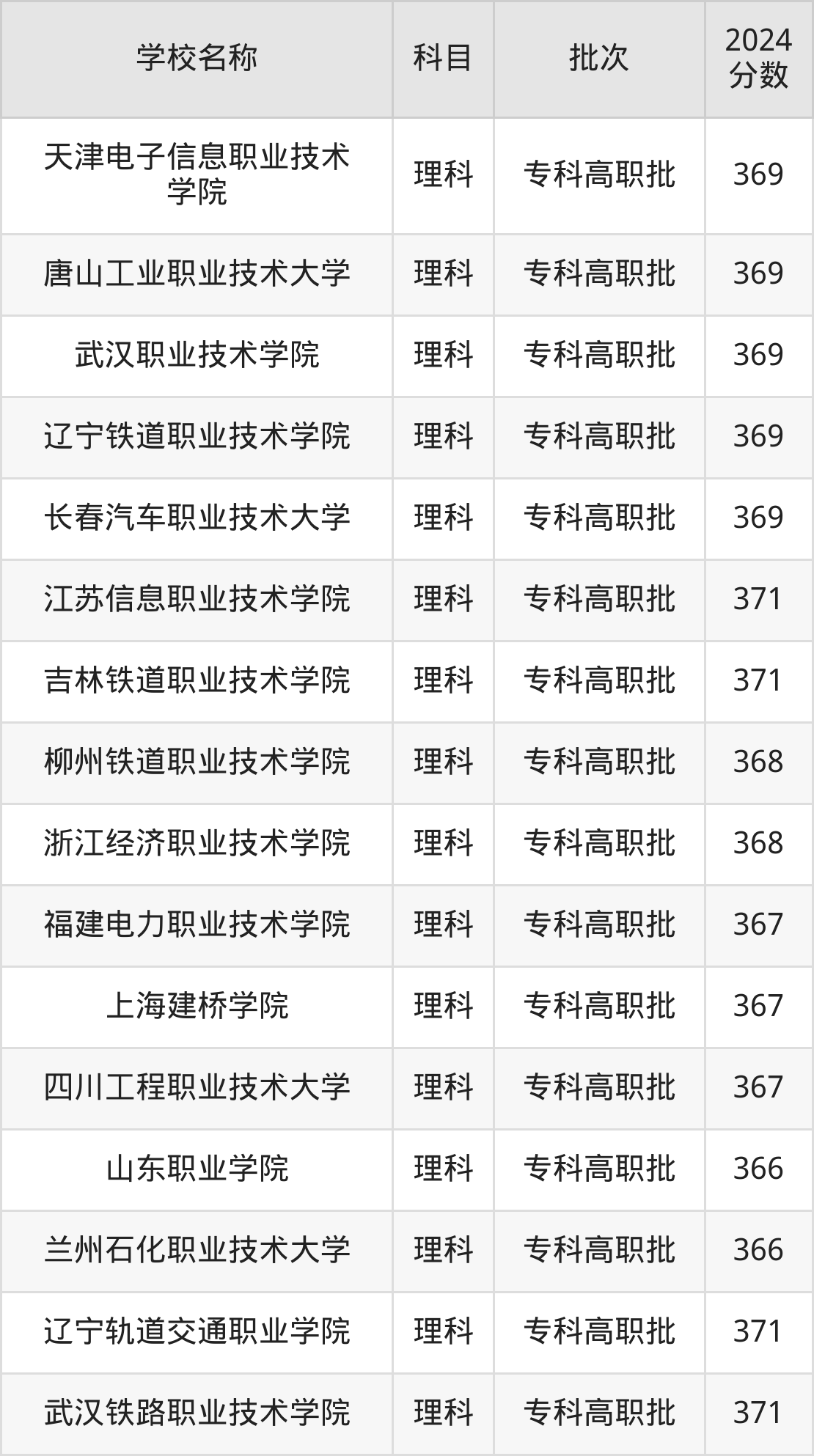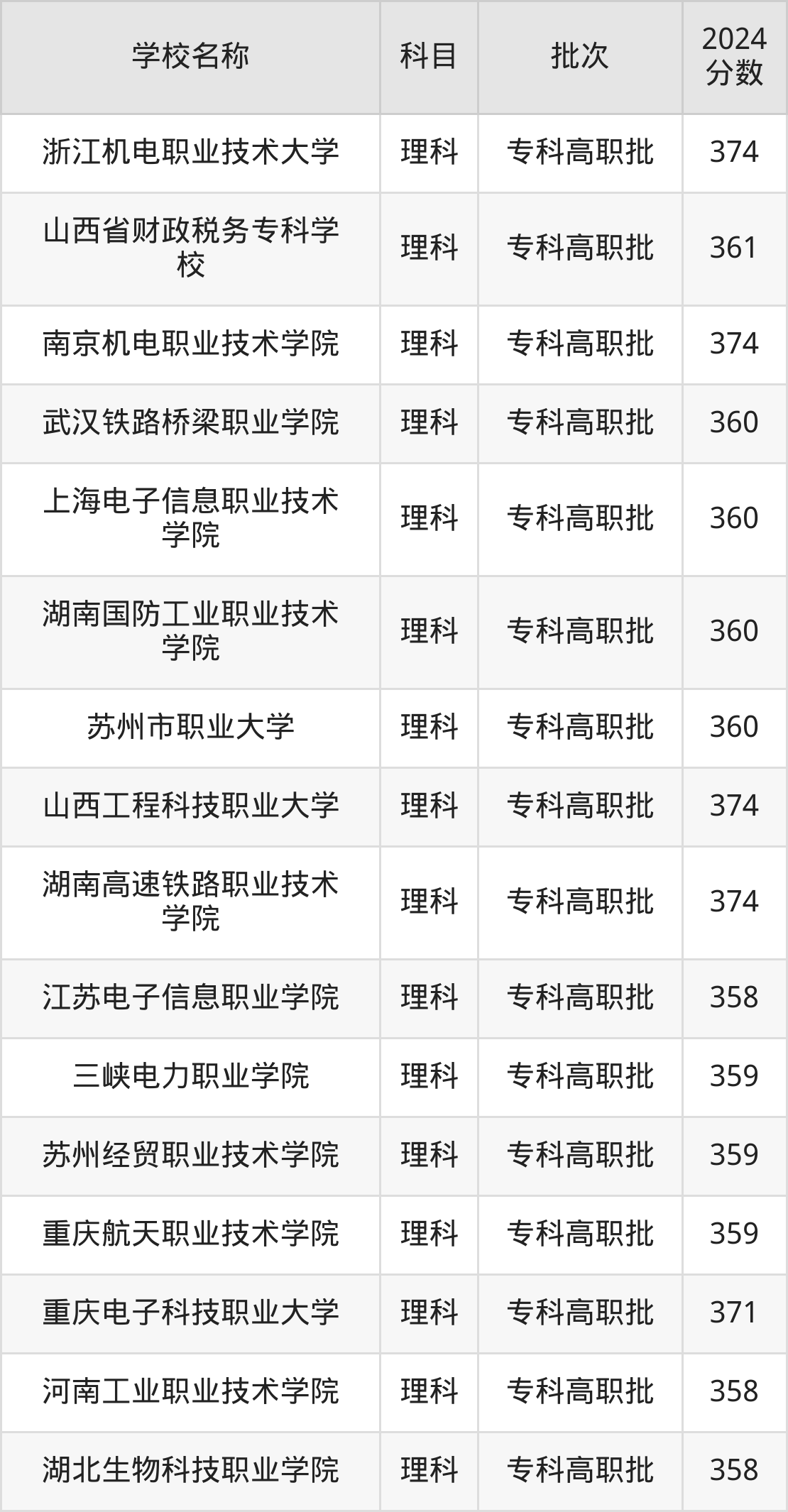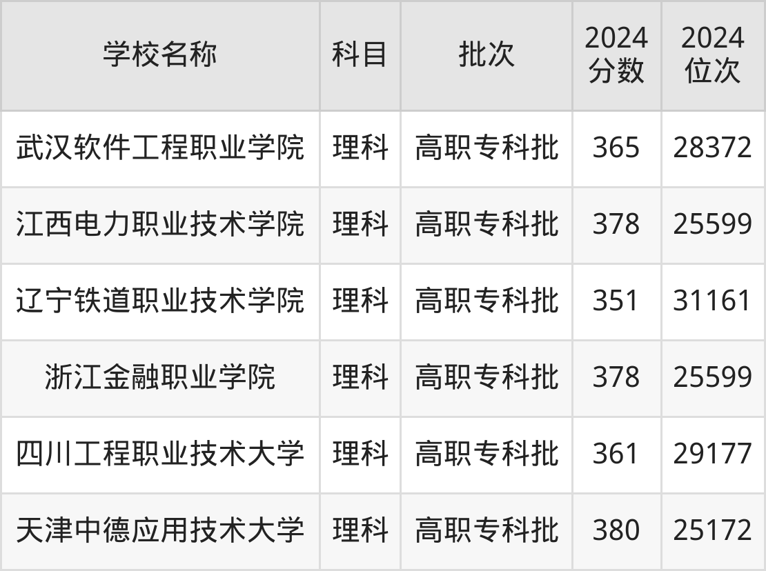 350到400分的理科大学有武汉职业技术学院、河北轨道运输职业技术学院、江苏财会职业学院、江苏食品药品职业技术学院、江苏信息职业技术学院、安徽机电职业技术学院、陕西国防工业职业技术学院、徐州生物工程职业技术学院、上海旅游高等专科学校、苏州工业职业技术学院等。