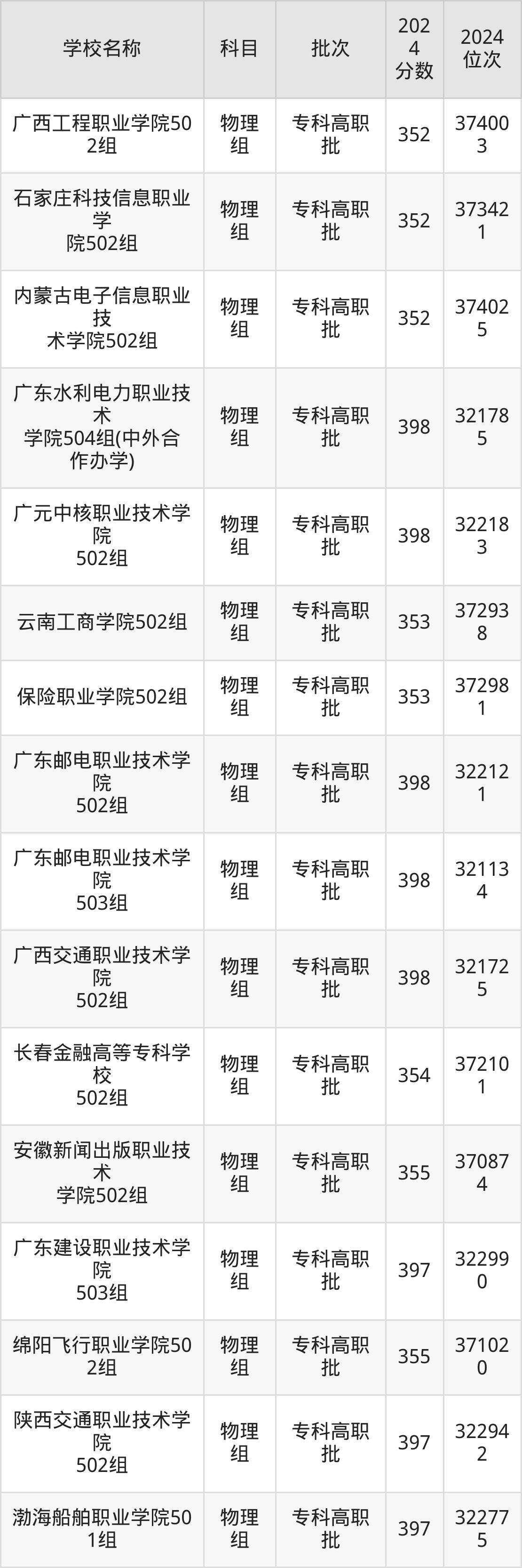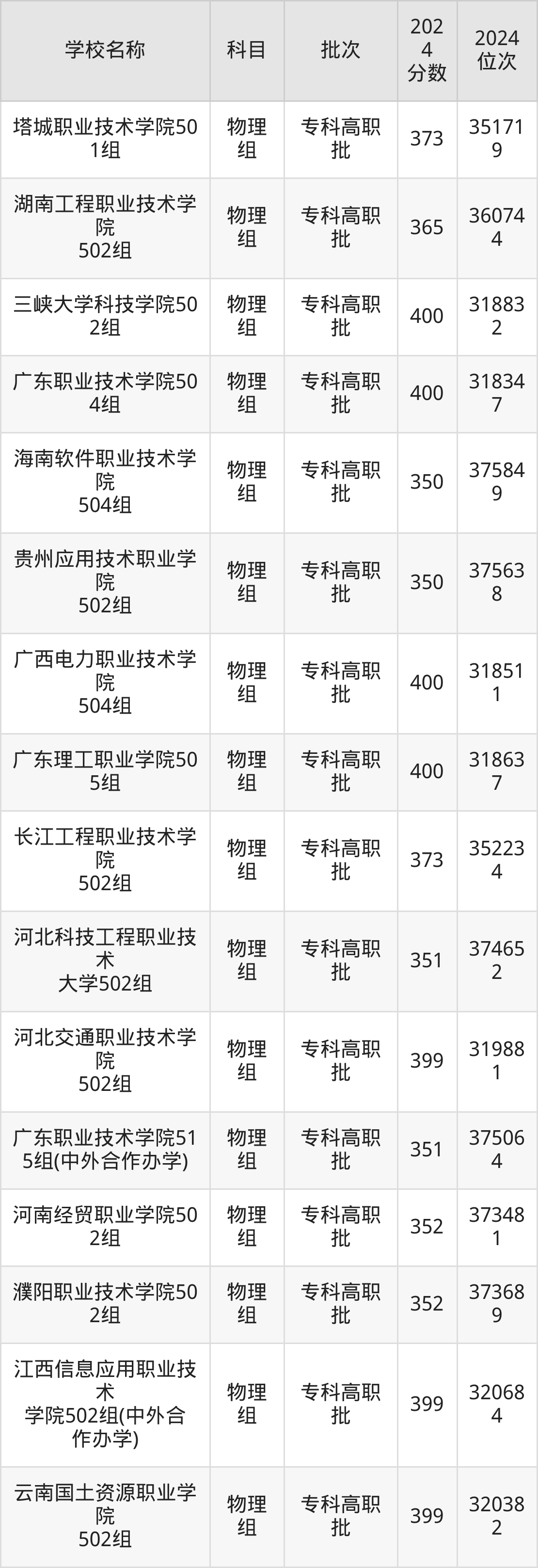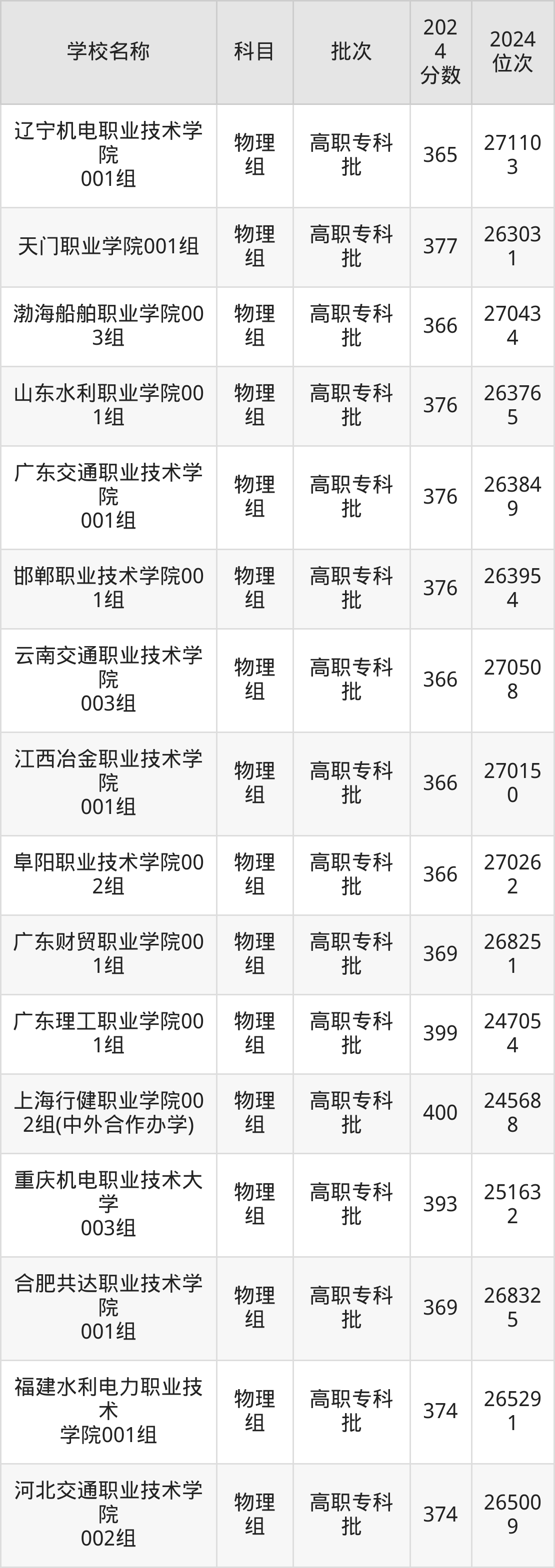 广东高考物理组共有148所理科大学在350到400分之间录取,包含广东交通职业技术学院、三峡大学科技学院、广东职业技术学院、广西电力职业技术学院、广东理工职业学院、湖北铁道运输职业学院、河北交通职业技术学院、江西信息应用职业技术学院、云南国土资源职业学院、广东水利电力职业技术学院。