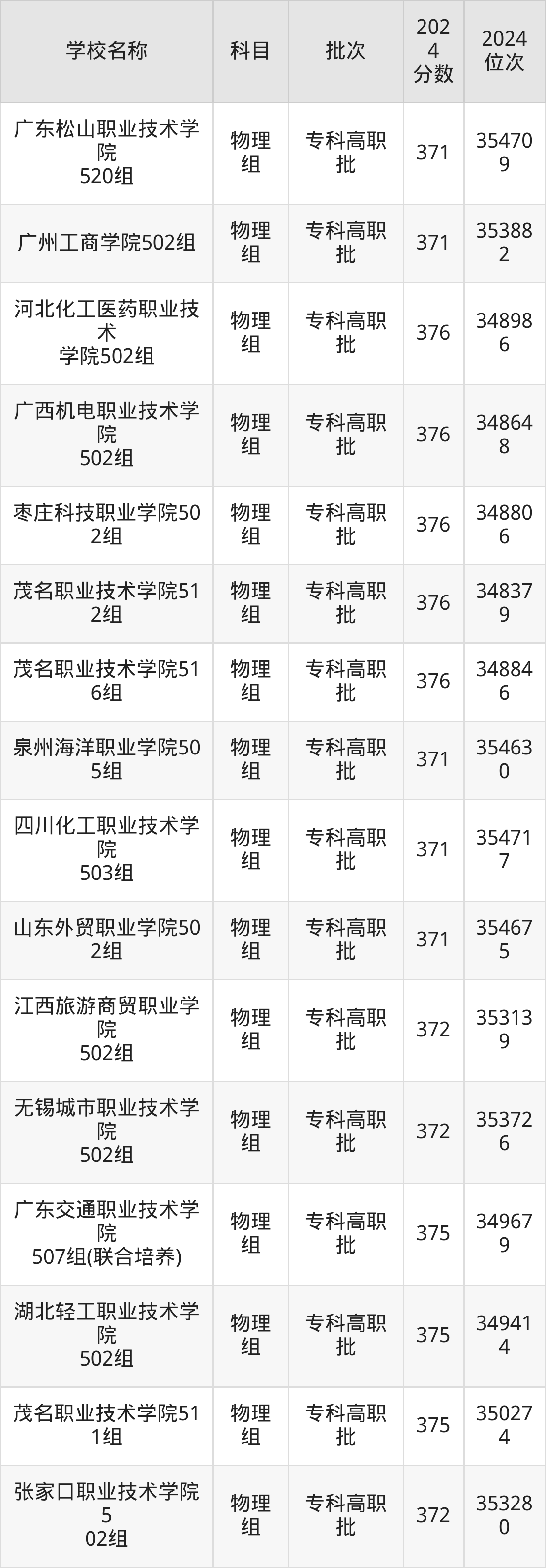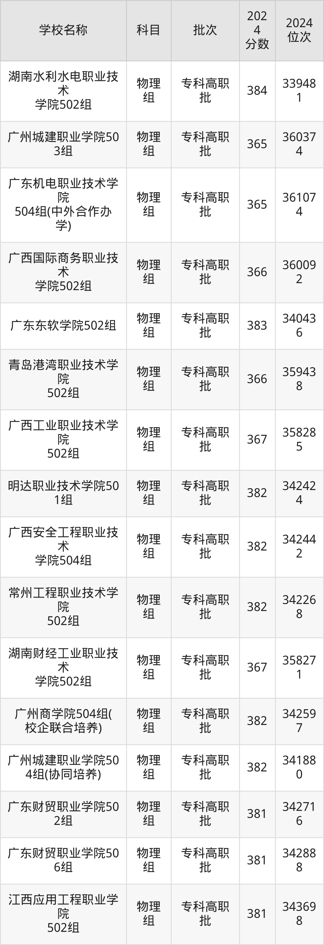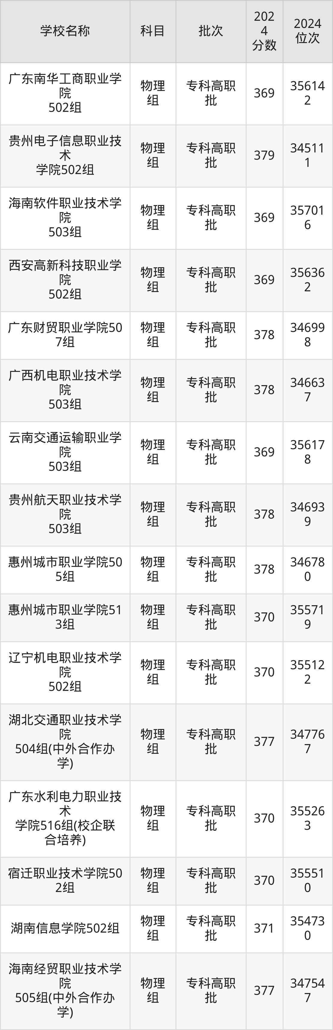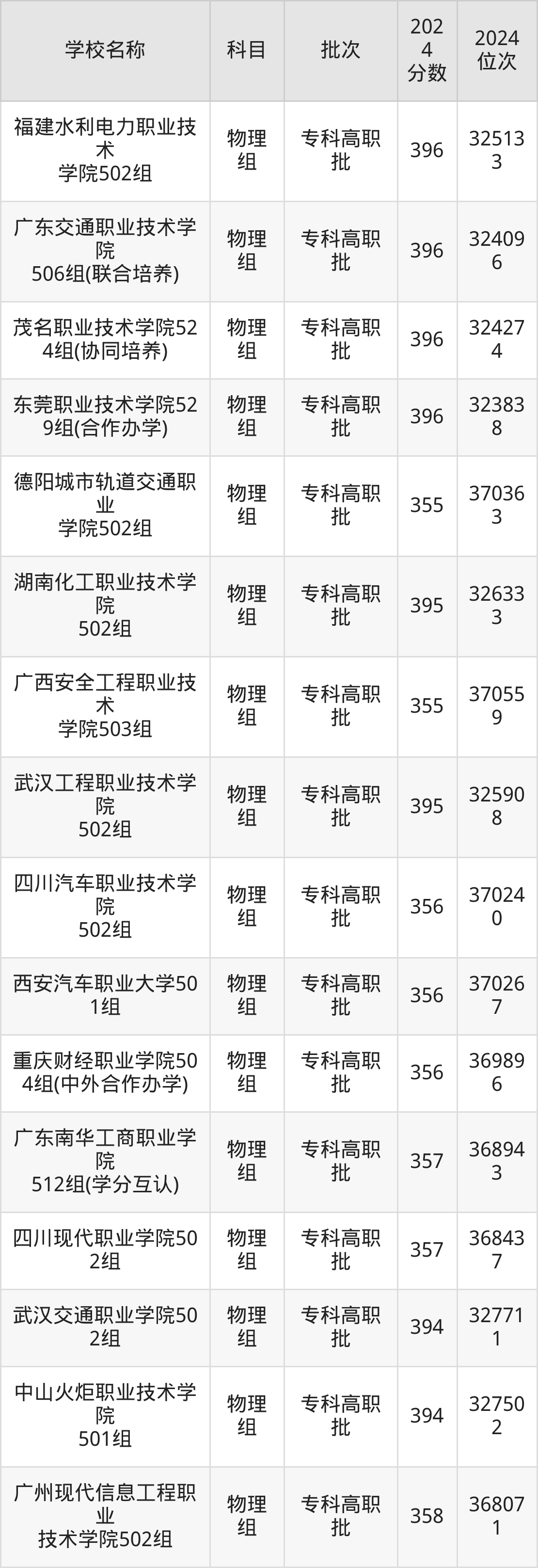广东高考物理组共有148所理科大学在350到400分之间录取,包含广东交通职业技术学院、三峡大学科技学院、广东职业技术学院、广西电力职业技术学院、广东理工职业学院、湖北铁道运输职业学院、河北交通职业技术学院、江西信息应用职业技术学院、云南国土资源职业学院、广东水利电力职业技术学院。