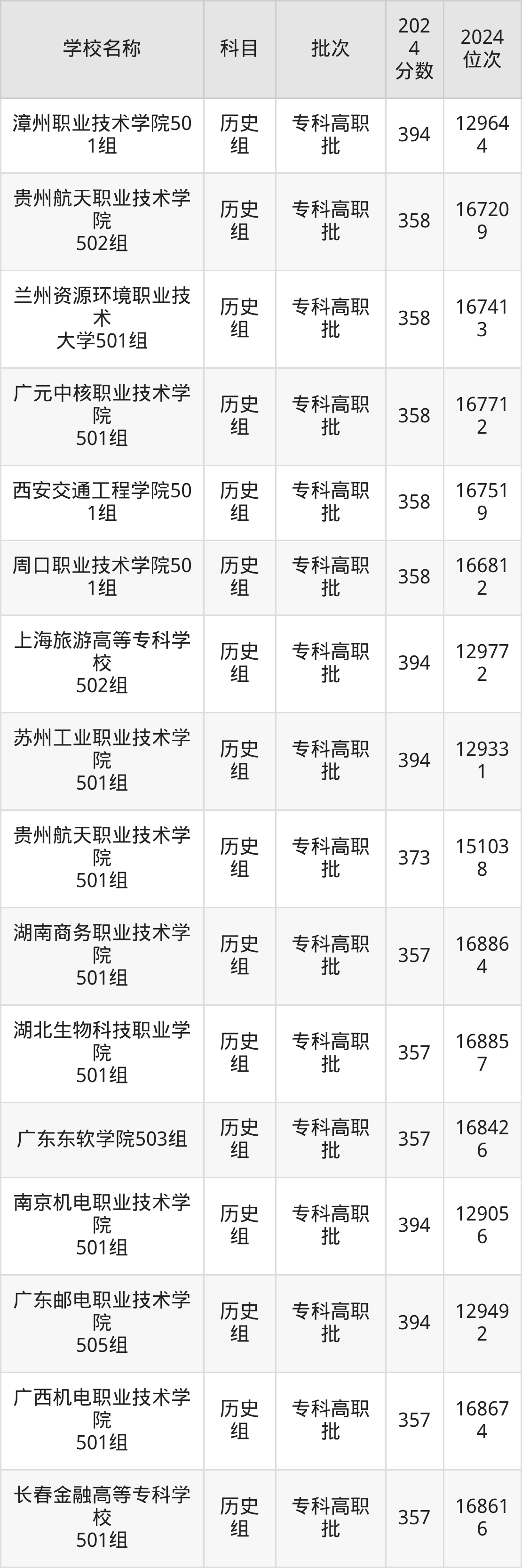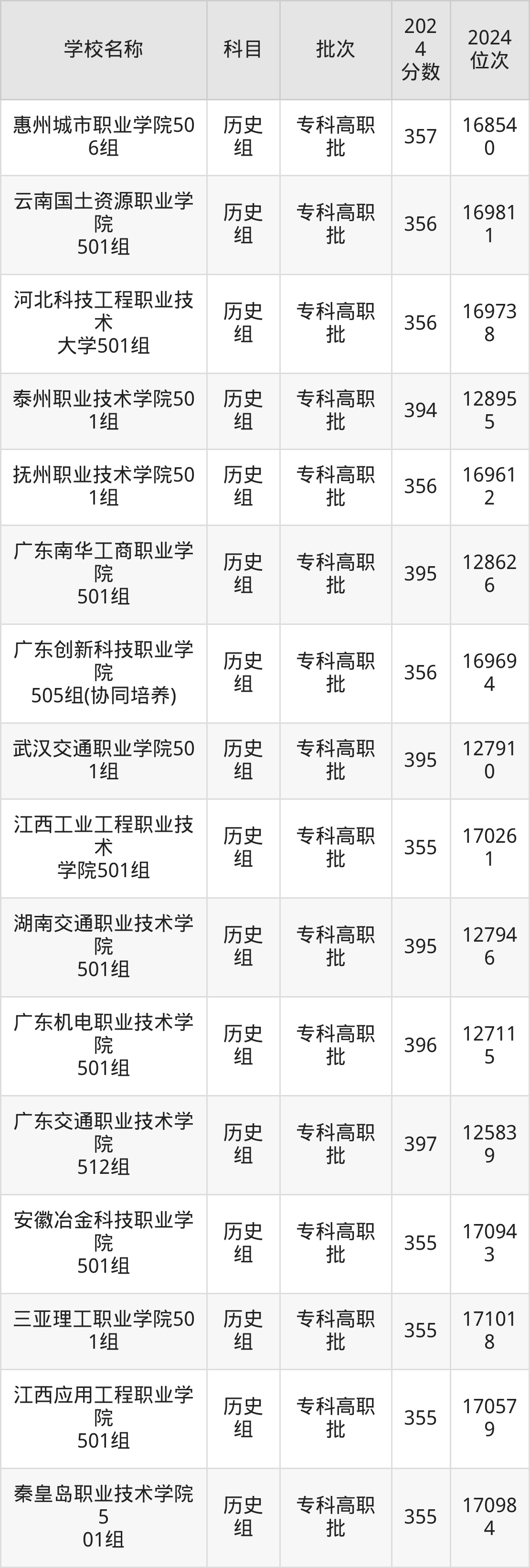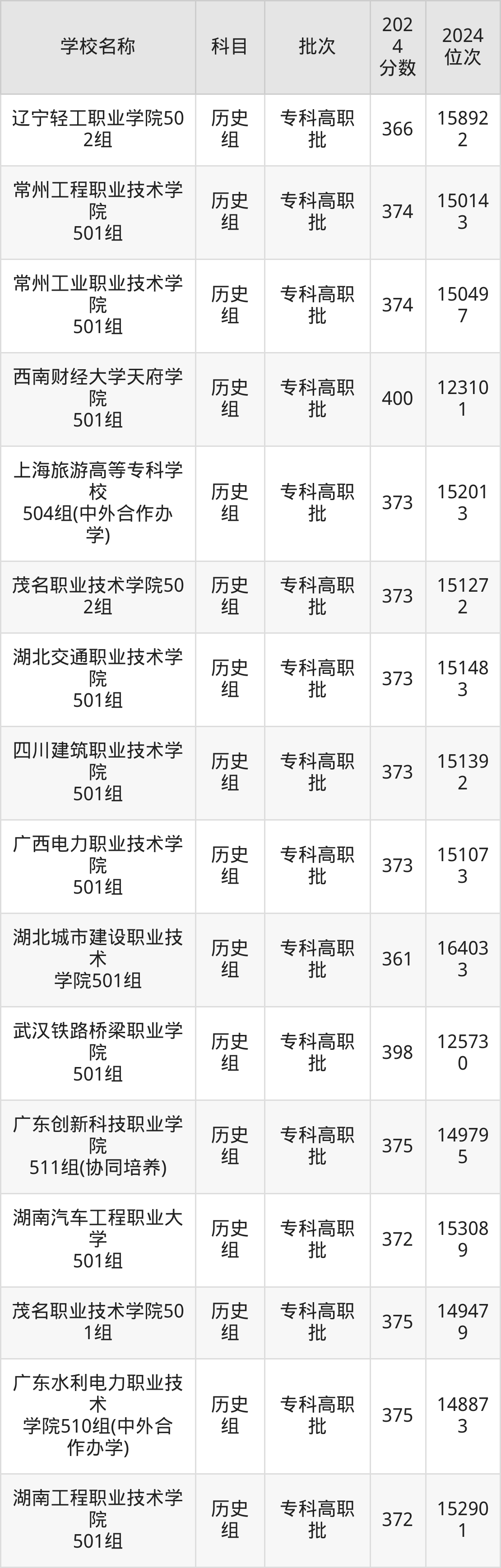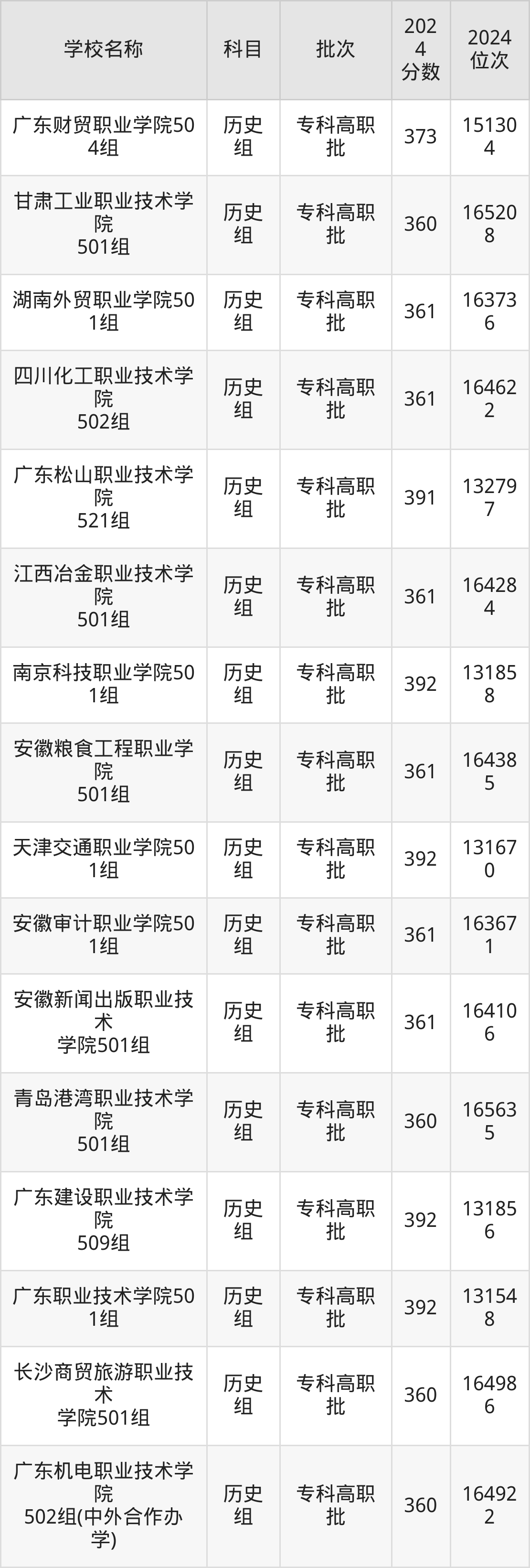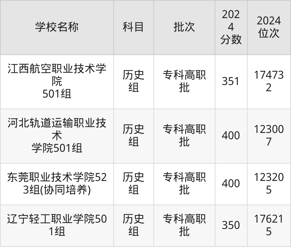 广东高考历史组共有158所理科大学在350到400分之间录取,包含西南财经大学天府学院、东莞职业技术学院、河北轨道运输职业技术学院、山东职业学院、兰州石化职业技术大学、江苏信息职业技术学院、镇江市高等专科学校、哈尔滨铁道职业技术学院、江苏航空职业技术学院、武汉铁路桥梁职业学院。