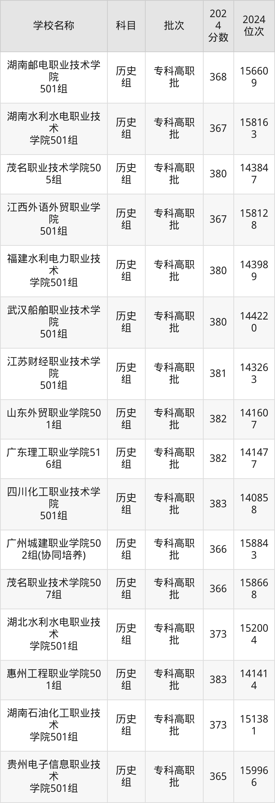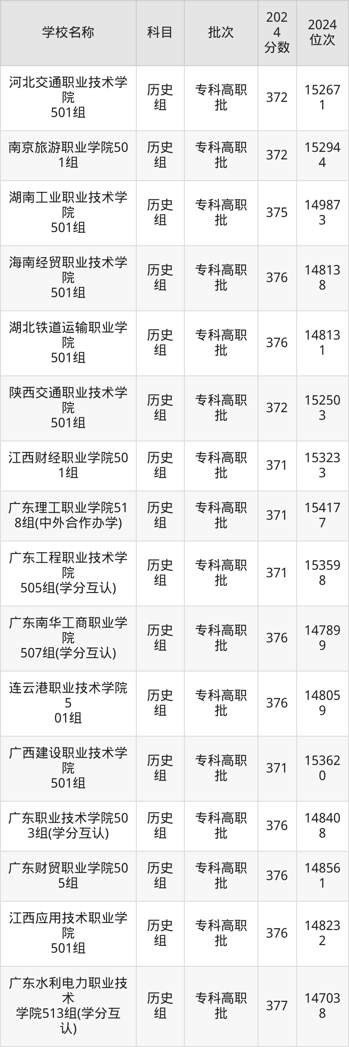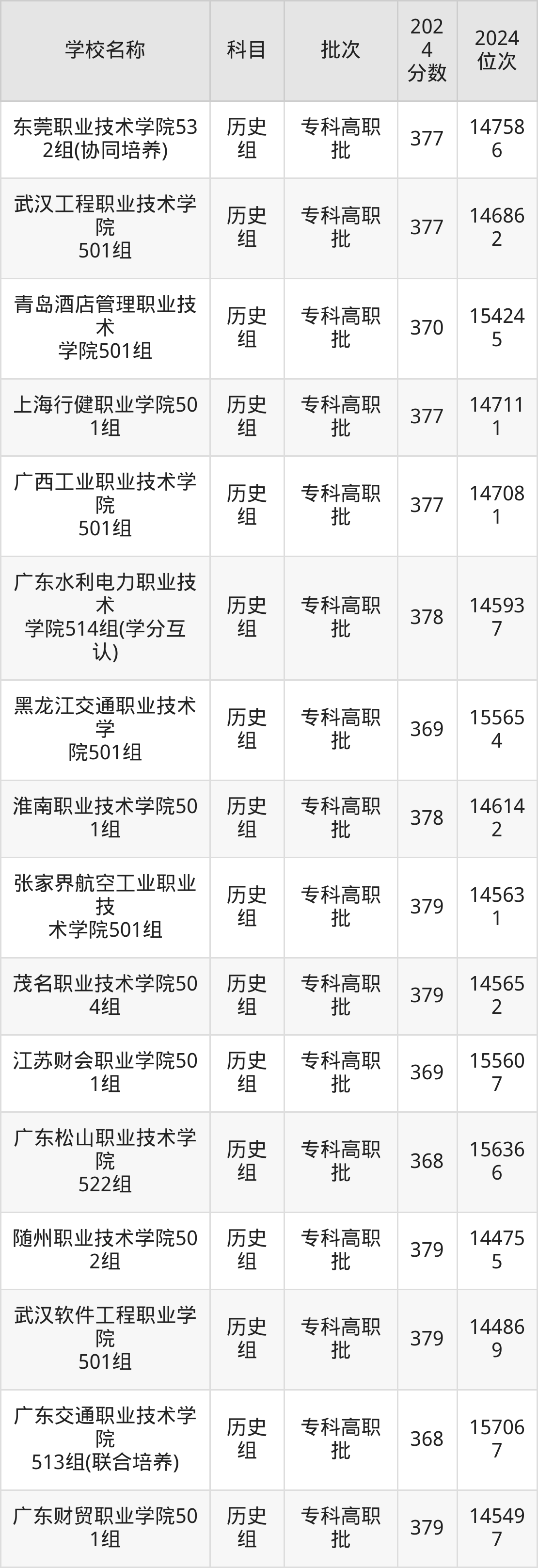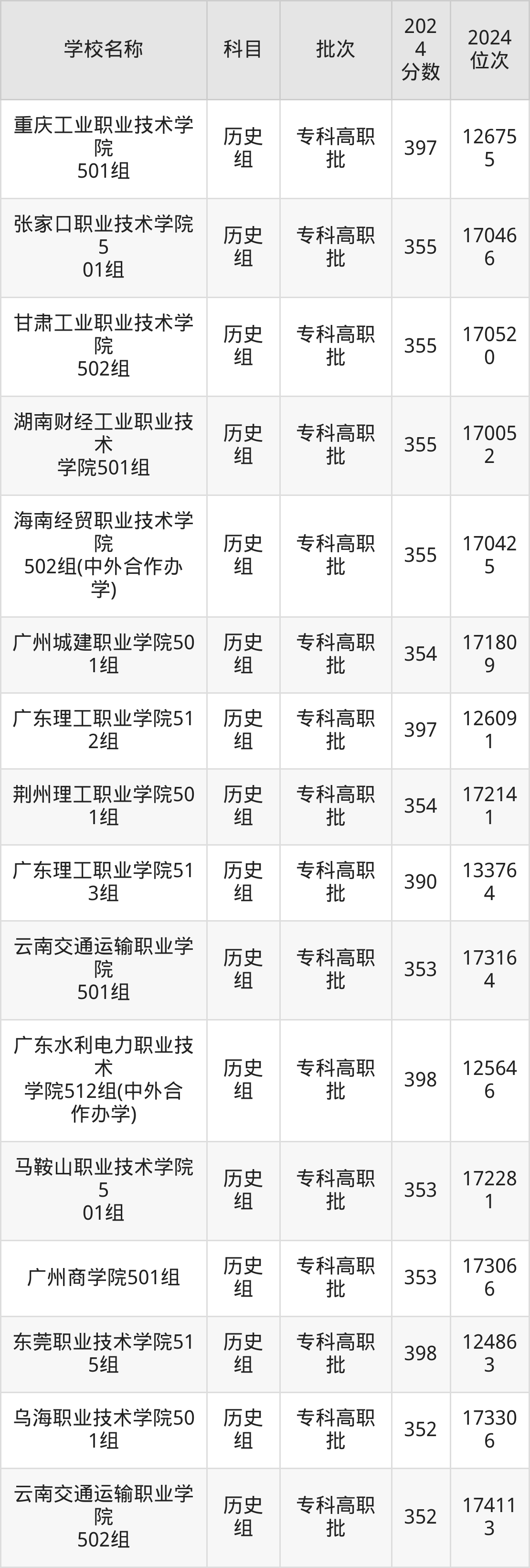 广东高考历史组共有158所理科大学在350到400分之间录取,包含西南财经大学天府学院、东莞职业技术学院、河北轨道运输职业技术学院、山东职业学院、兰州石化职业技术大学、江苏信息职业技术学院、镇江市高等专科学校、哈尔滨铁道职业技术学院、江苏航空职业技术学院、武汉铁路桥梁职业学院。