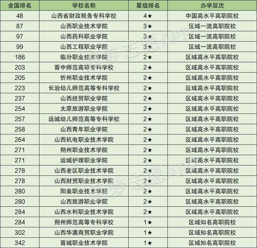 由圆梦志愿APP查得山西省所有专科大学排名如下: