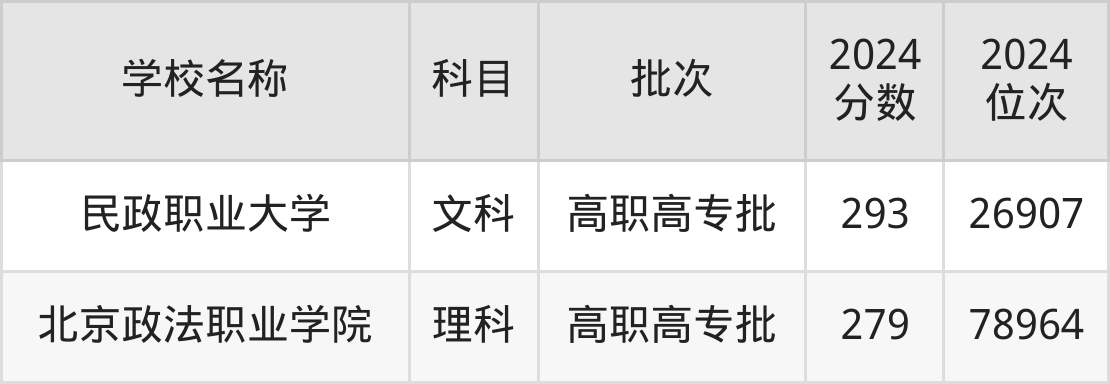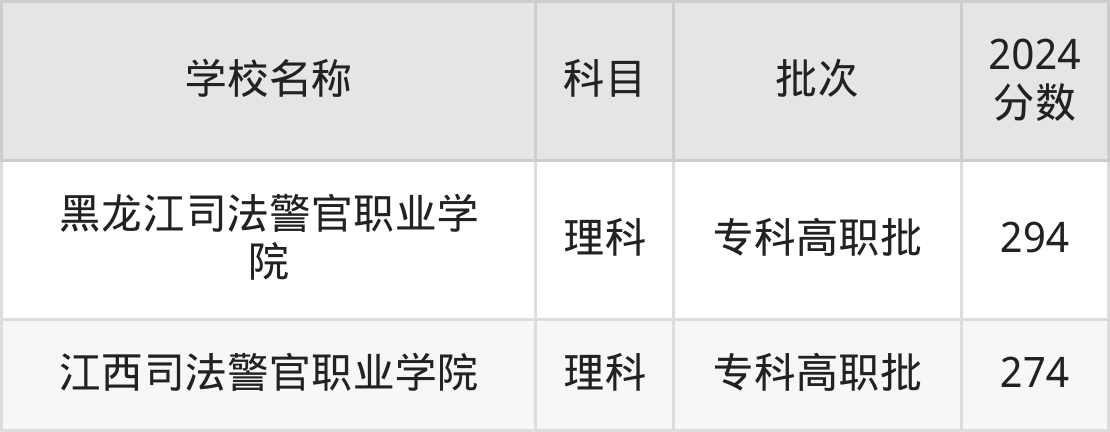 山西高考理科共有2所政法大学在260到300分之间录取,包含黑龙江司法警官职业学院、江西司法警官职业学院。