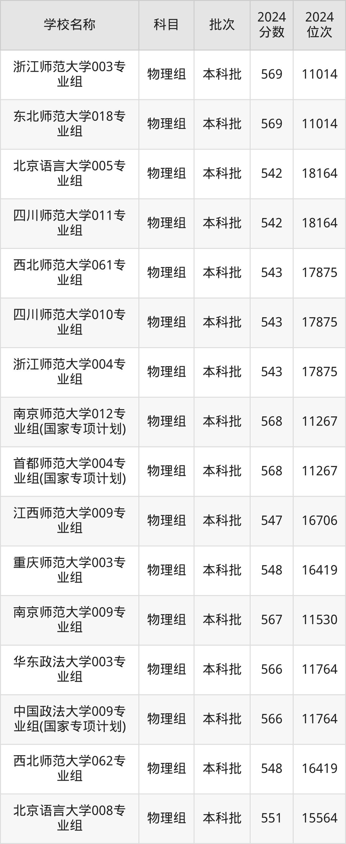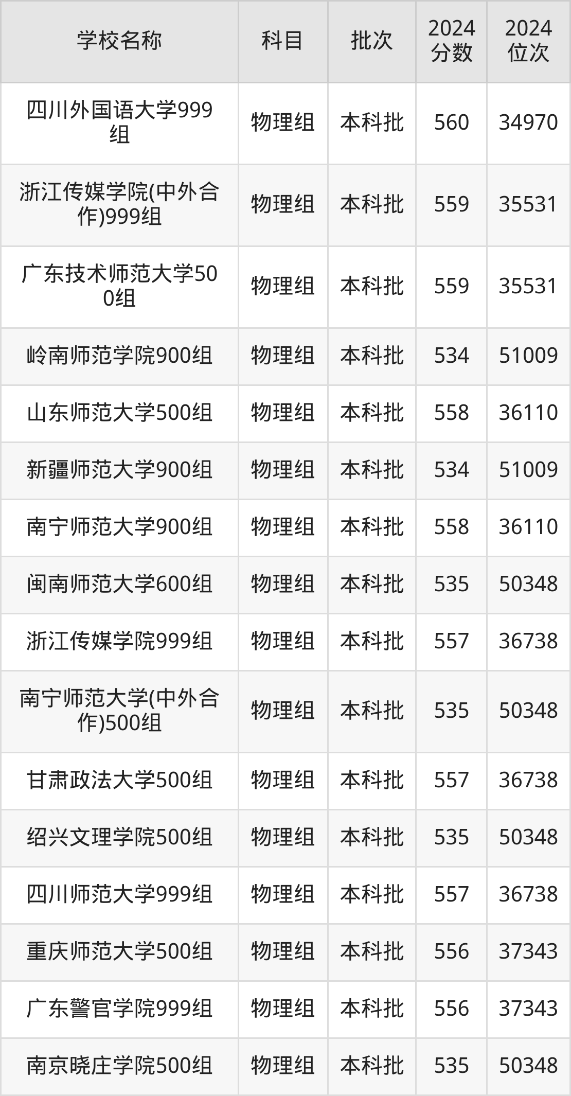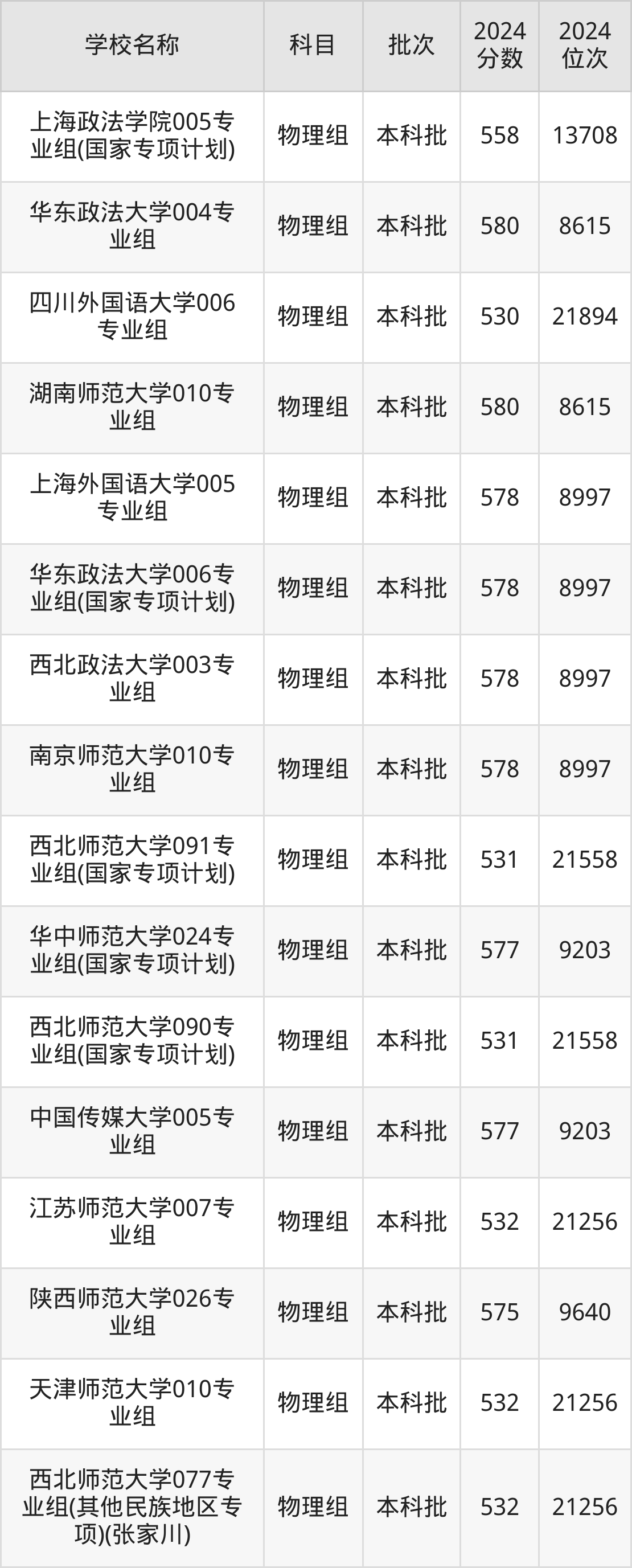 甘肃高考物理组共有27所文科大学在530到580分之间录取,包含华东师范大学、华东政法大学、湖南师范大学、上海外国语大学、西北政法大学、南京师范大学、华中师范大学、中国传媒大学、陕西师范大学、华南师范大学。