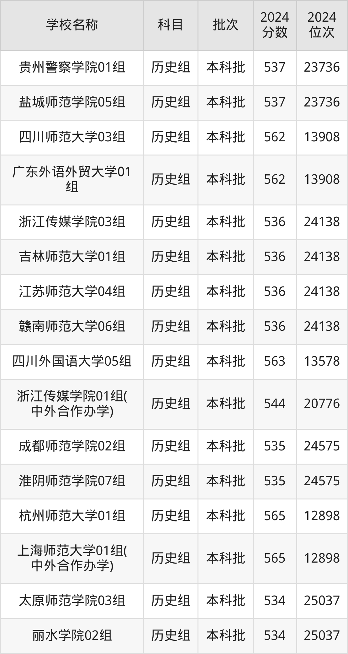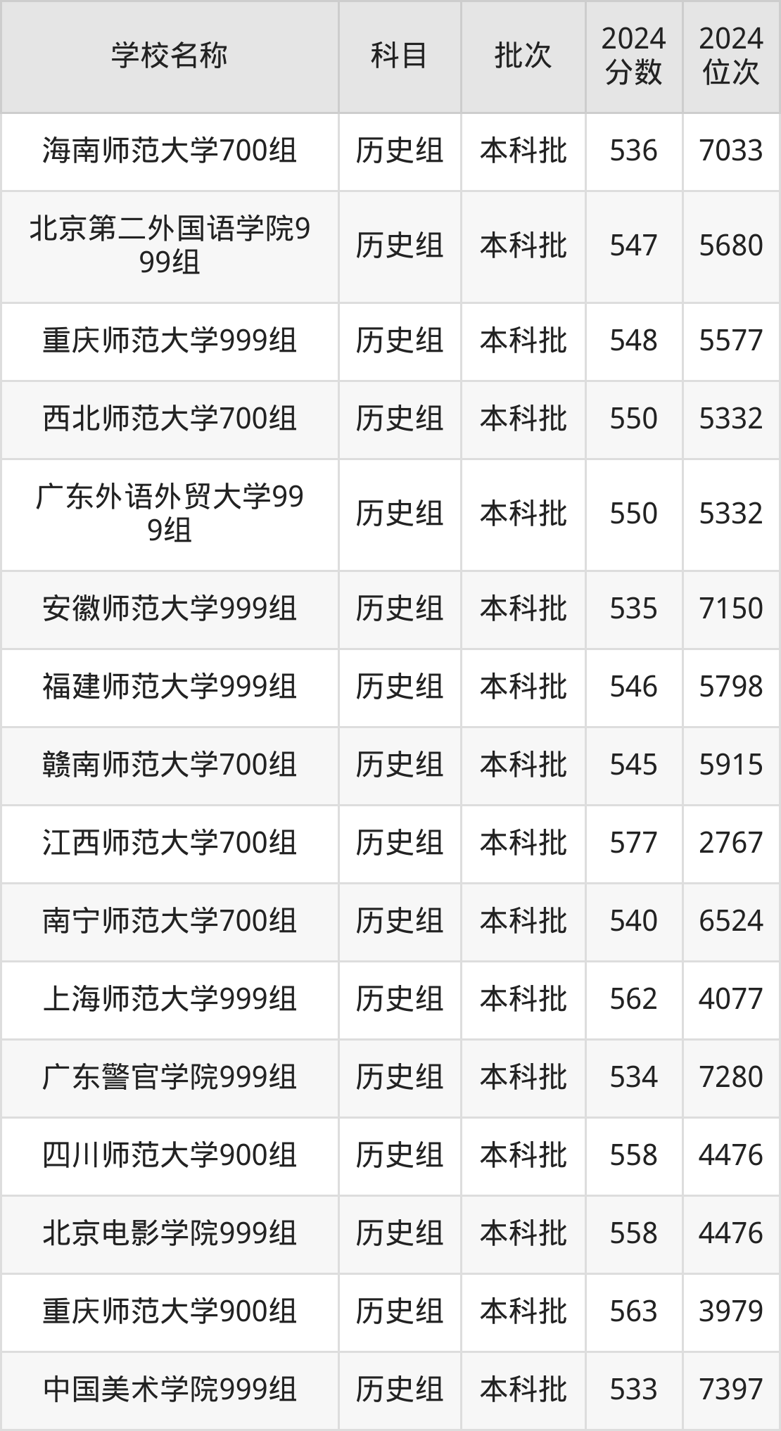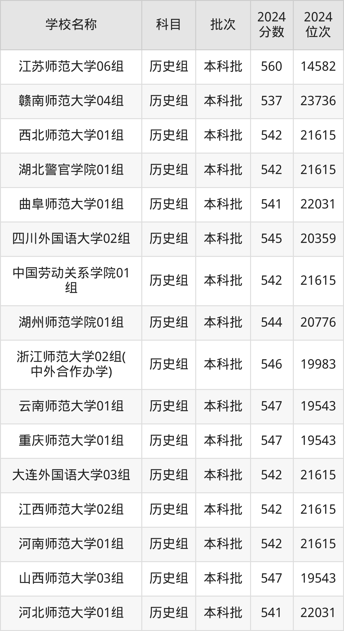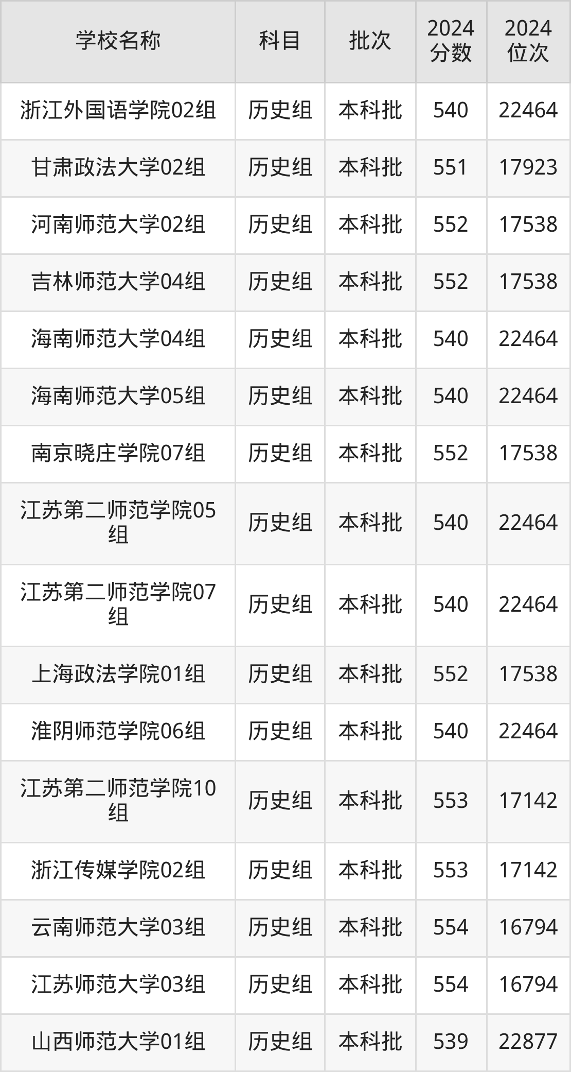 江苏高考历史组共有60所文科大学在530到580分之间录取,包含北京电影学院、四川师范大学、上海师范大学、安徽师范大学、山东师范大学、北京语言大学、中央戏剧学院、南京师范大学、江西师范大学、广东外语外贸大学。