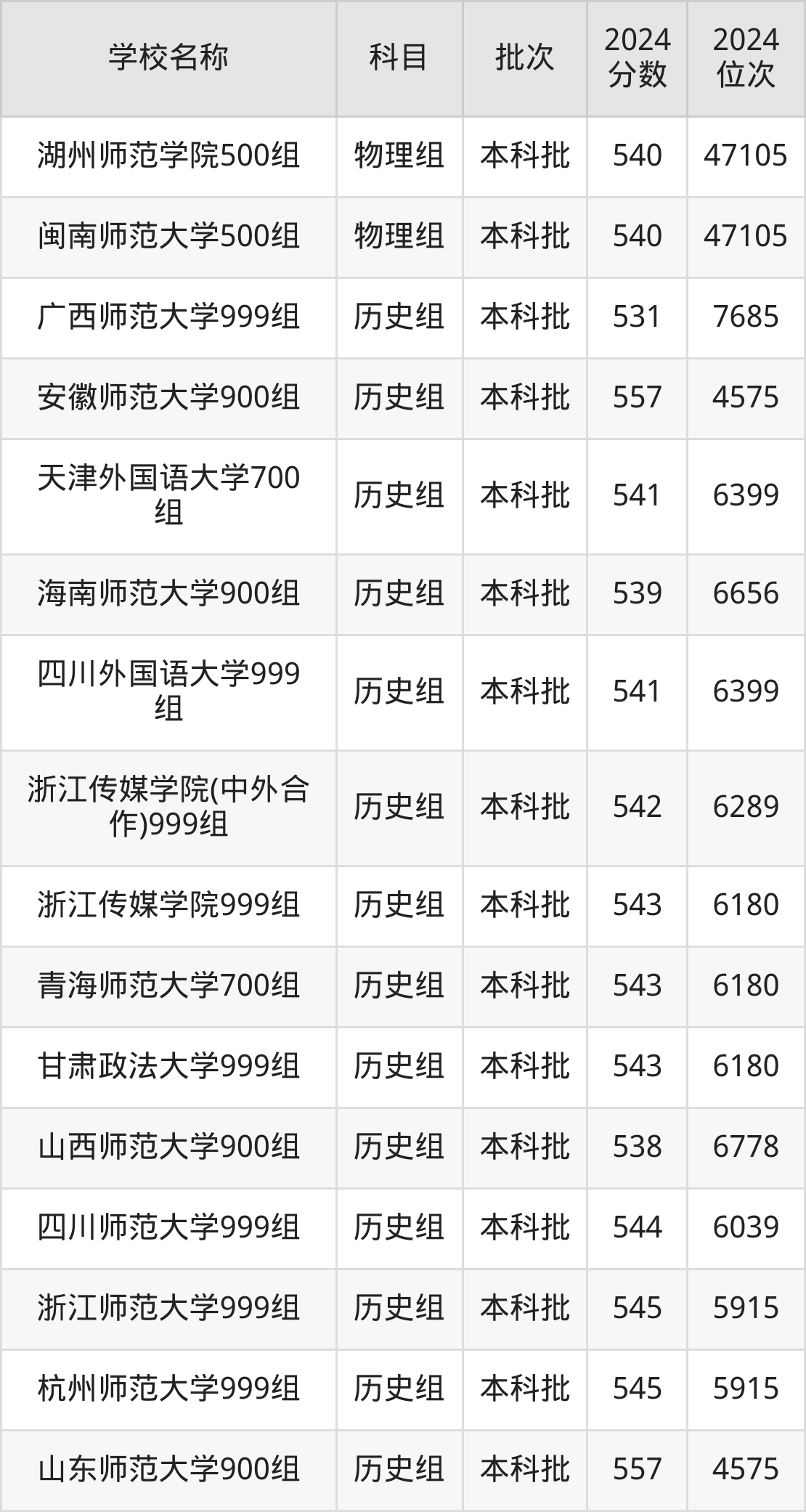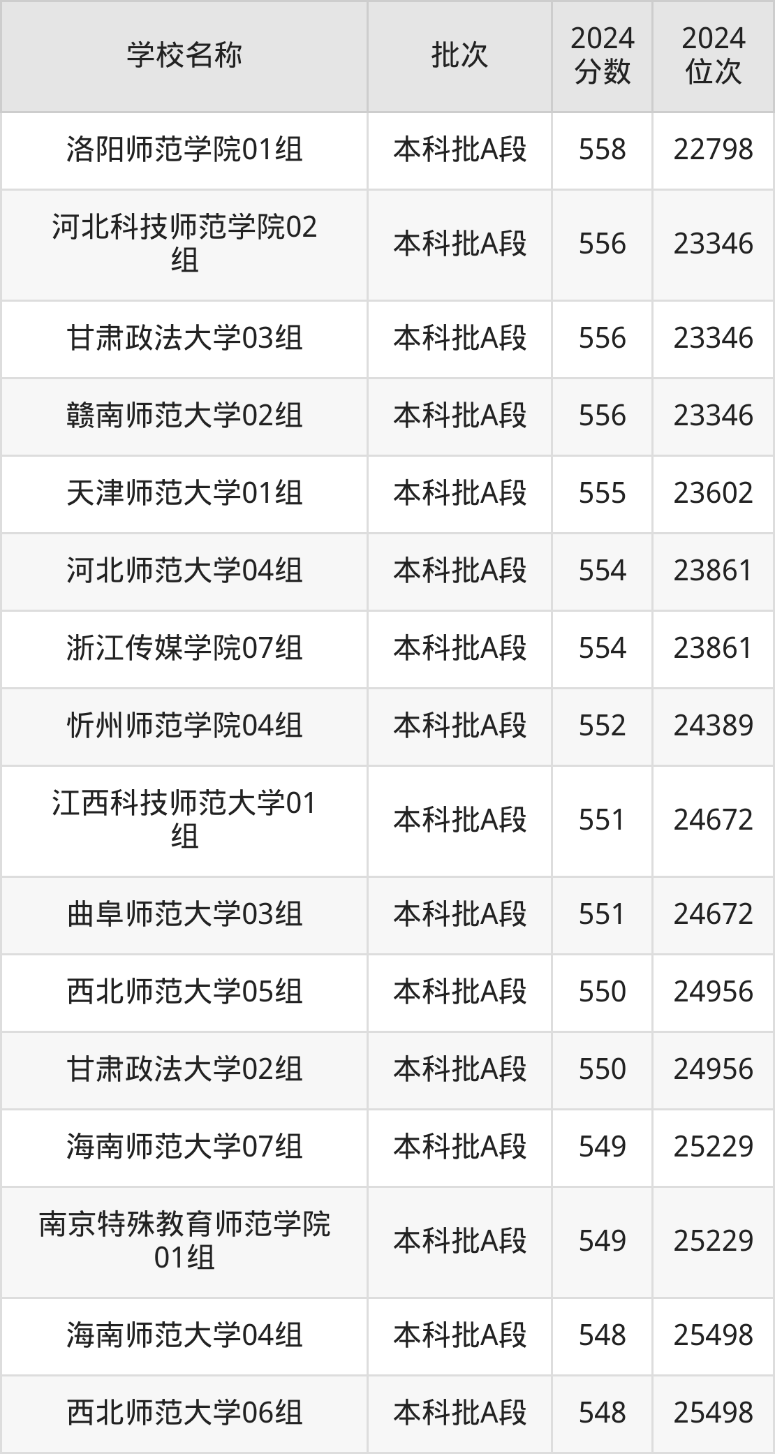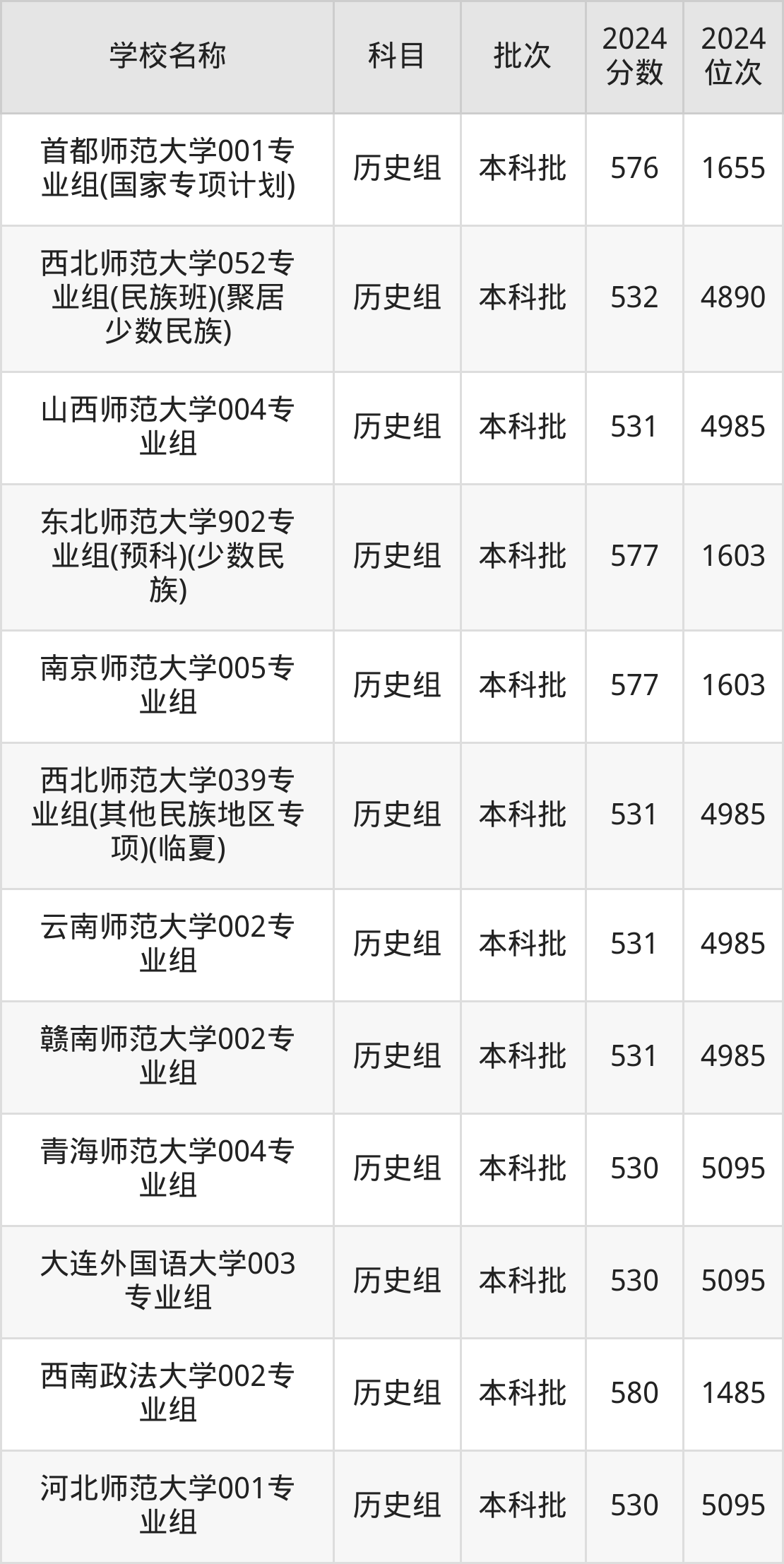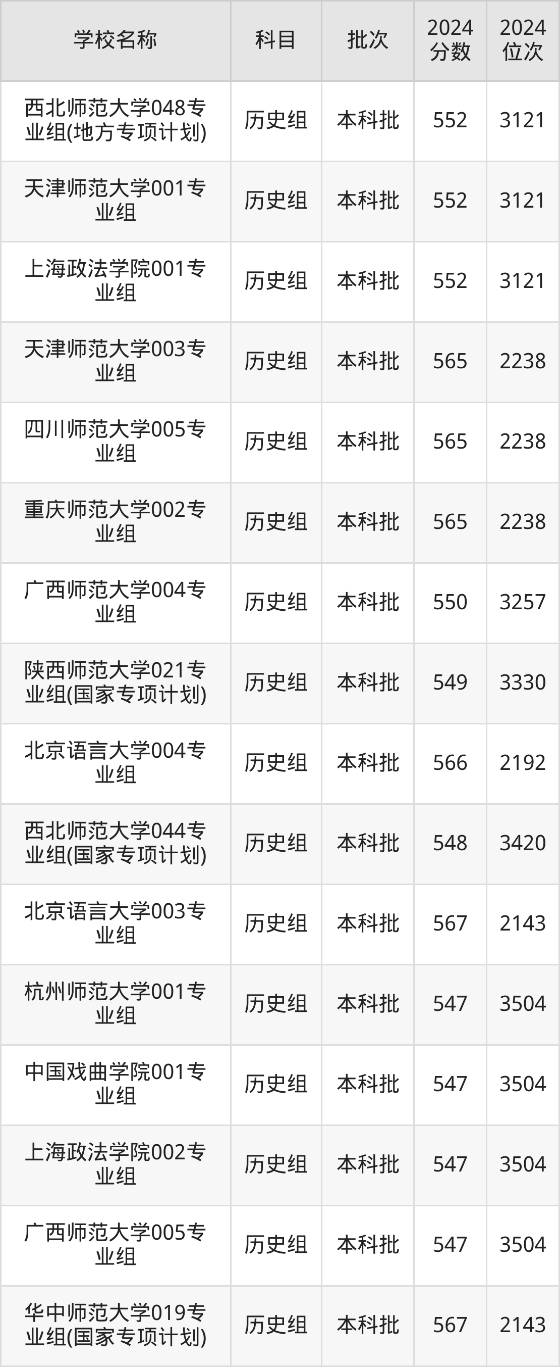甘肃高考历史组共有45所文科大学在530到580分之间录取,包含西南政法大学、南京师范大学、东北师范大学、首都师范大学、湖南师范大学、华南师范大学、陕西师范大学、北京外国语大学、西北师范大学、福建师范大学。