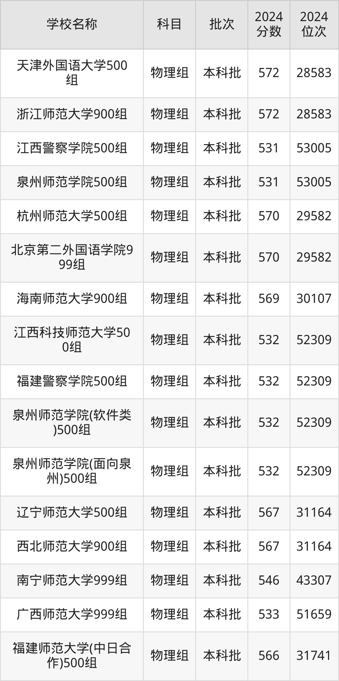 福建高考物理组共有76所文科大学在530到580分之间录取,包含山东师范大学、中央美术学院(中外合作)、上海师范大学、四川师范大学、福建师范大学、江苏师范大学、天津师范大学、重庆师范大学、浙江传媒学院、杭州师范大学。