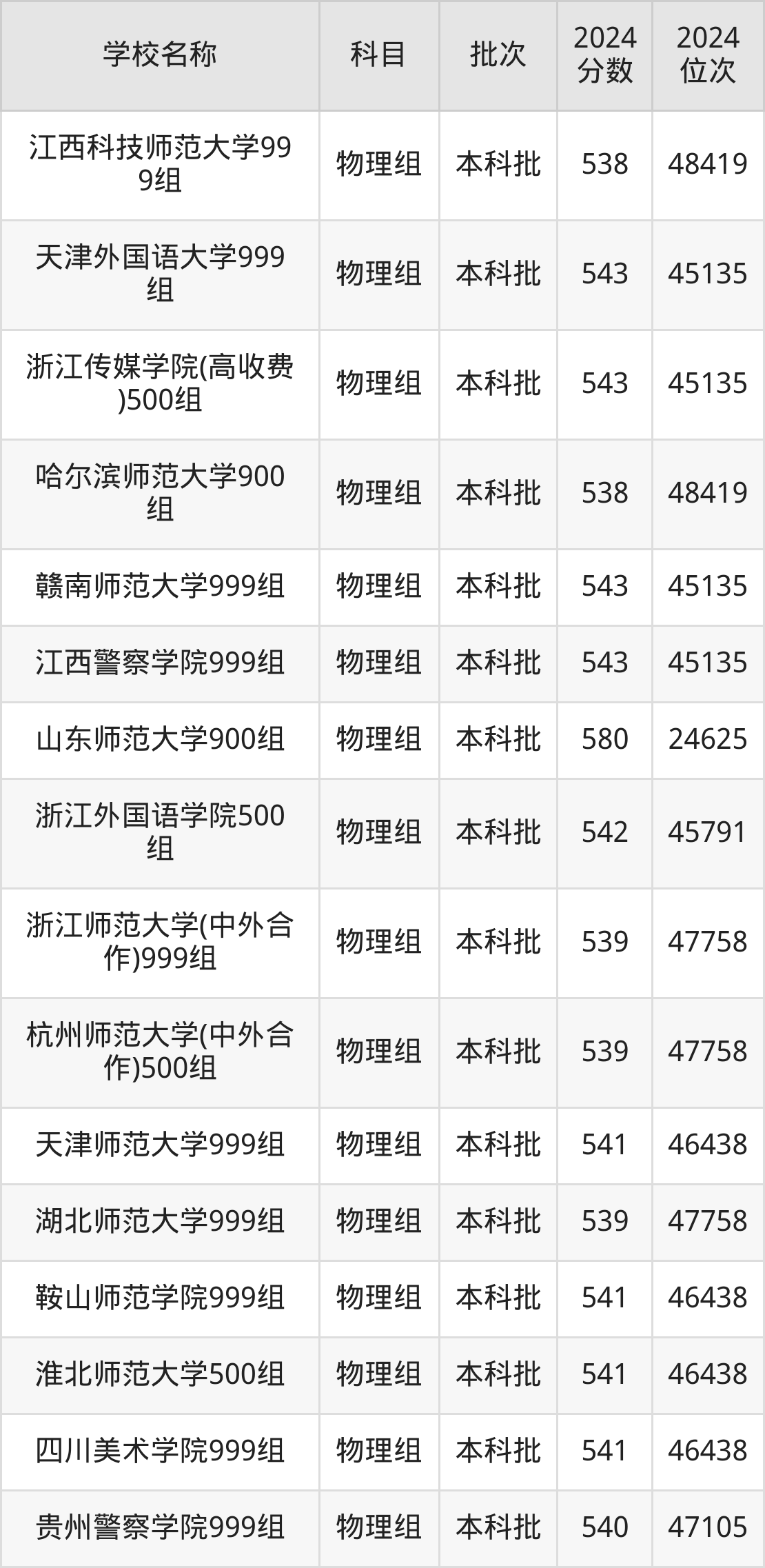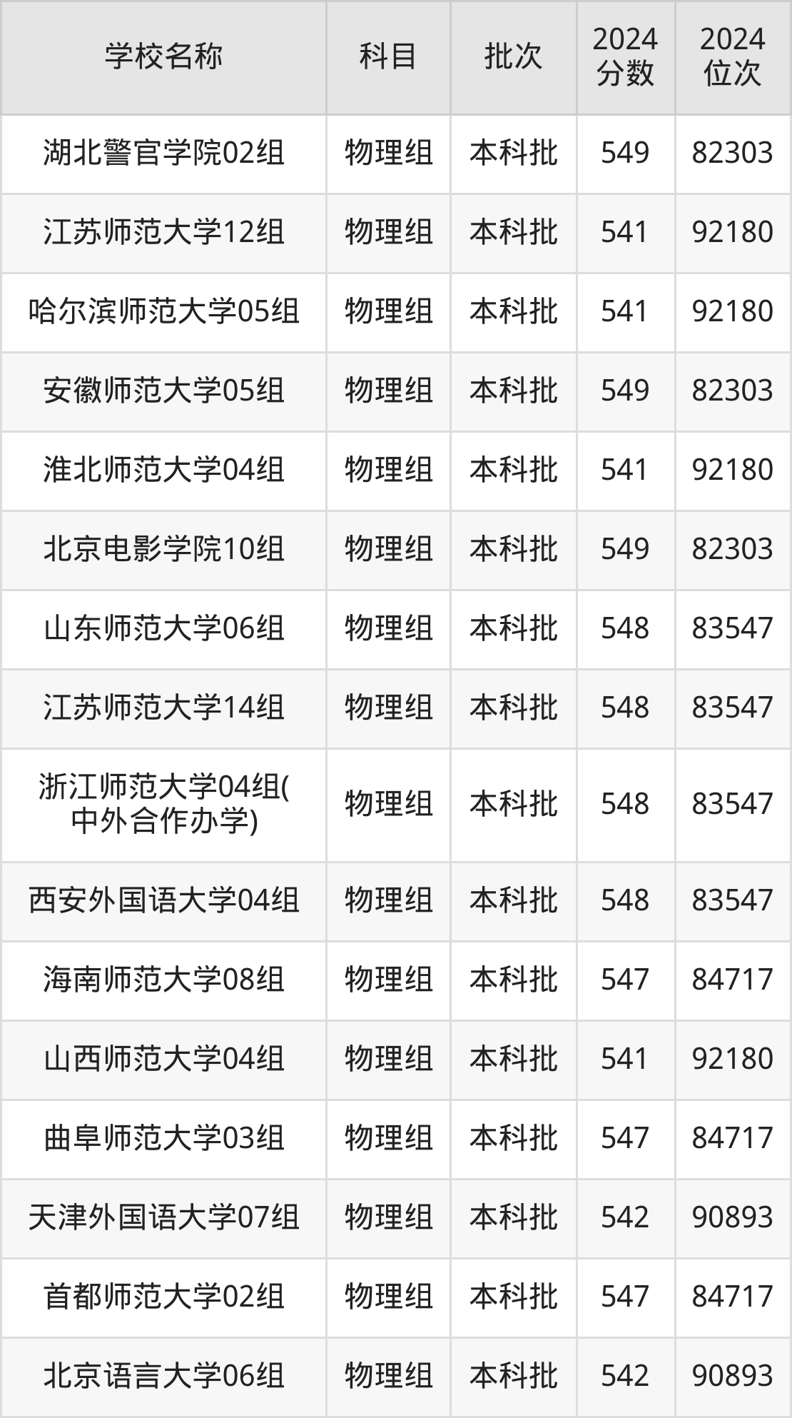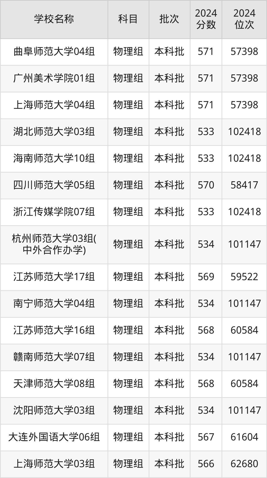 江苏高考物理组共有58所文科大学在530到580分之间录取,包含北京第二外国语学院、上海师范大学、北京语言大学、北京电影学院、重庆师范大学、曲阜师范大学、广州美术学院、四川师范大学、江苏师范大学、天津师范大学。