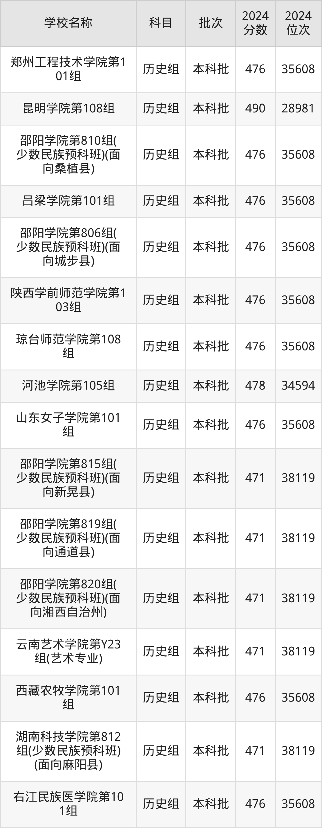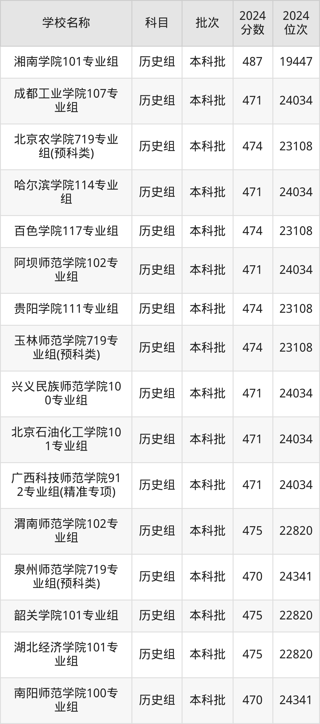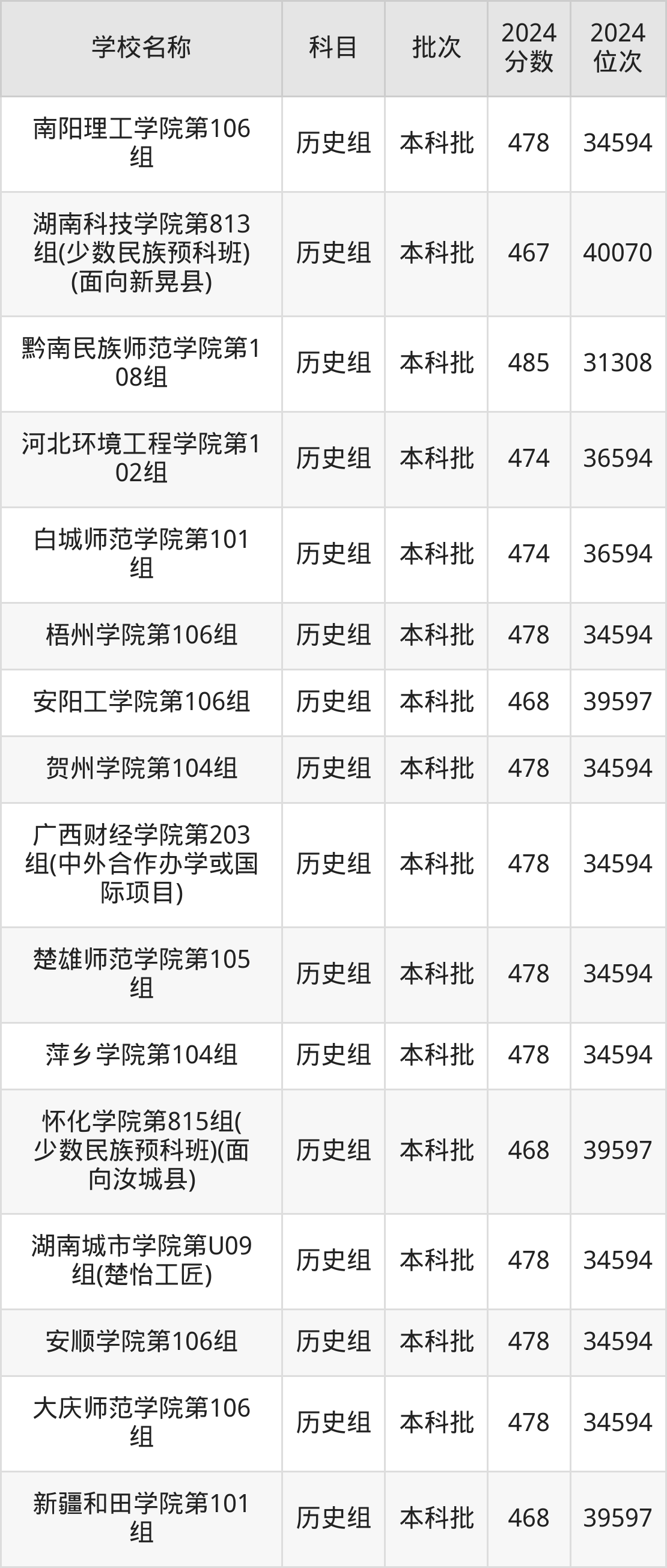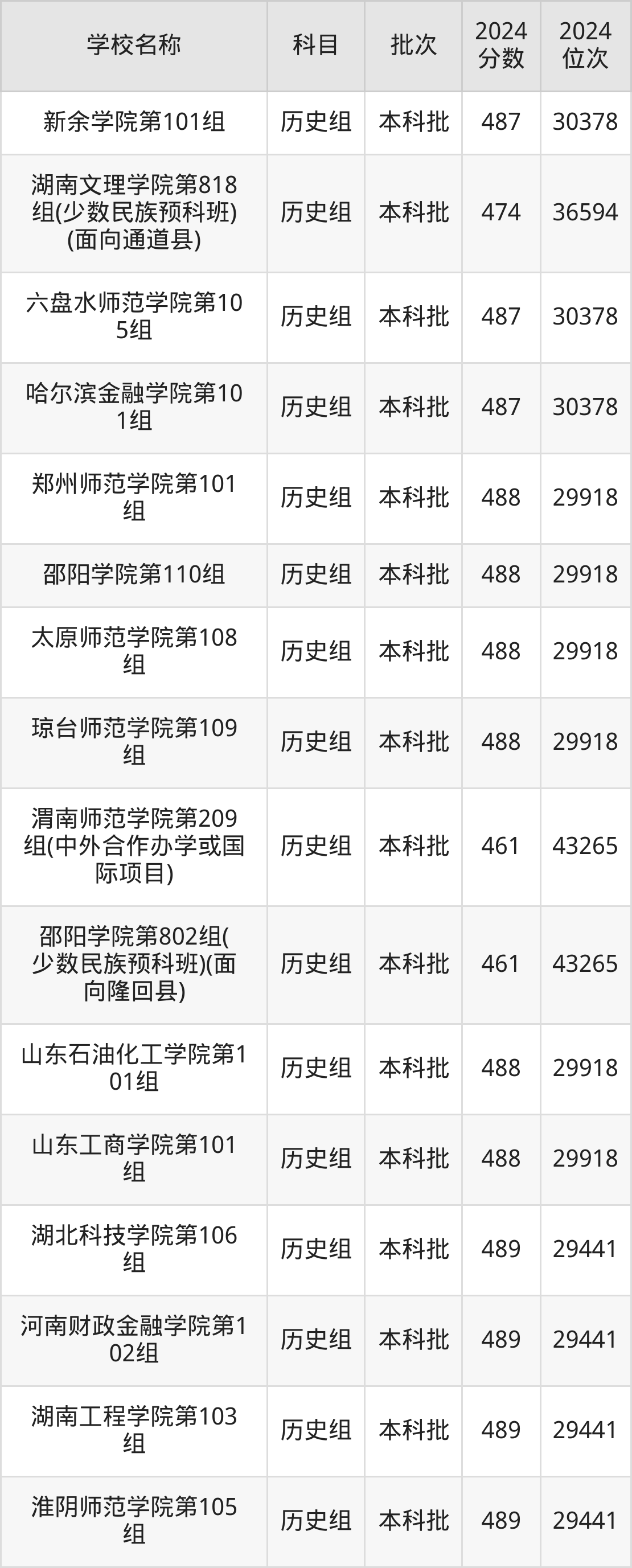 湖南高考历史组共有190所二本公办大学在460到490分之间录取,包含黔南民族师范学院、铜仁学院、昆明学院、潍坊学院、石家庄学院、湖南文理学院、邵阳学院、汉江师范学院、成都体育学院、湖南财政经济学院。
