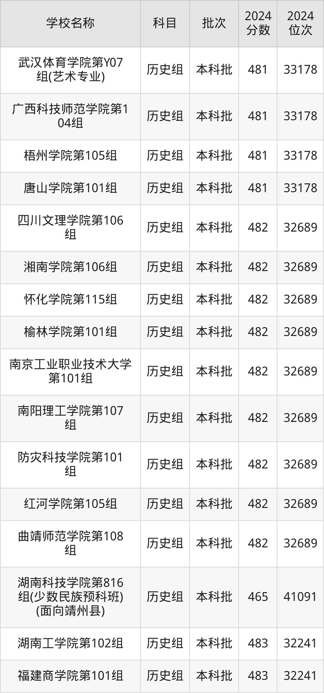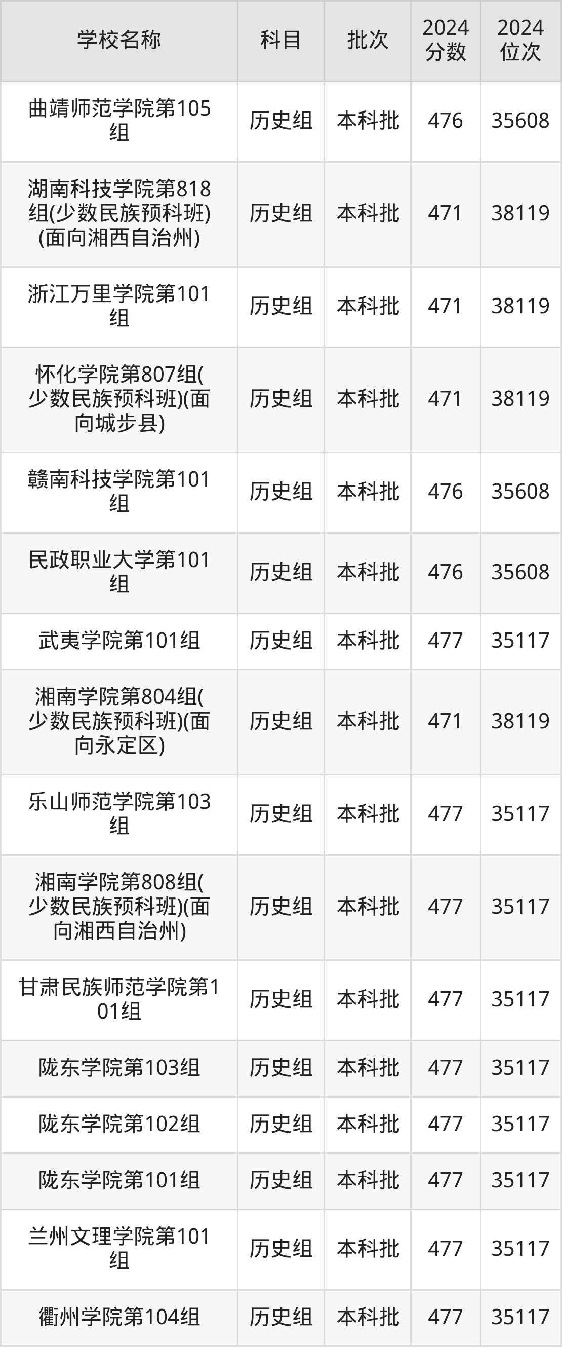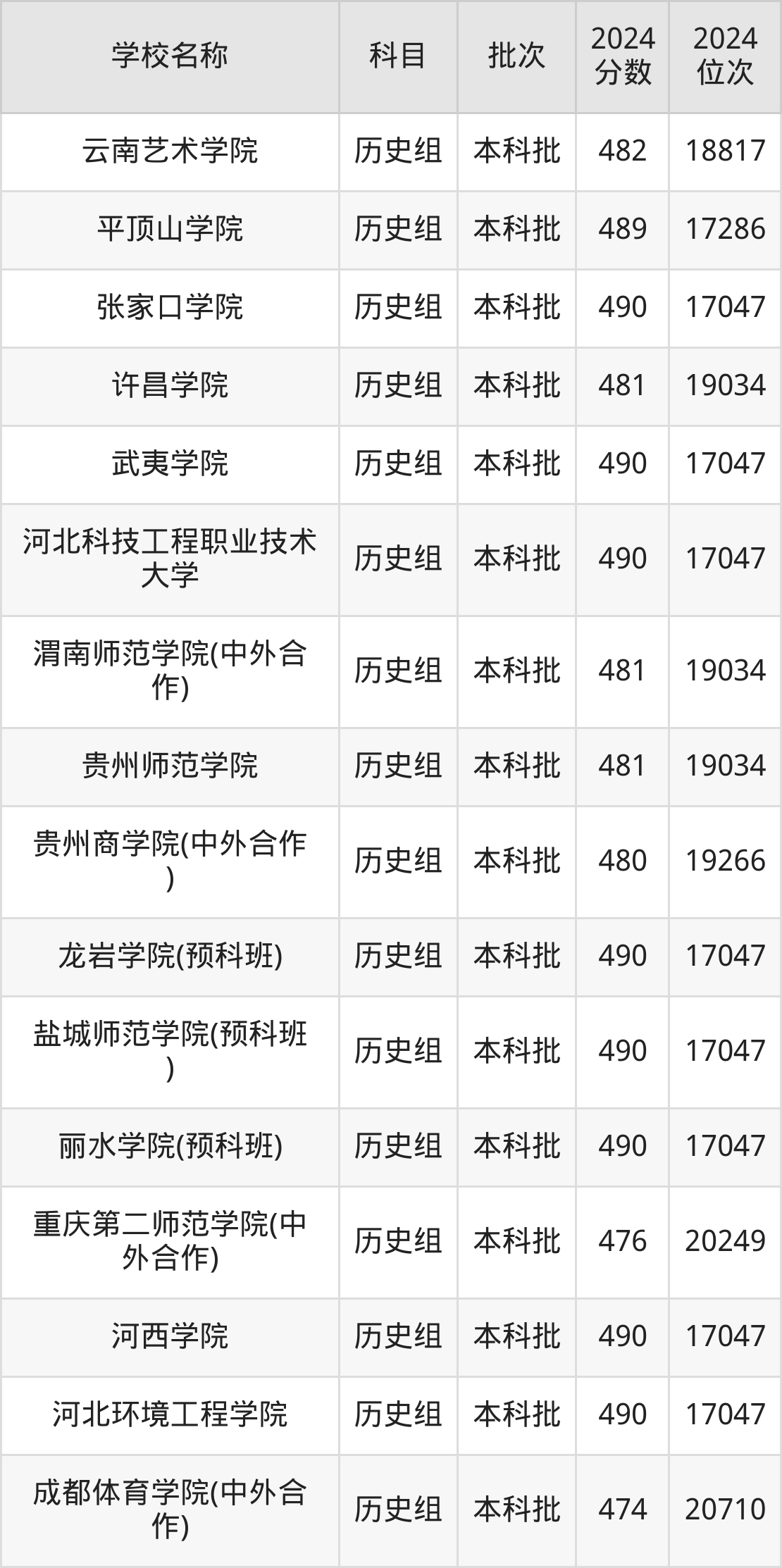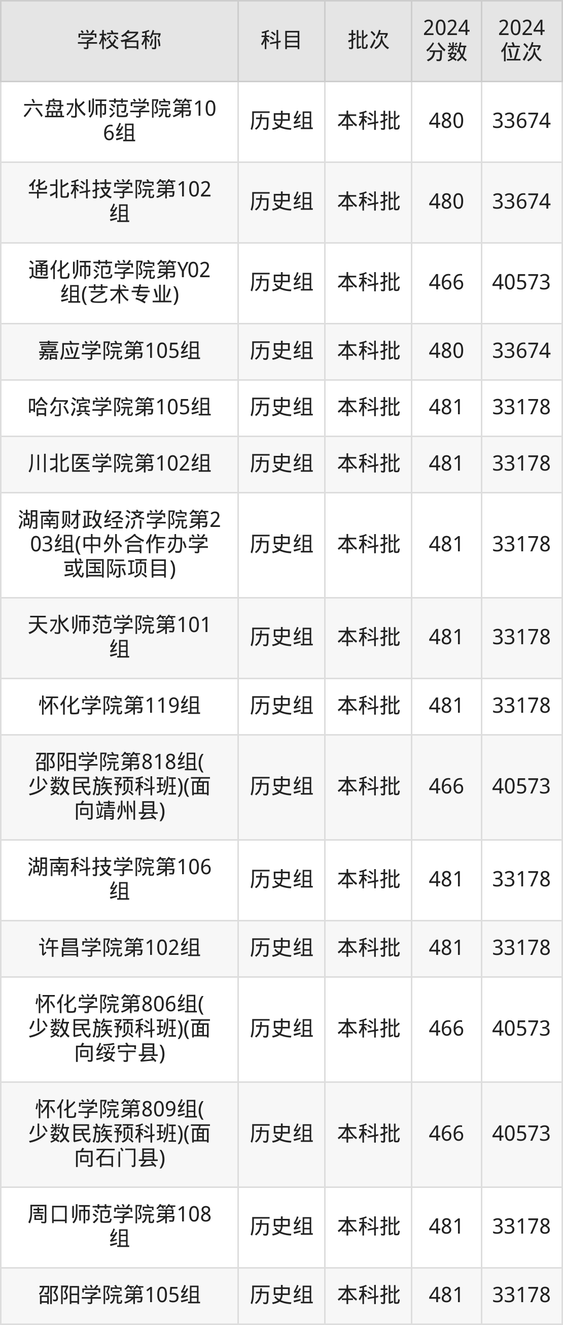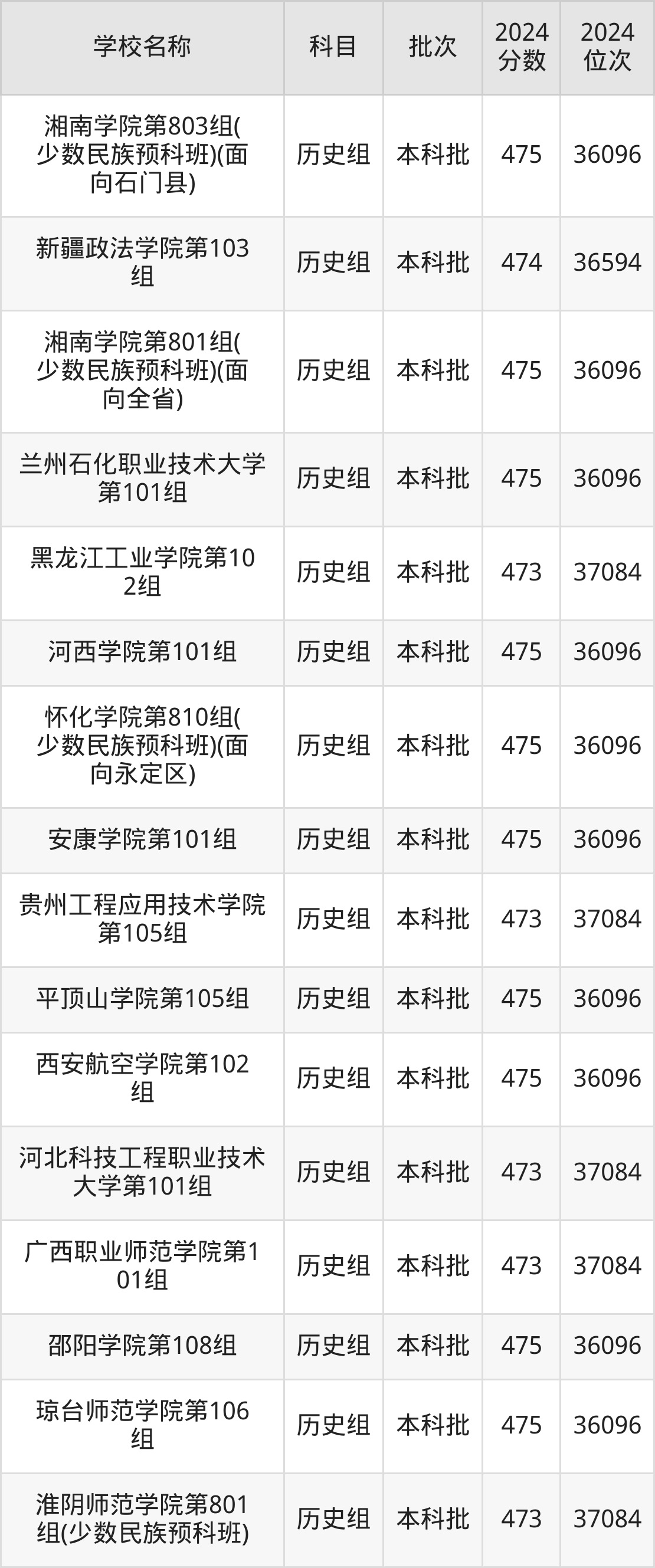 湖南高考历史组共有190所二本公办大学在460到490分之间录取,包含黔南民族师范学院、铜仁学院、昆明学院、潍坊学院、石家庄学院、湖南文理学院、邵阳学院、汉江师范学院、成都体育学院、湖南财政经济学院。