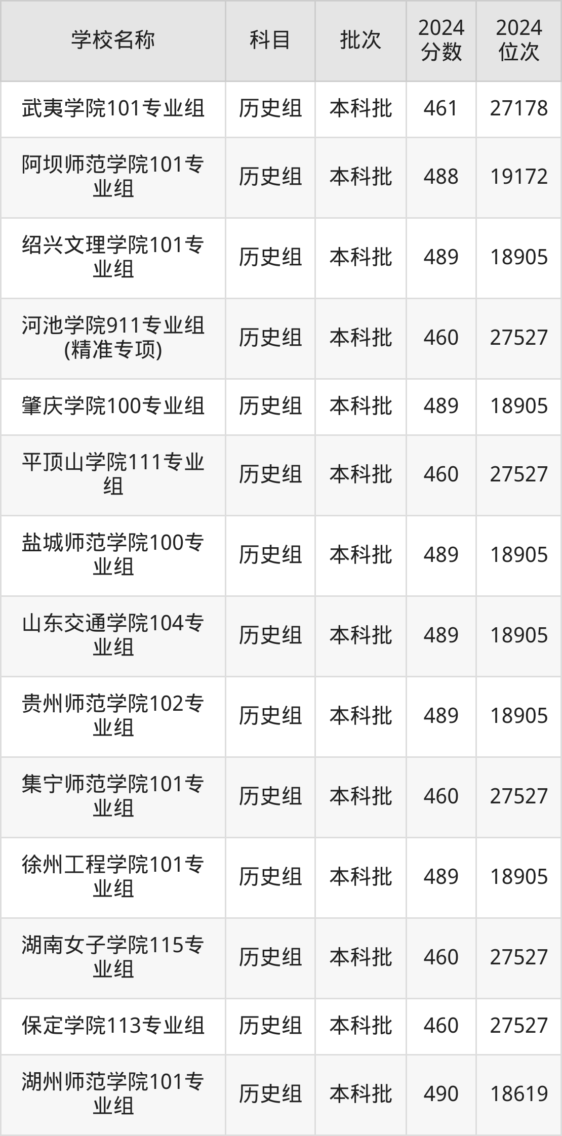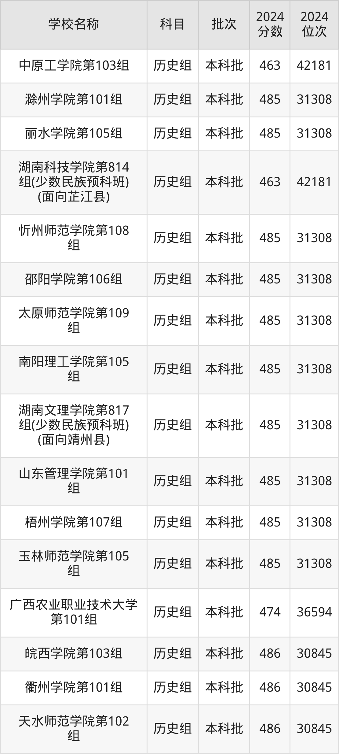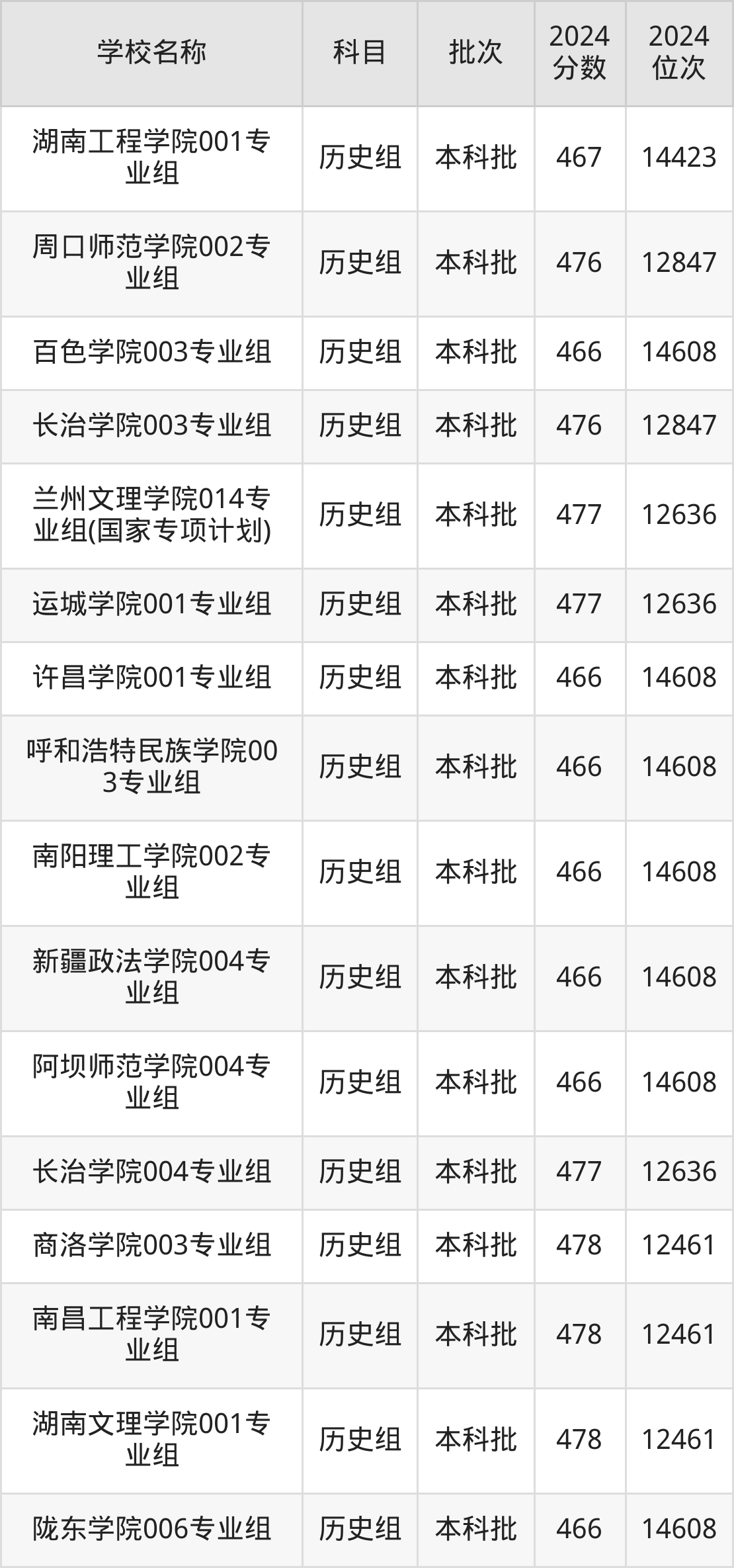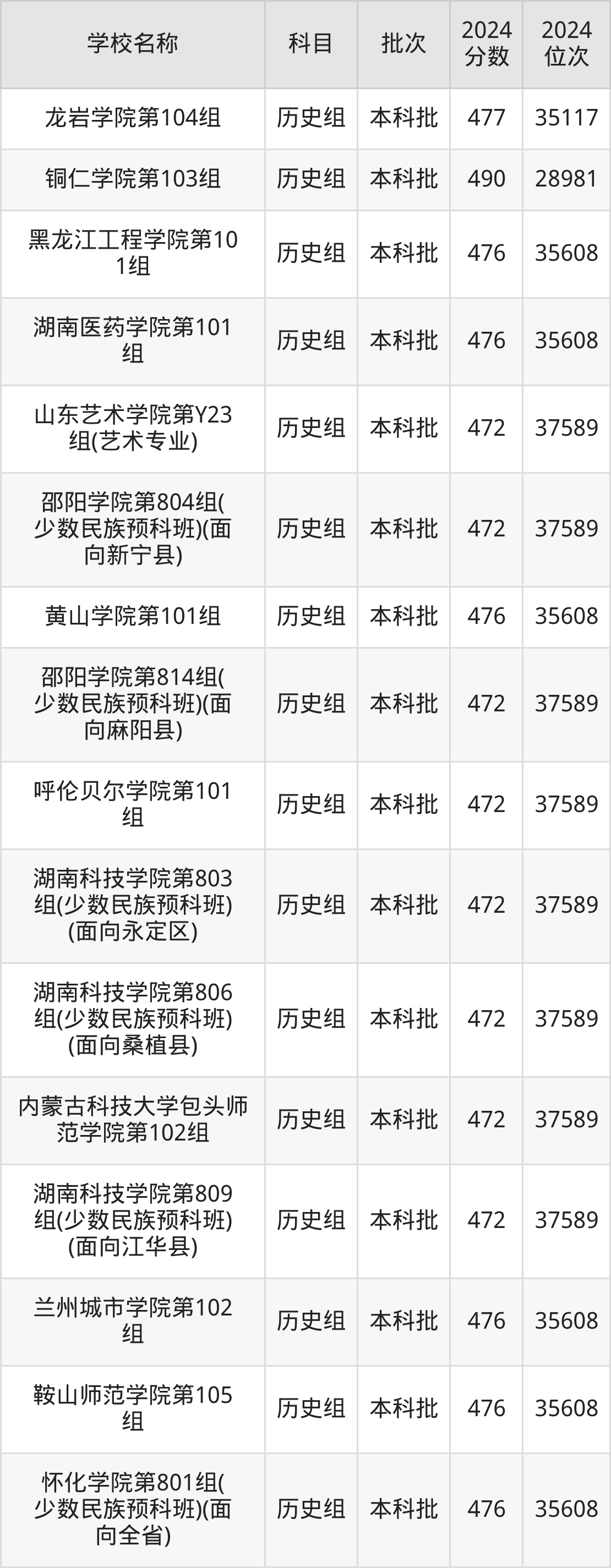 湖南高考历史组共有190所二本公办大学在460到490分之间录取,包含黔南民族师范学院、铜仁学院、昆明学院、潍坊学院、石家庄学院、湖南文理学院、邵阳学院、汉江师范学院、成都体育学院、湖南财政经济学院。