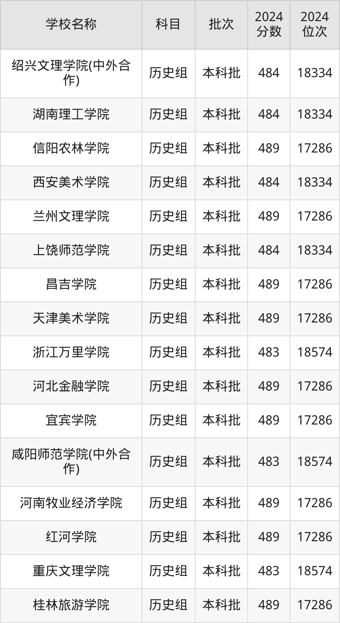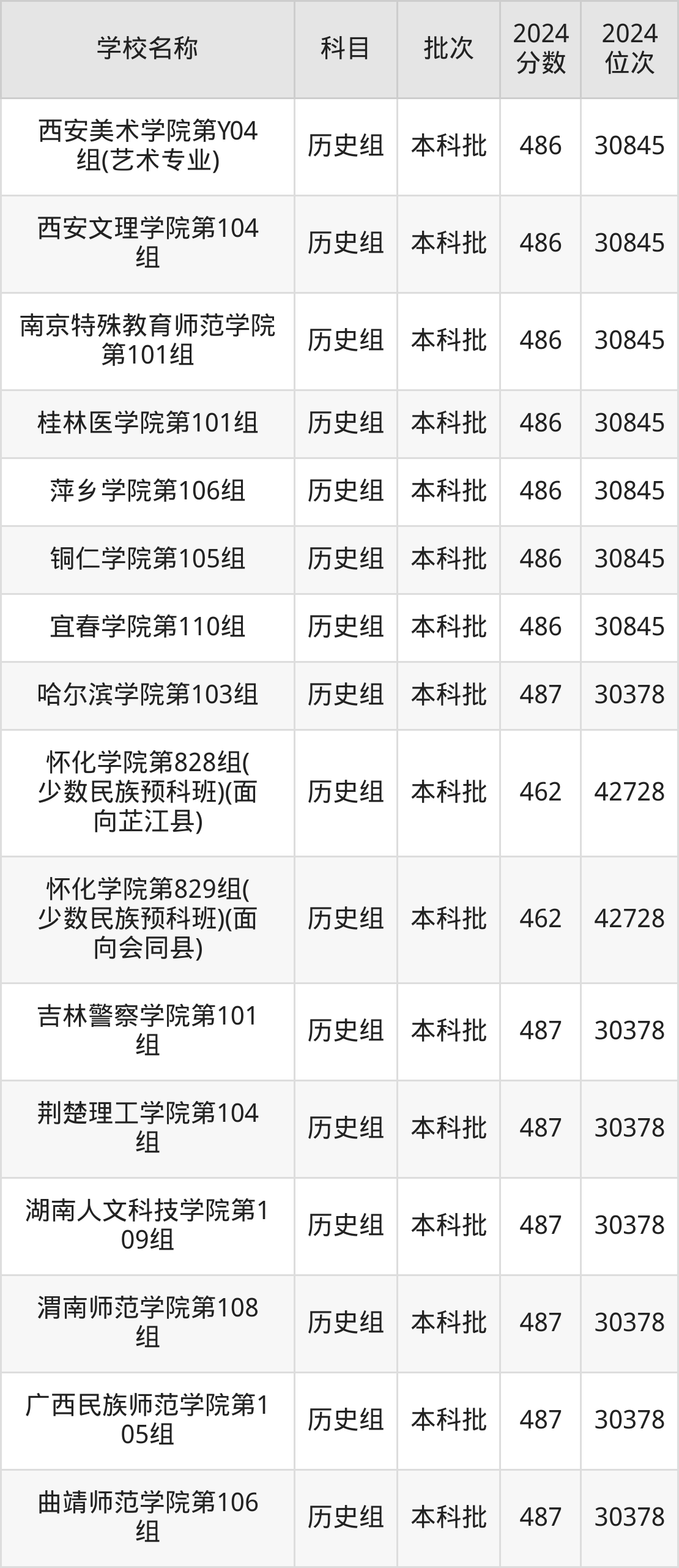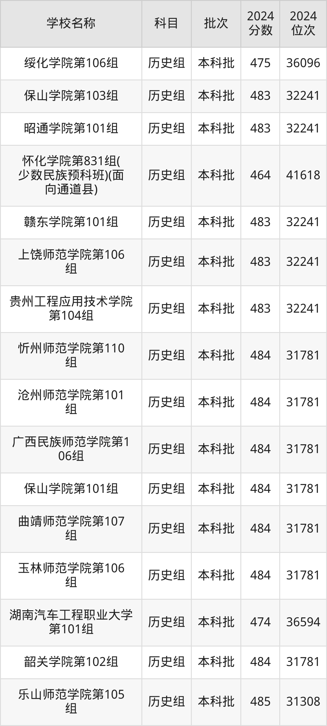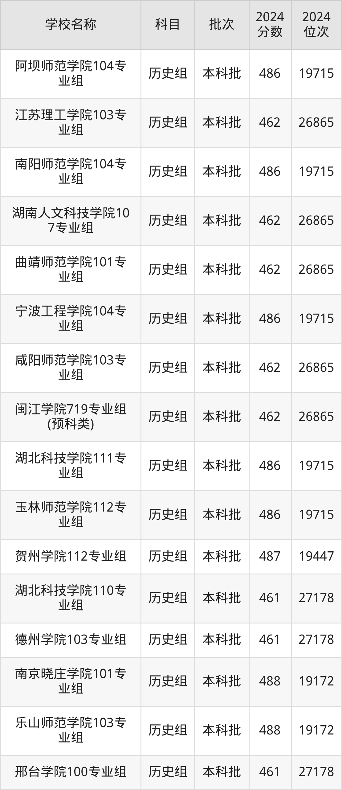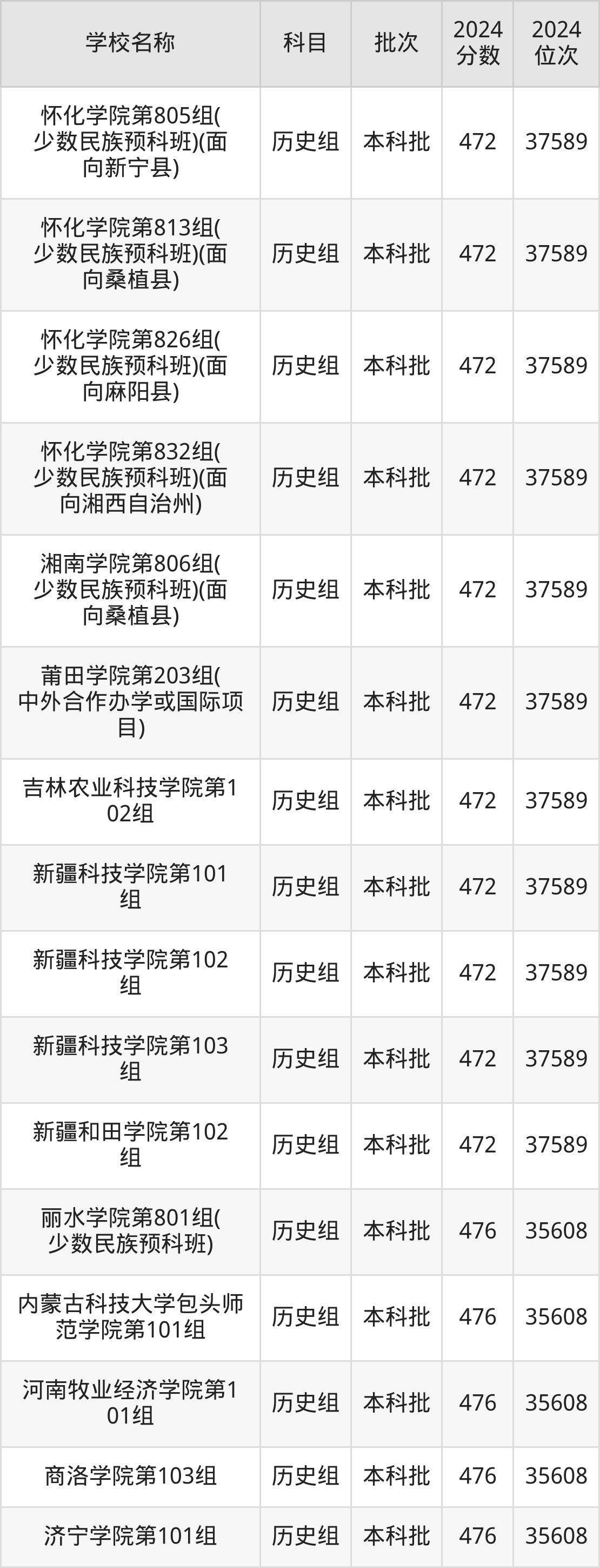 湖南高考历史组共有190所二本公办大学在460到490分之间录取,包含黔南民族师范学院、铜仁学院、昆明学院、潍坊学院、石家庄学院、湖南文理学院、邵阳学院、汉江师范学院、成都体育学院、湖南财政经济学院。