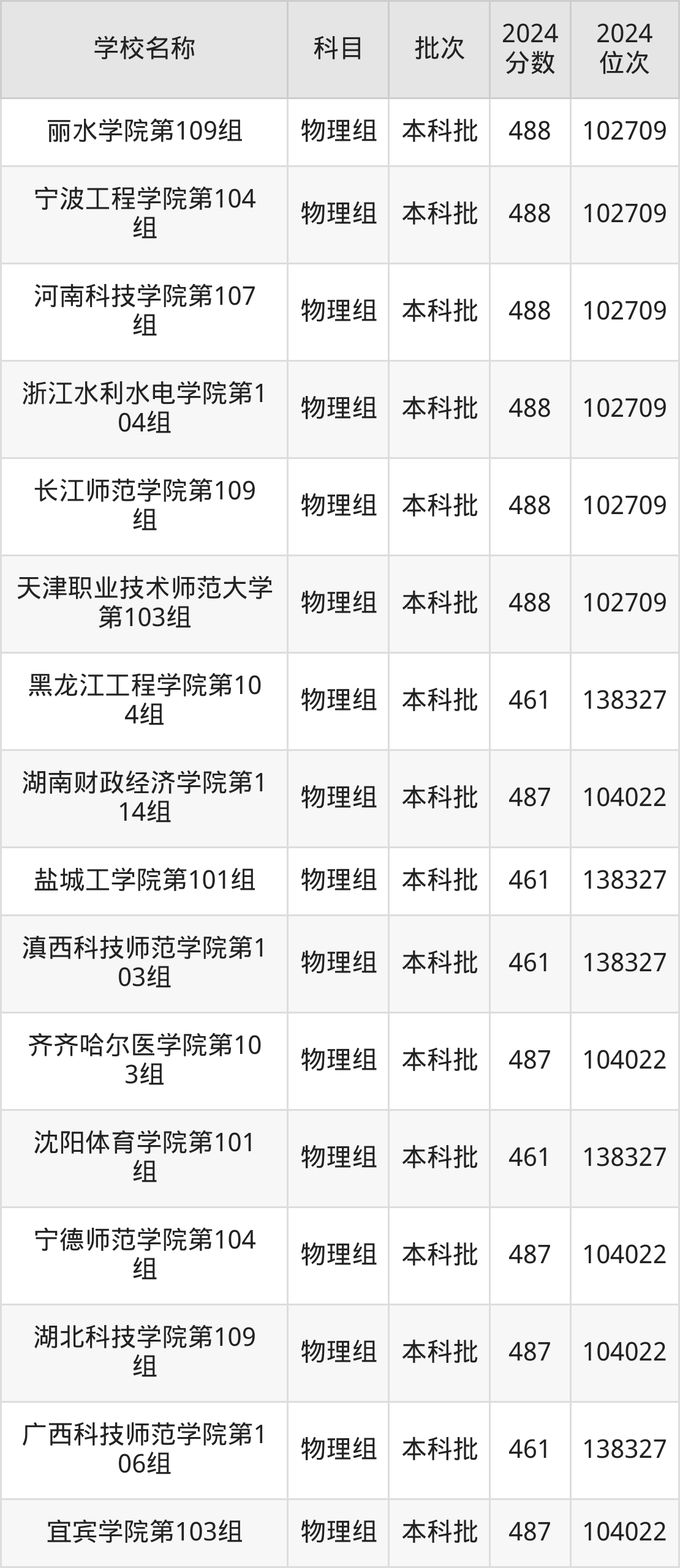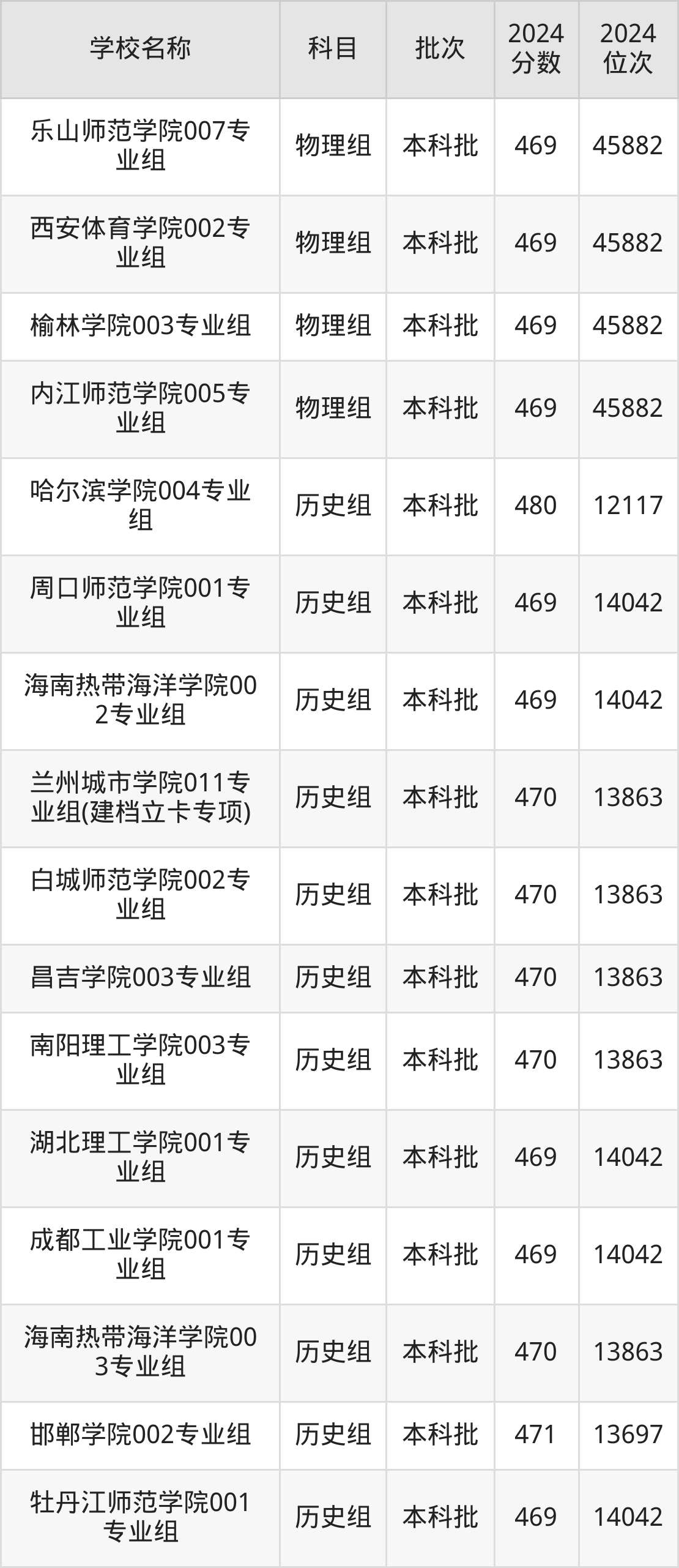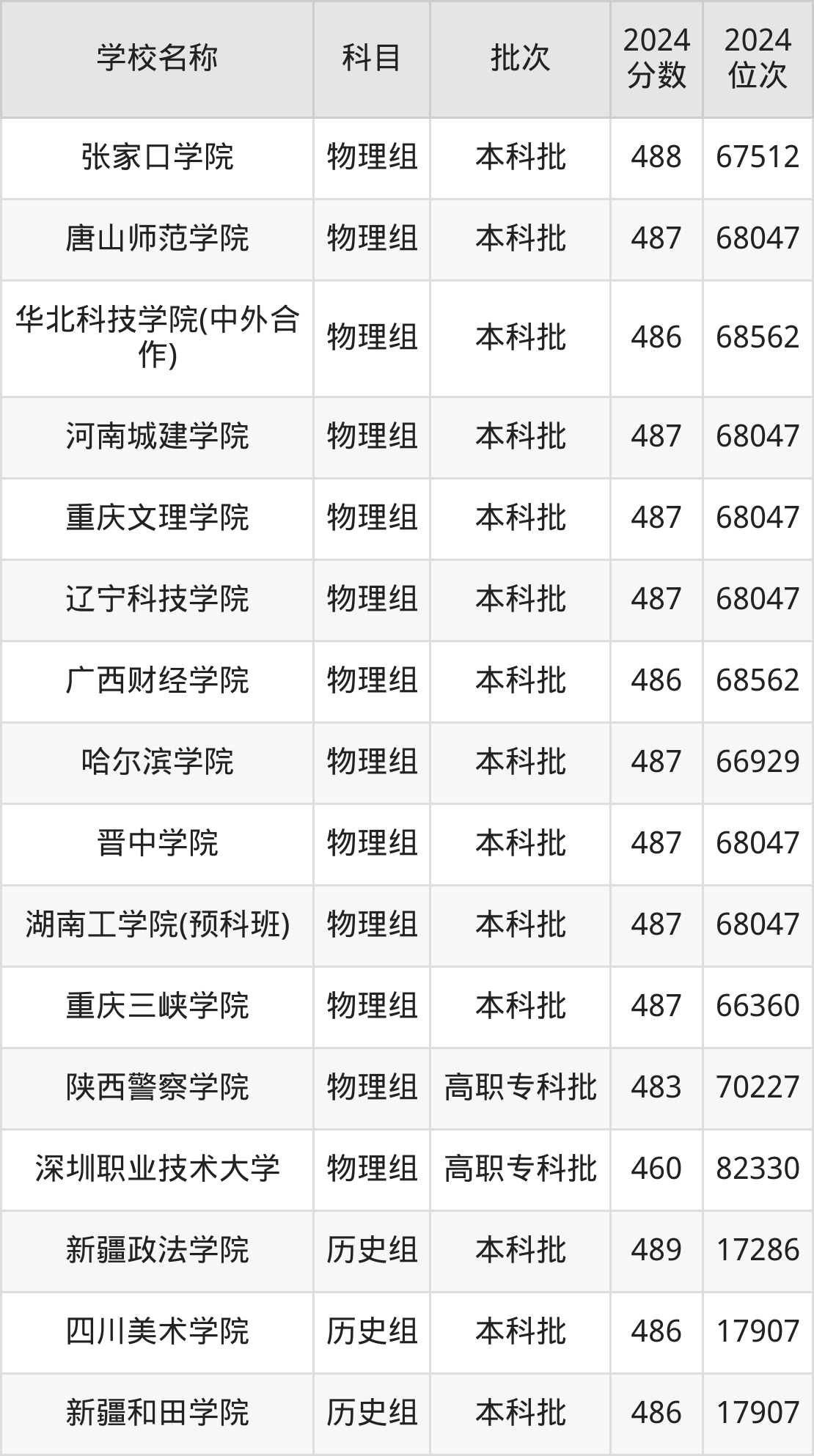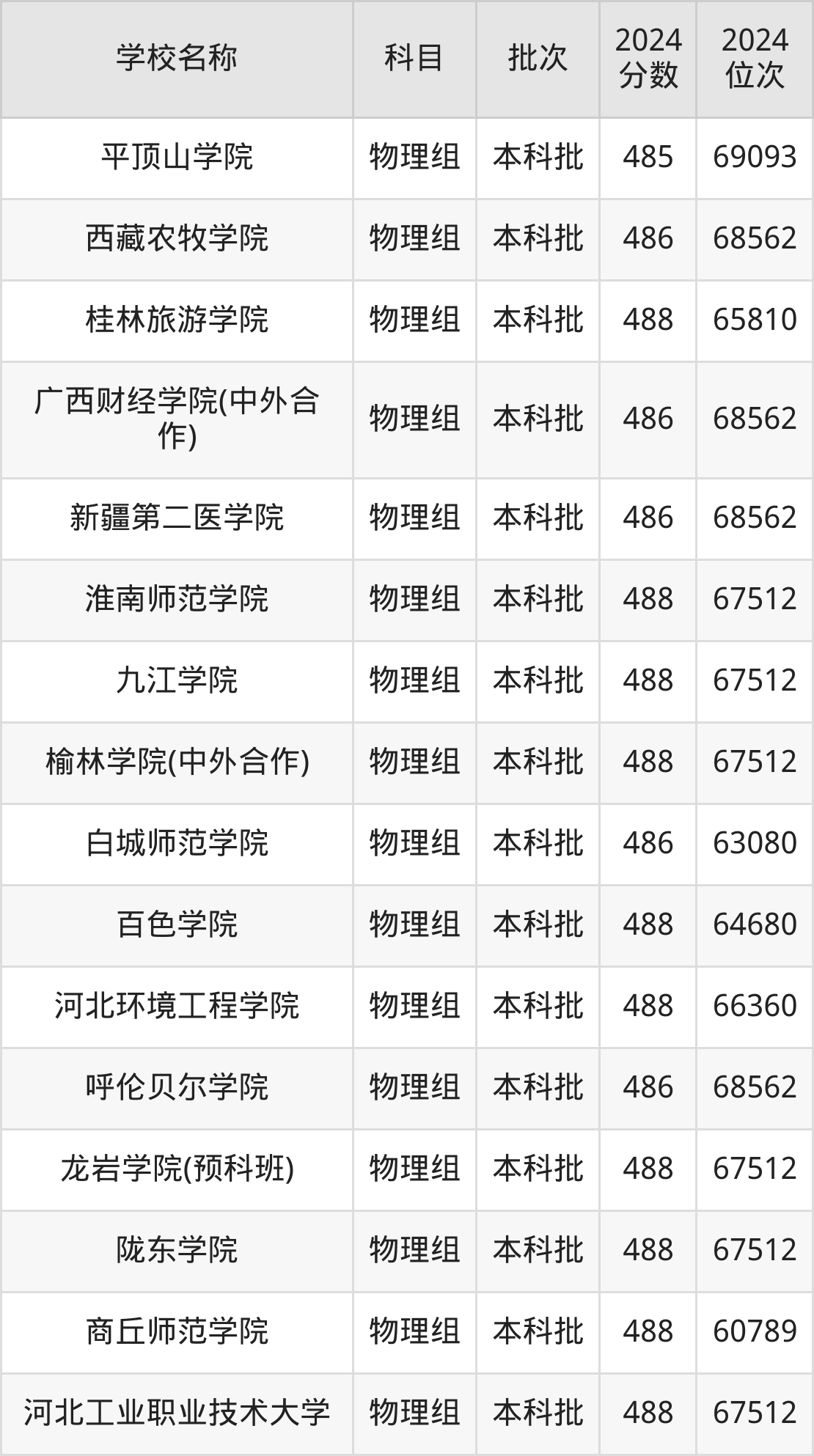 一、460到490分的二本公办大学最低分一览表