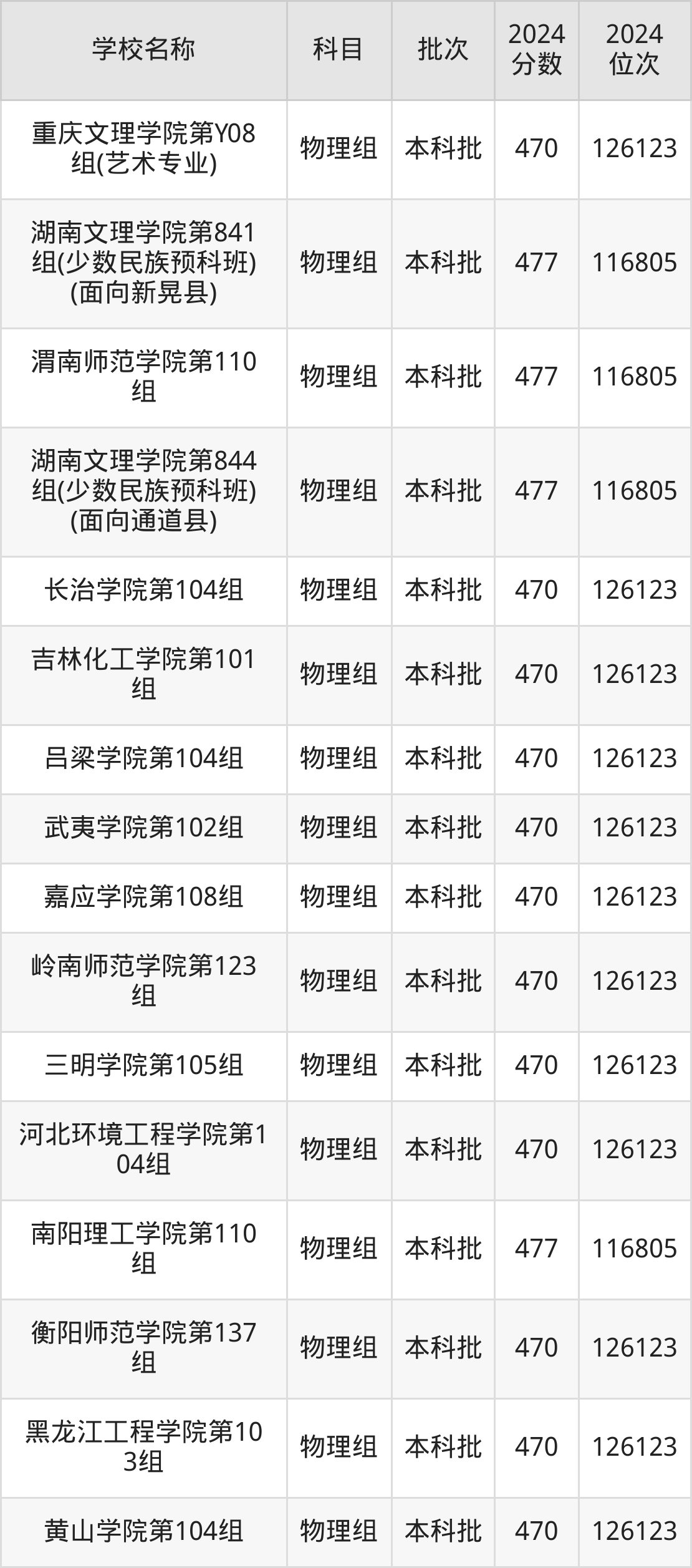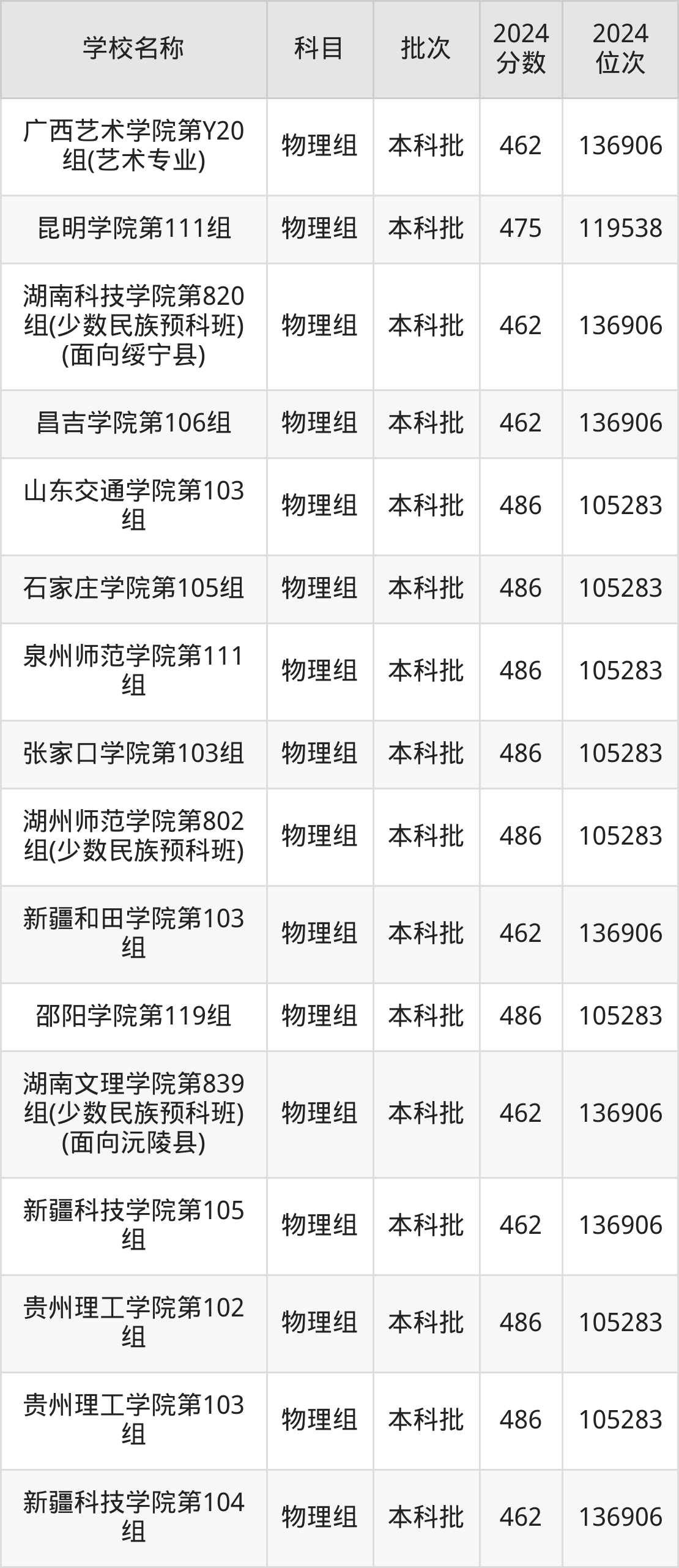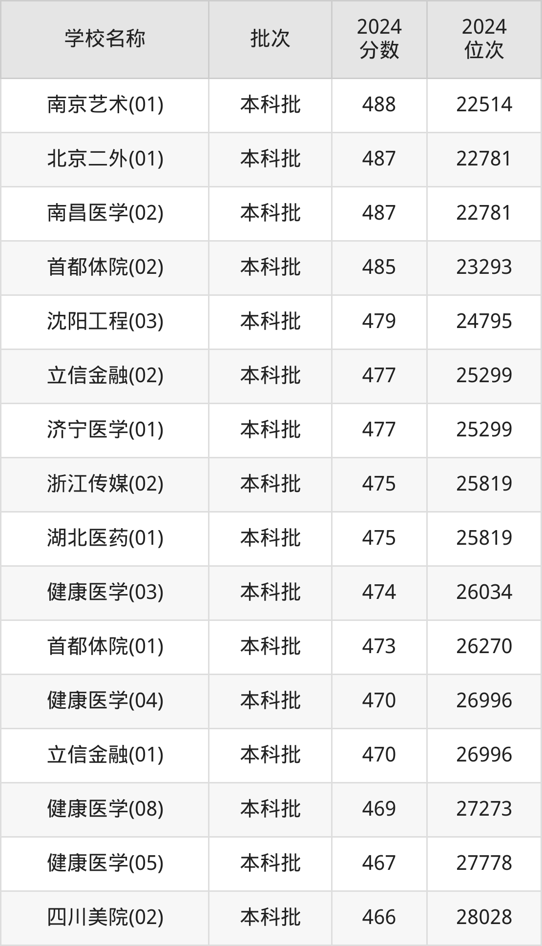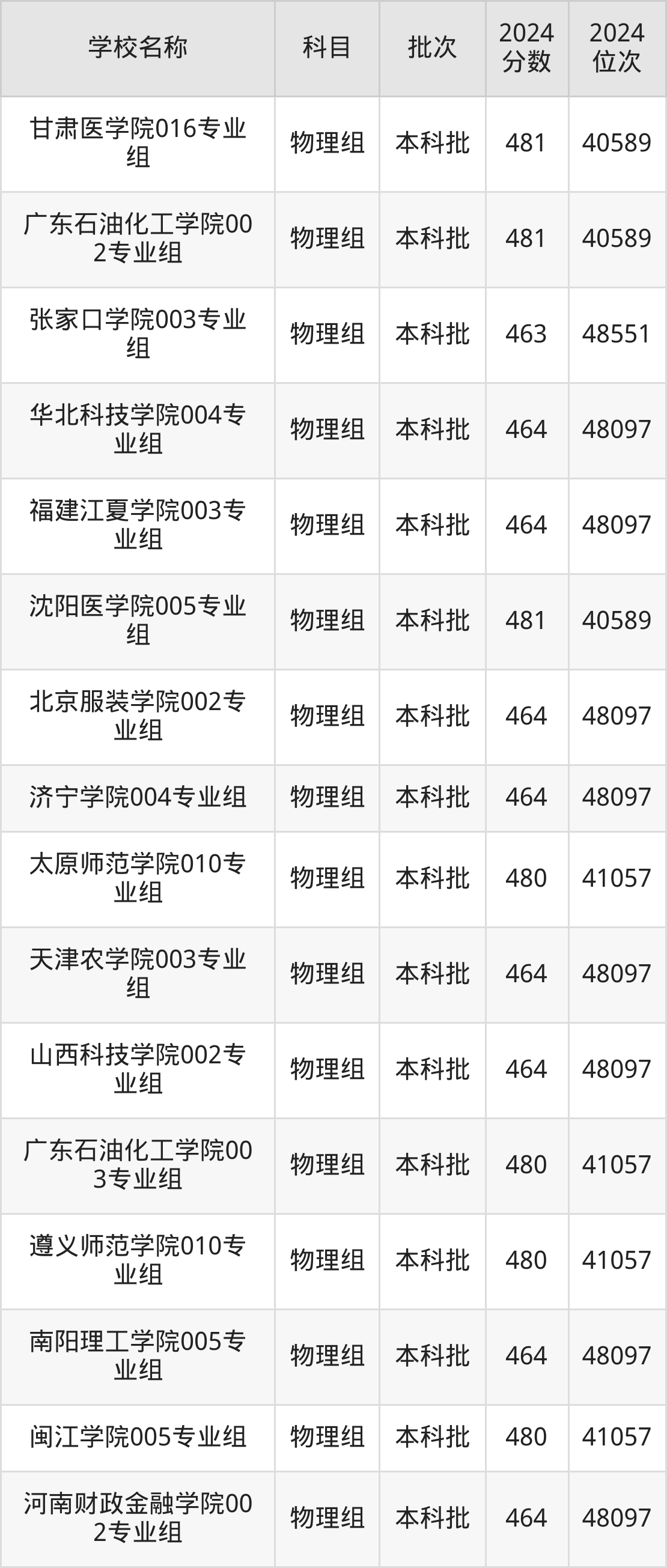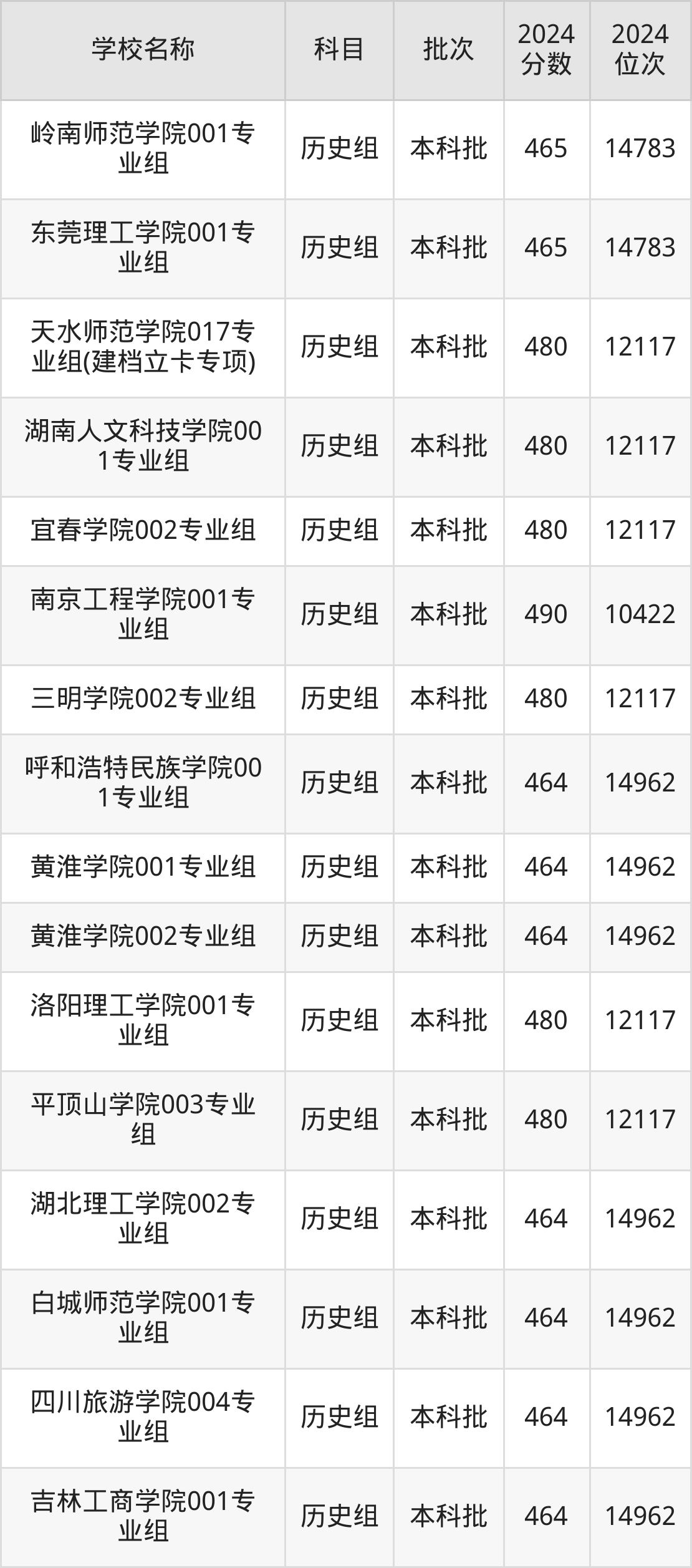 一、460到490分的二本公办大学最低分一览表