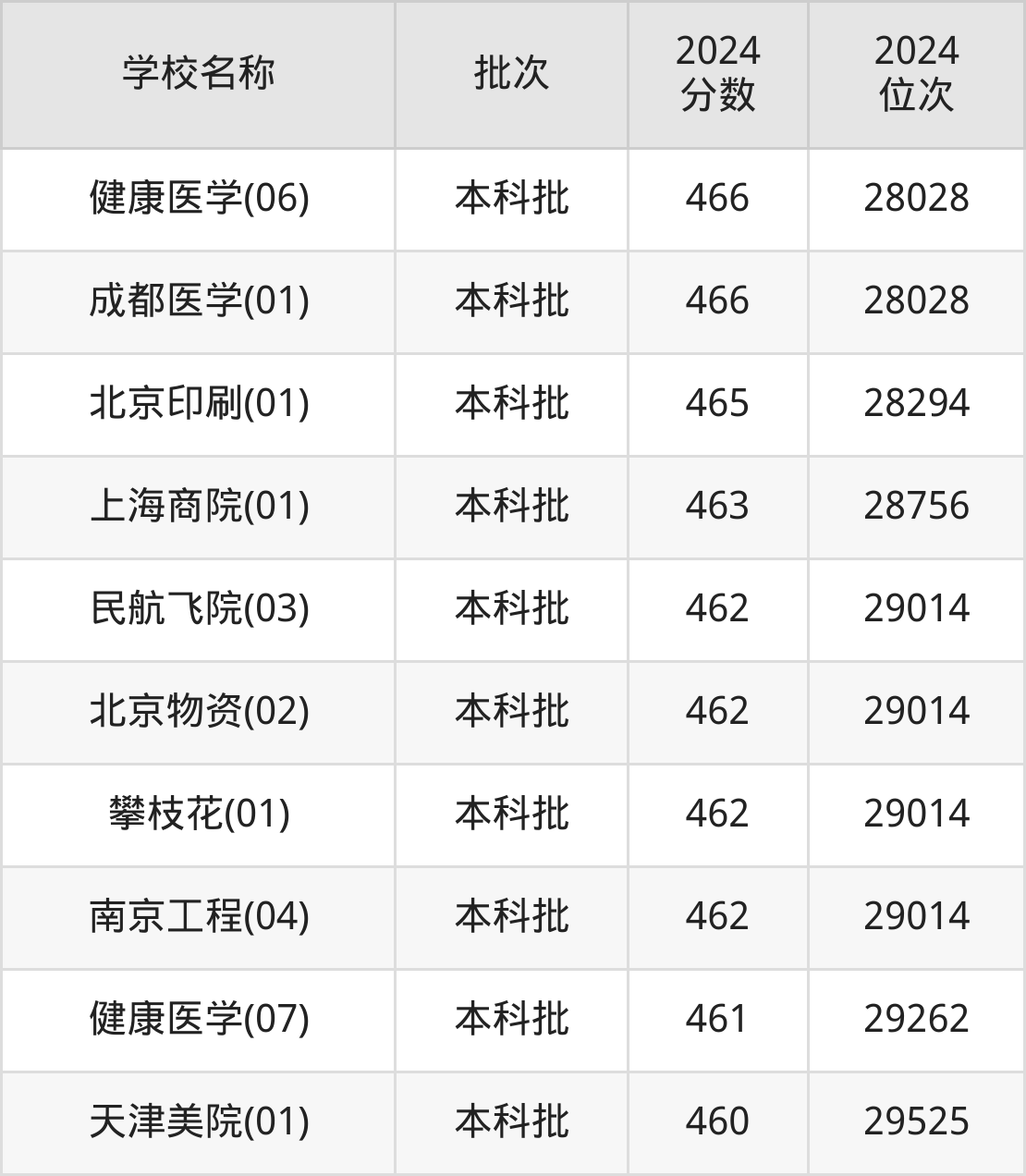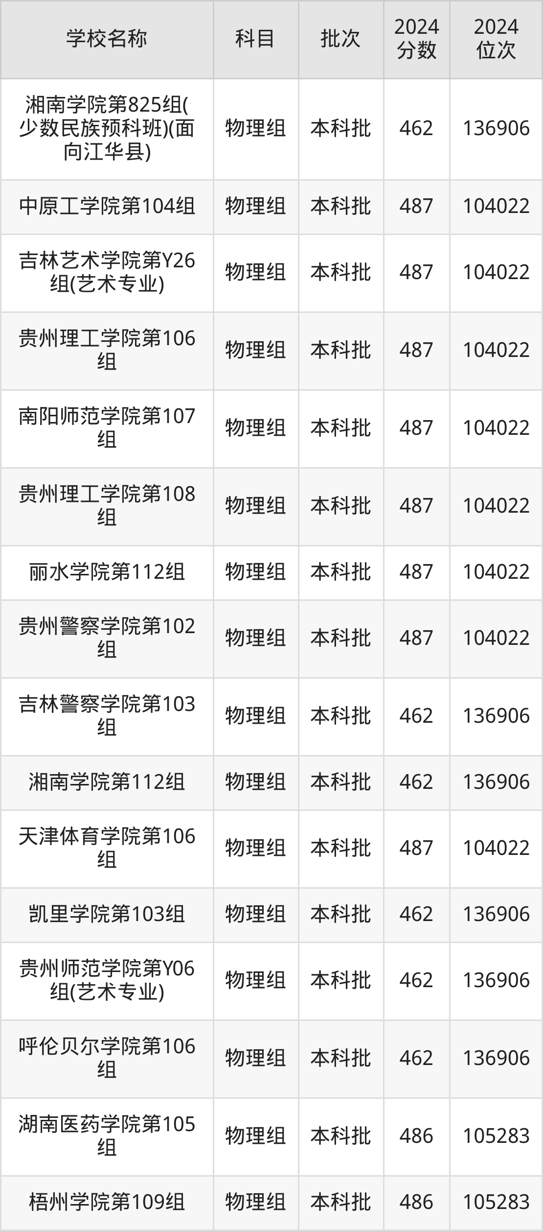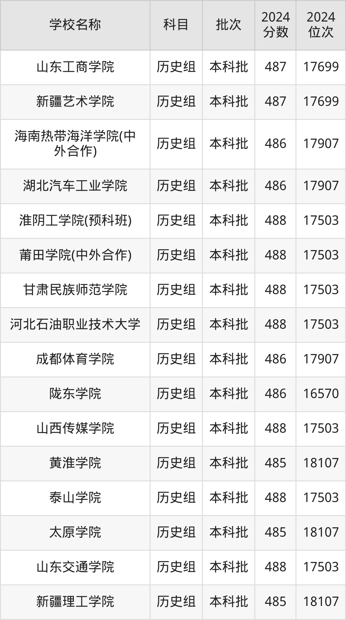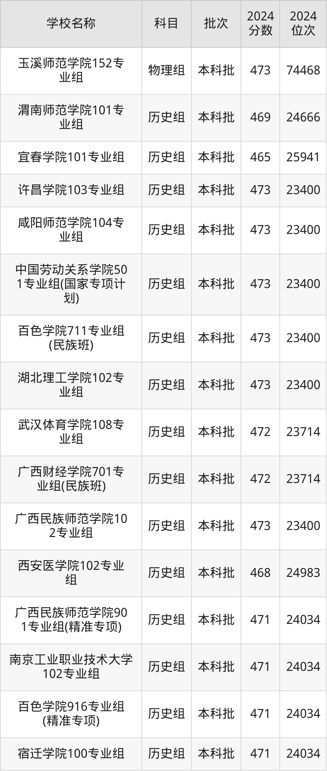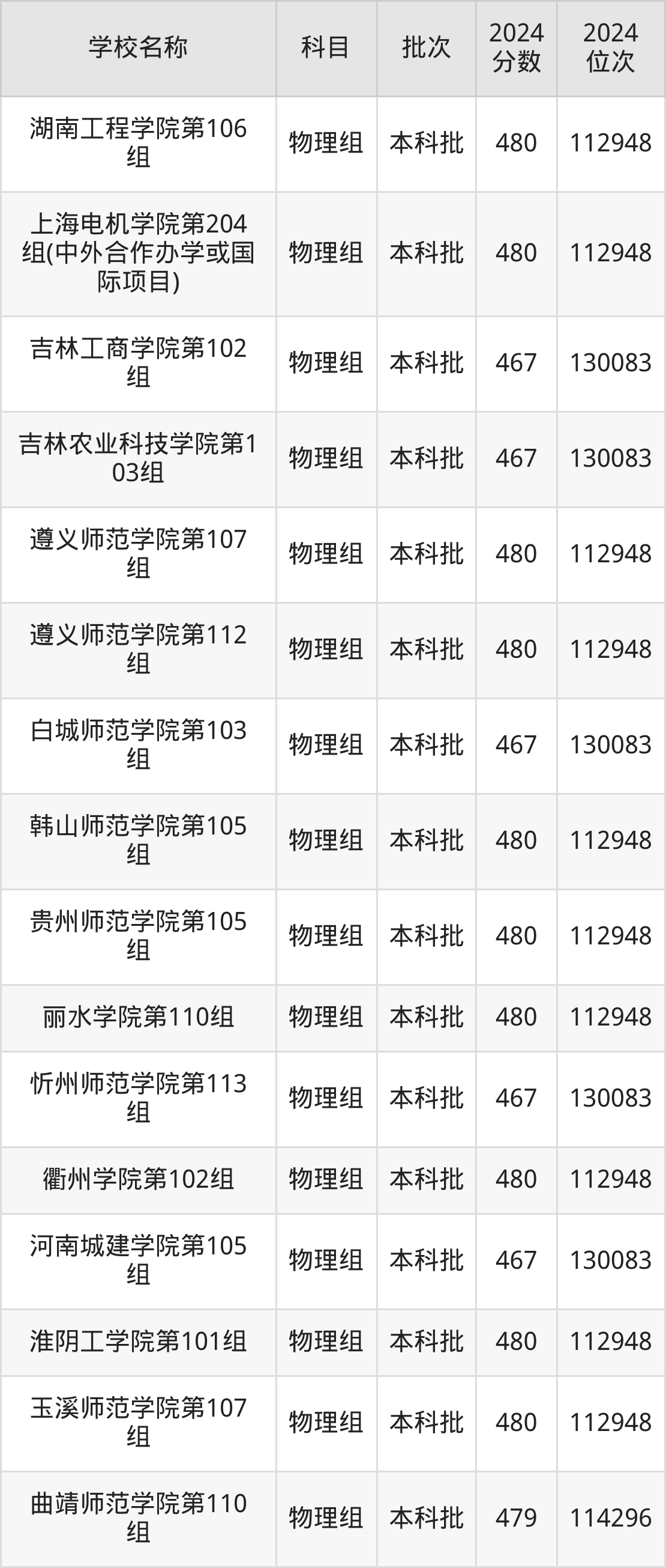 一、460到490分的二本公办大学最低分一览表