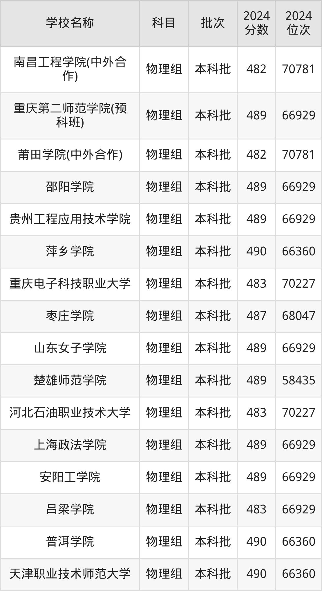 重庆高考物理组共有93所二本公办大学在460到490分之间录取,包含萍乡学院、天津职业技术师范大学、黄淮学院、新疆和田学院、凯里学院、长江师范学院、岭南师范学院、山西传媒学院、肇庆学院、长春工程学院。