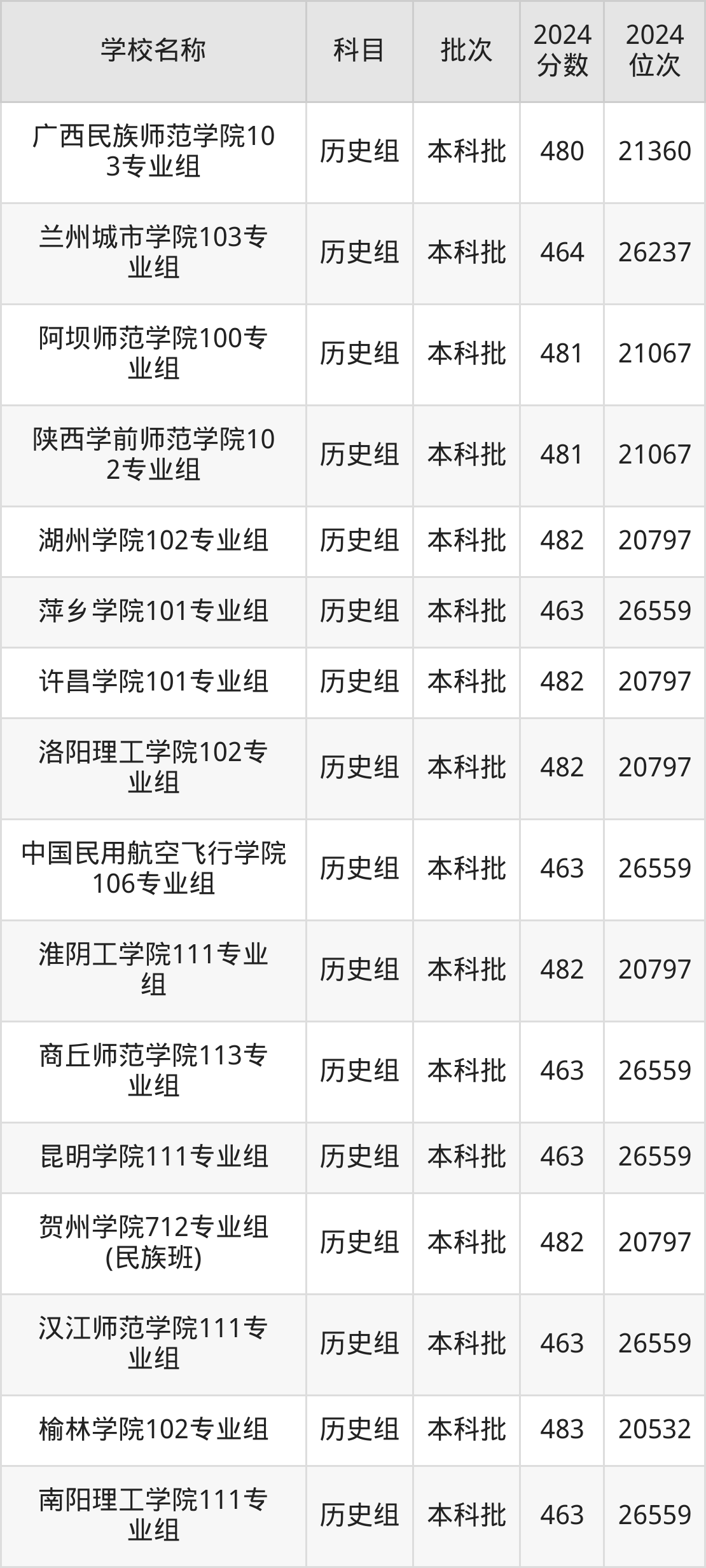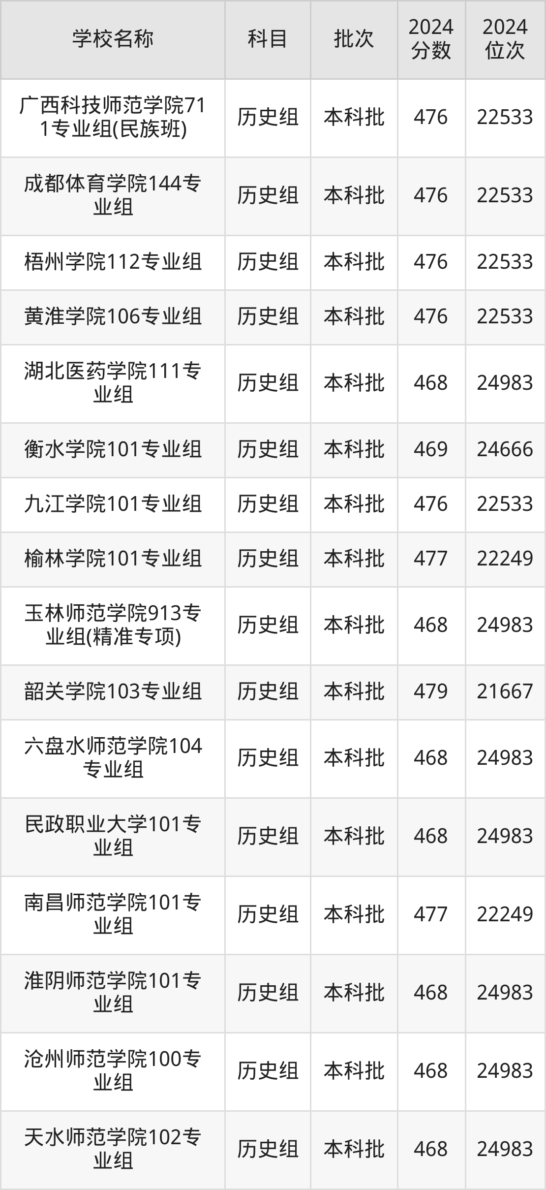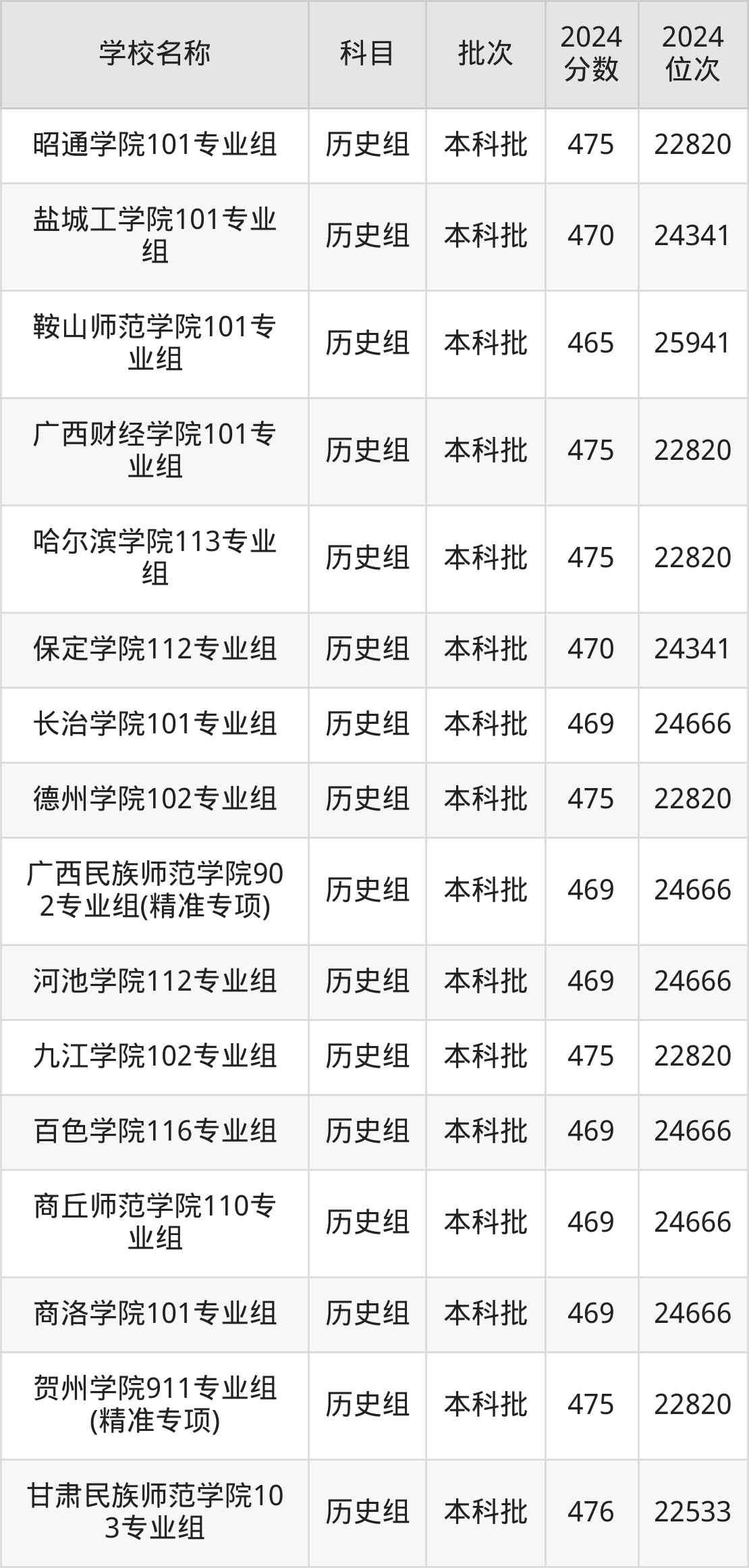 广西高考历史组共有116所二本公办大学在460到490分之间录取,包含重庆第二师范学院、湖州师范学院、徐州工程学院、贵州师范学院、山东交通学院、盐城师范学院、肇庆学院、绍兴文理学院、阿坝师范学院、乐山师范学院。