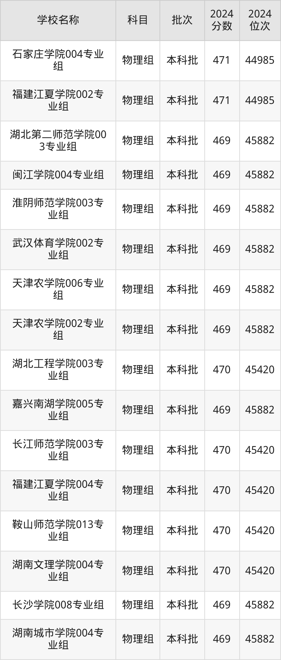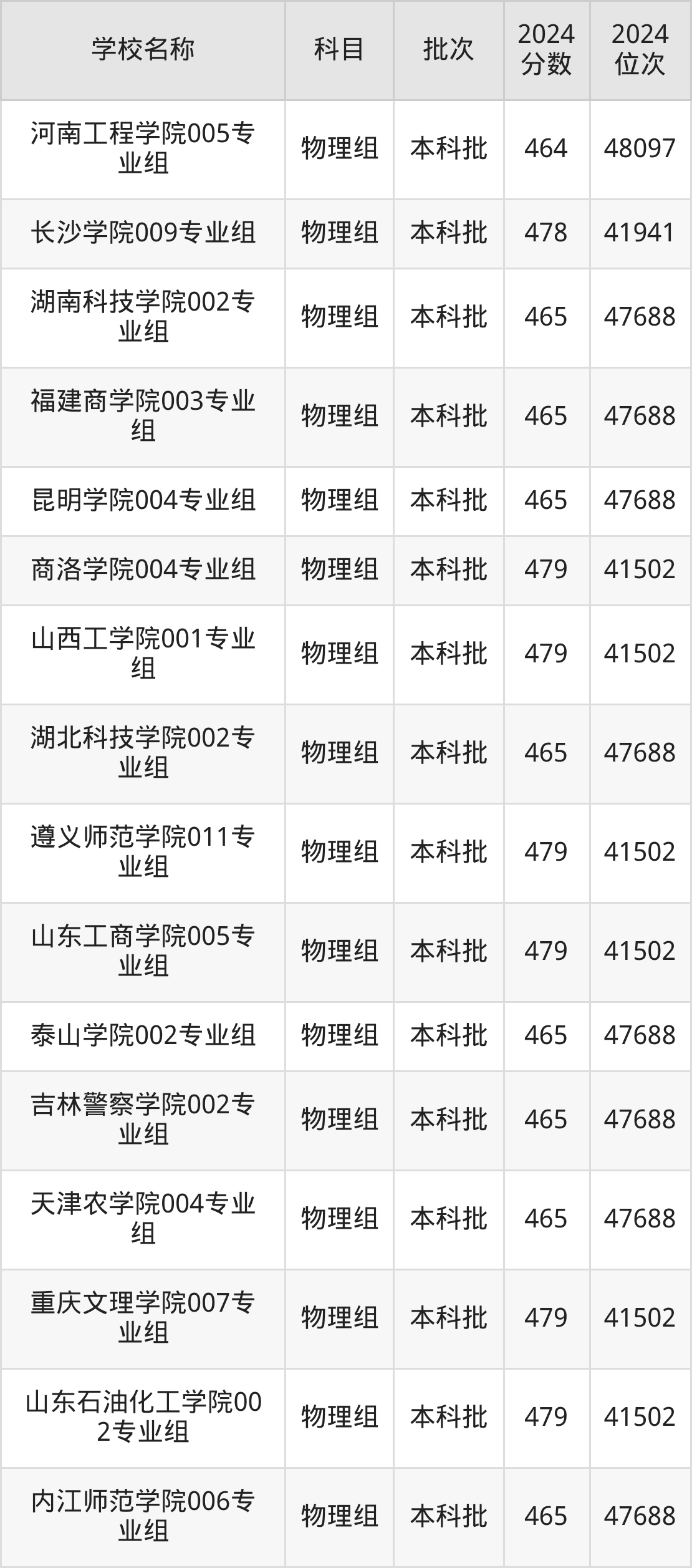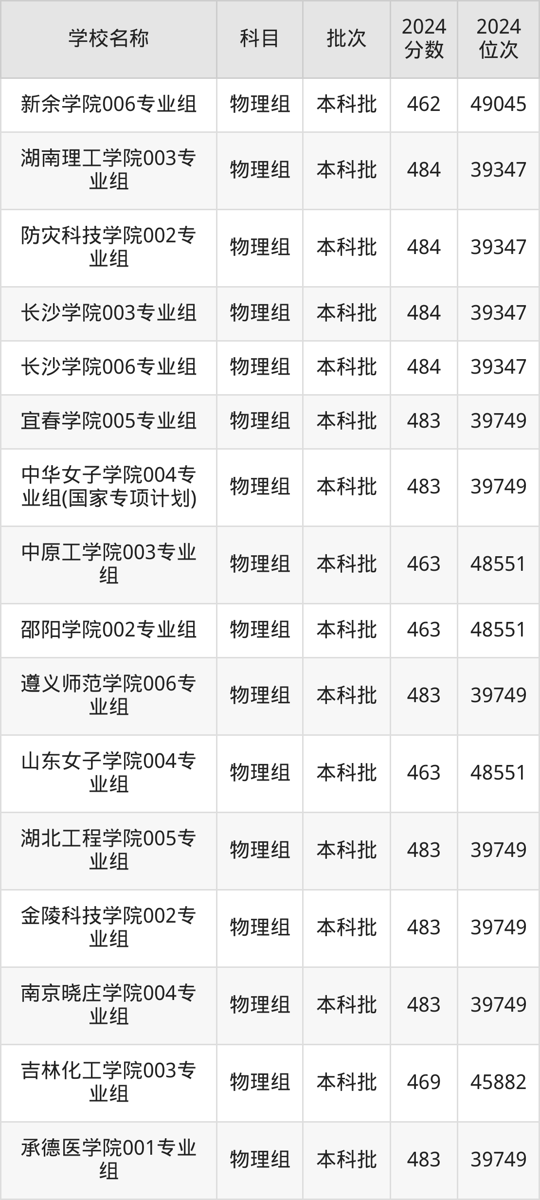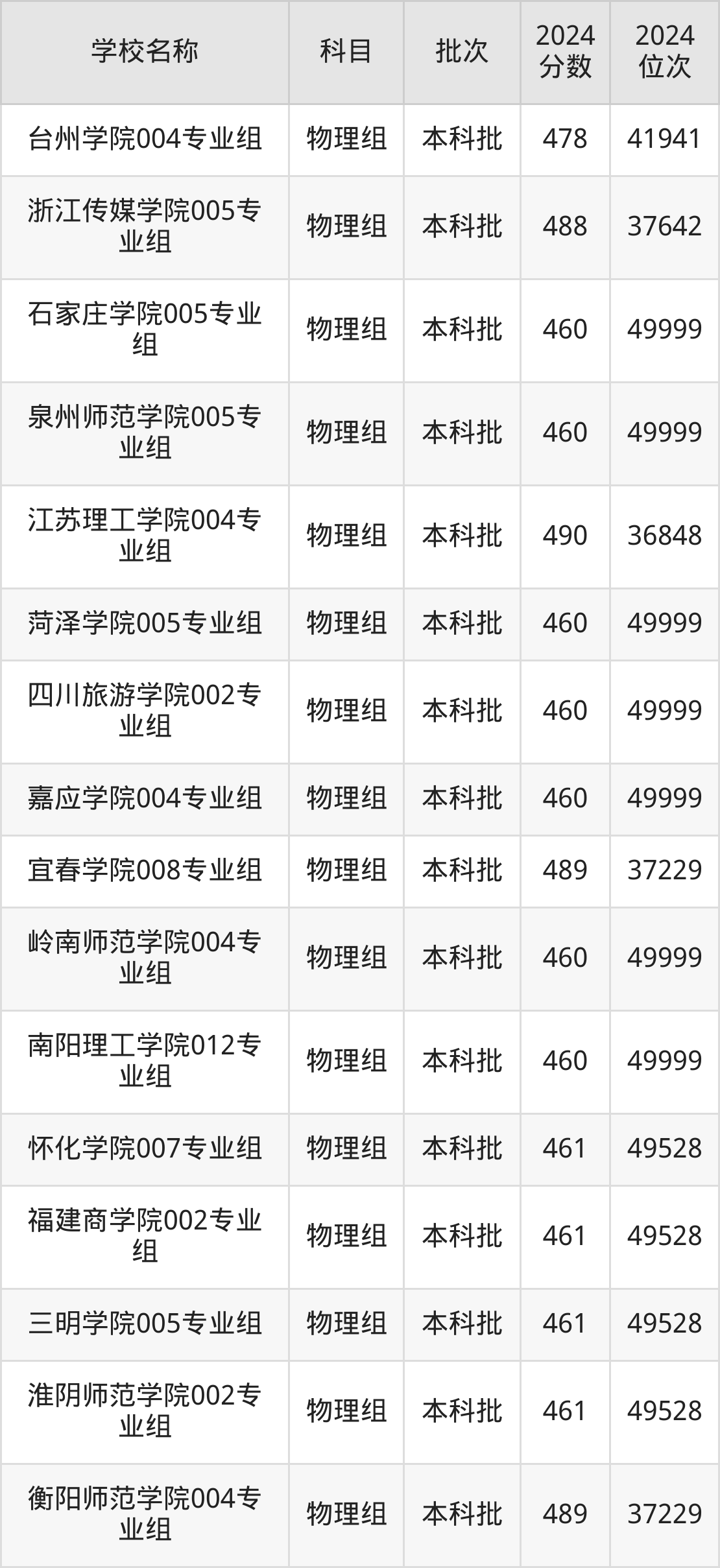 湖南高考物理组共有226所二本公办大学在460到490分之间录取,包含防灾科技学院、湖北第二师范学院、邵阳学院、丽水学院、怀化学院、四川音乐学院、嘉兴南湖学院、杭州医学院、长沙学院、湖南警察学院。