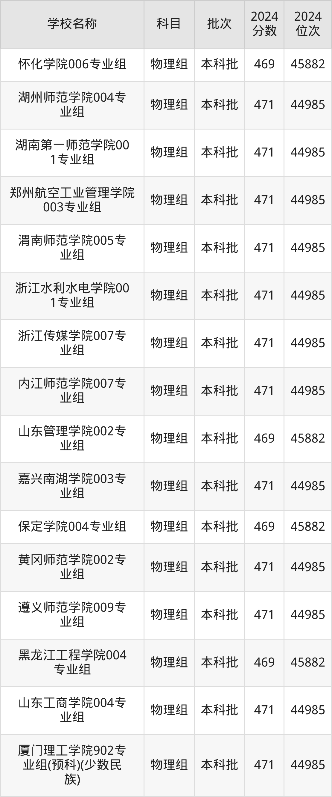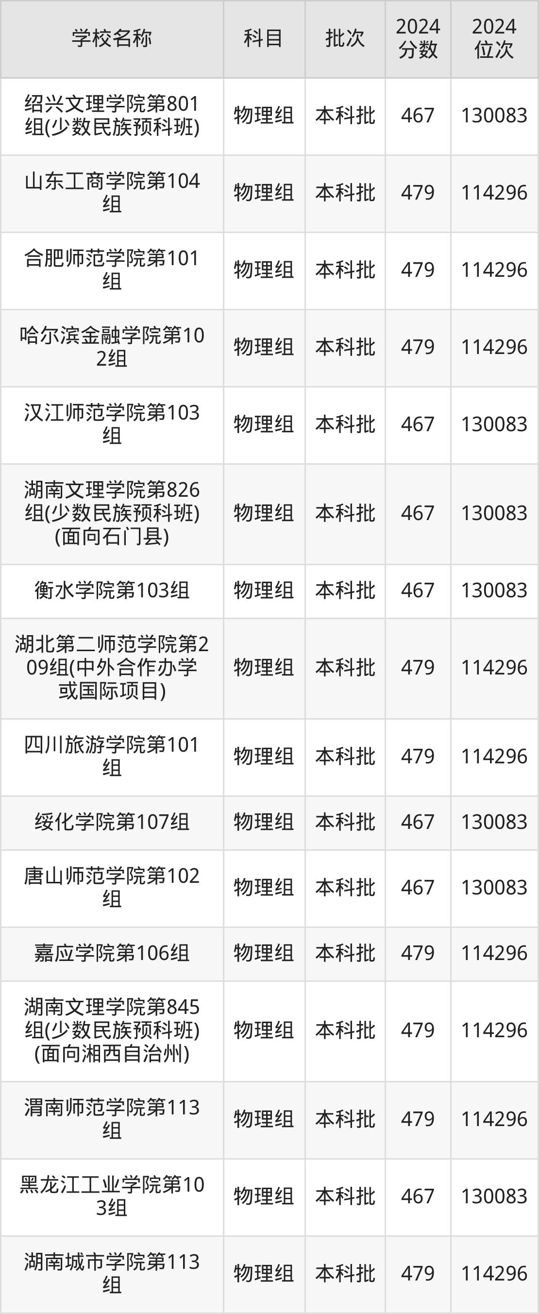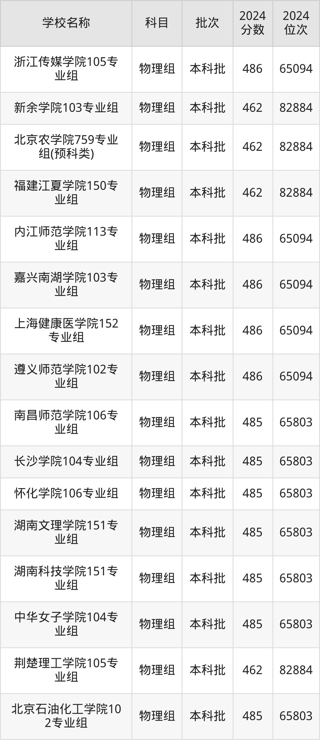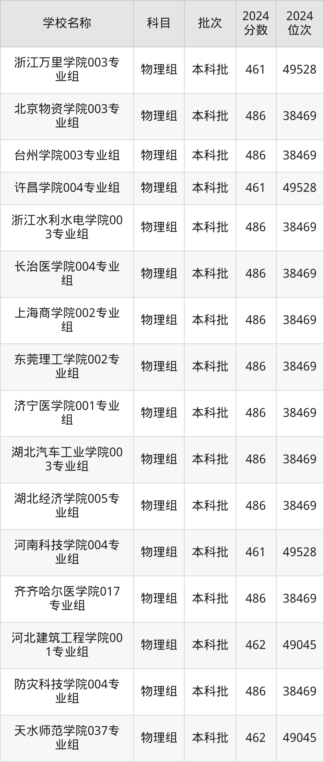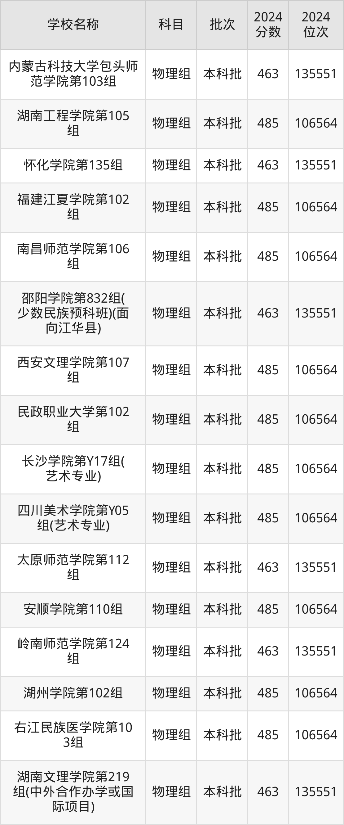 湖南高考物理组共有226所二本公办大学在460到490分之间录取,包含防灾科技学院、湖北第二师范学院、邵阳学院、丽水学院、怀化学院、四川音乐学院、嘉兴南湖学院、杭州医学院、长沙学院、湖南警察学院。